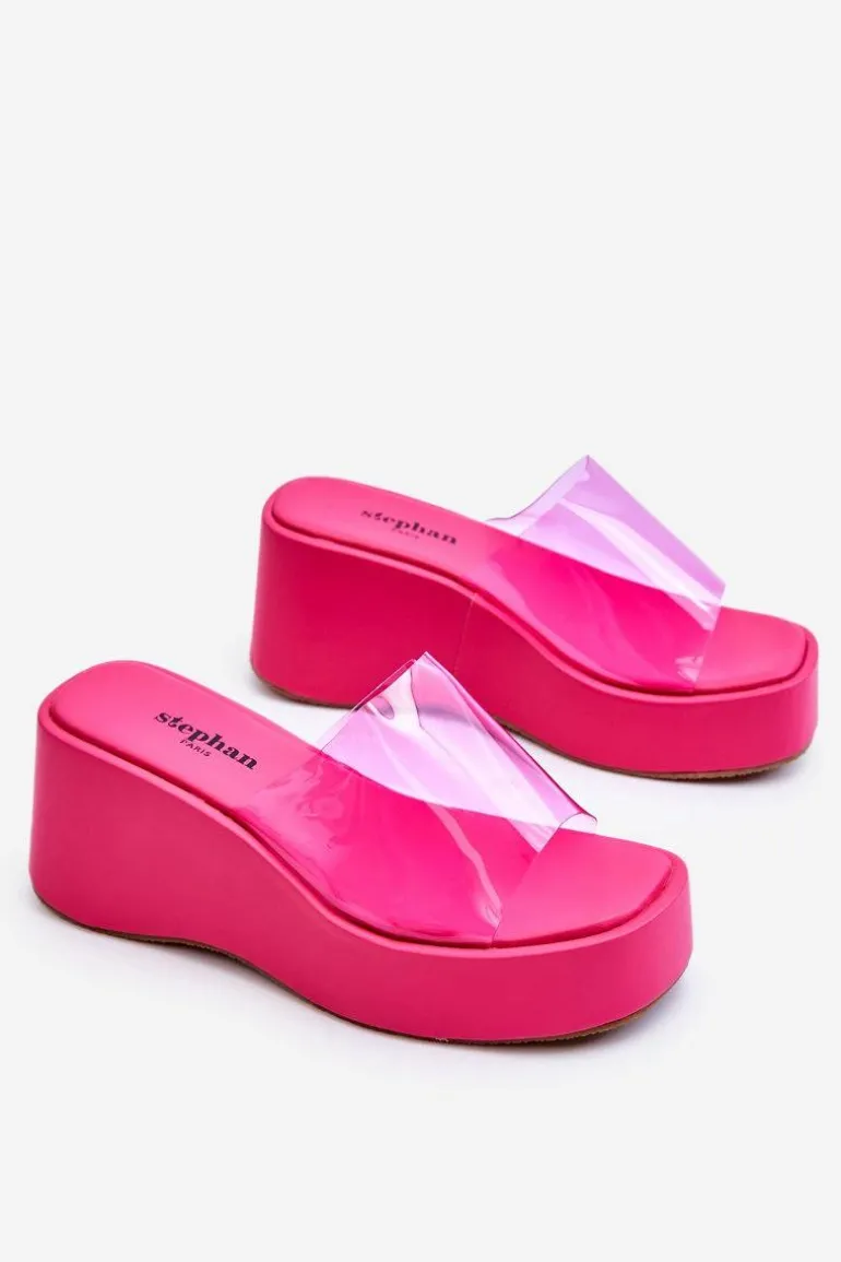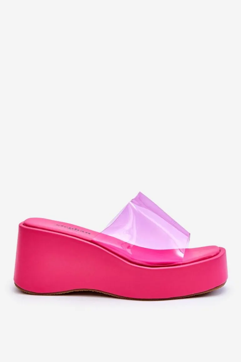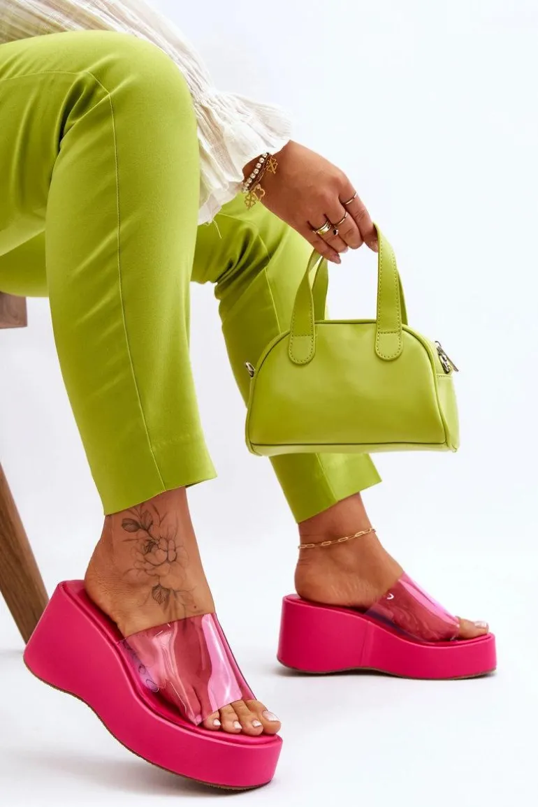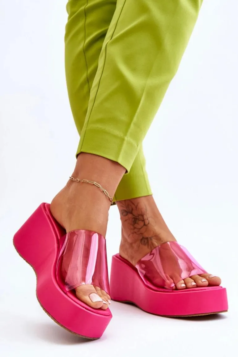 Wyjątkowe, damskie klapki na masywnej platformie i koturnie. Wierzch został wykonany z transparentnego tworzywa sztucznego. Miękka wkładka zapewni wygodne użytkowanie obuwia. Model klasyczny, wsuwany. Z tymi klapkami na pewno stworzysz wiele ciekawych, letnich stylizacji! Przy wyborze rozmiaru prosimy sugerować się tabelą rozmiarów.