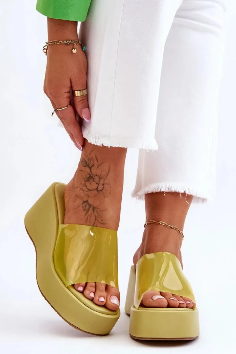 Wyjątkowe, damskie klapki na masywnej platformie i koturnie. Wierzch został wykonany z transparentnego tworzywa sztucznego. Miękka wkładka zapewni wygodne użytkowanie obuwia. Model klasyczny, wsuwany. Z tymi klapkami na pewno stworzysz wiele ciekawych, letnich stylizacji! Przy wyborze rozmiaru prosimy sugerować się tabelą rozmiarów.