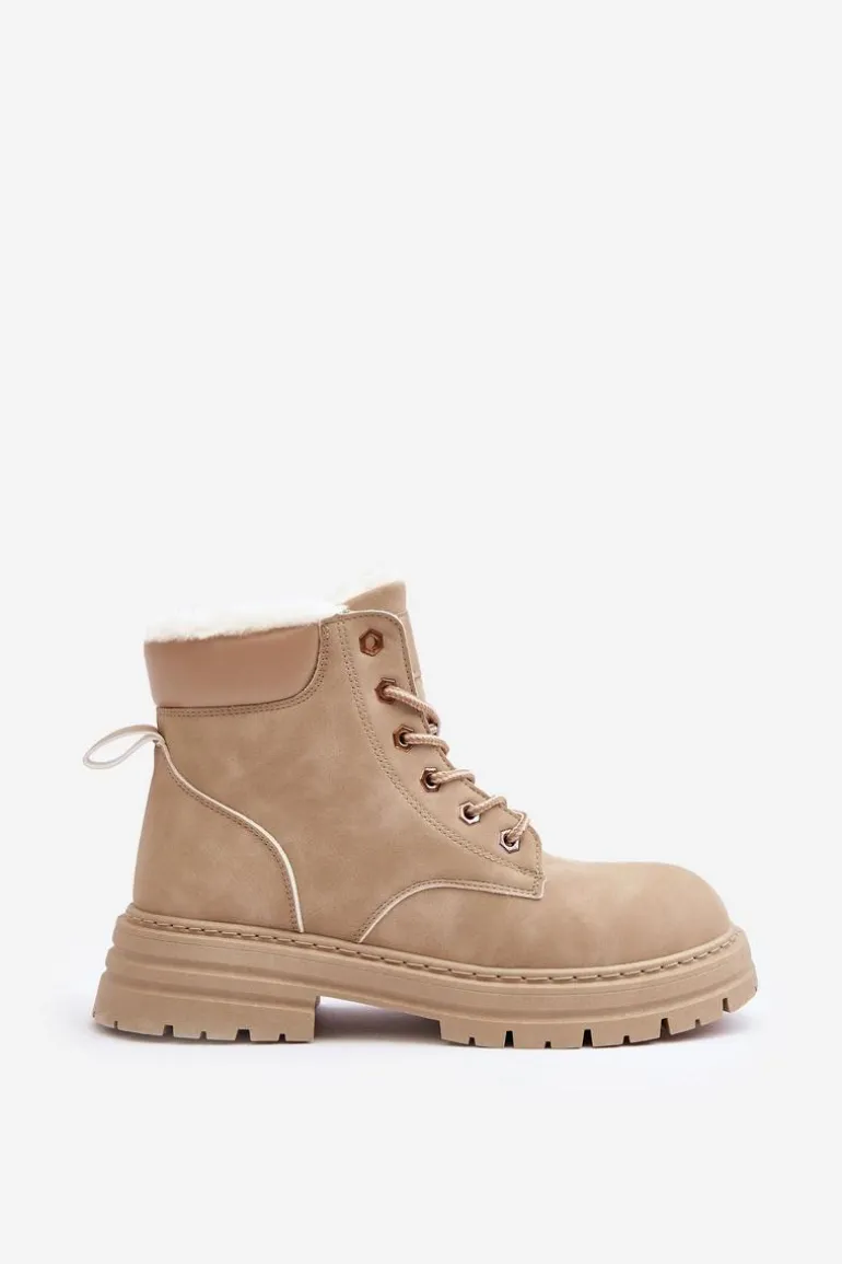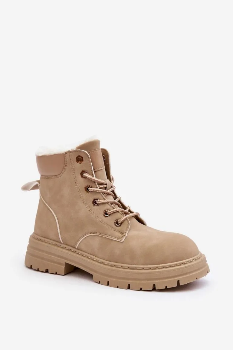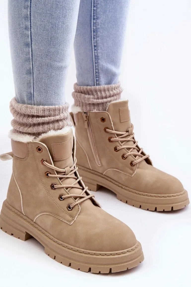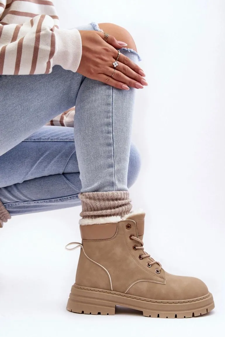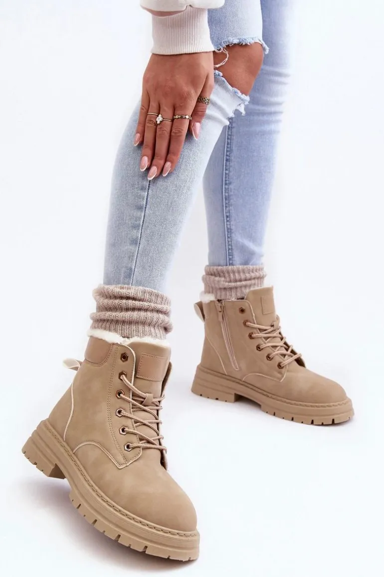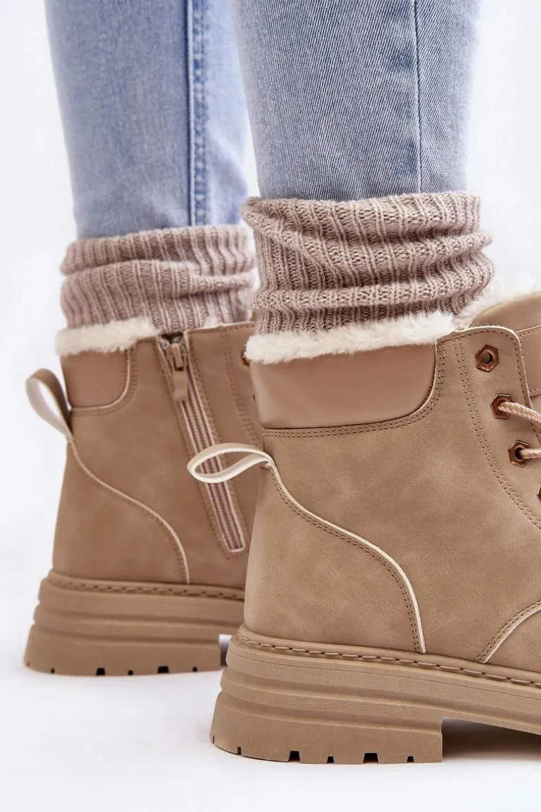 Damskie Trapery Ocieplane Futerkiem Beżowe Fenan