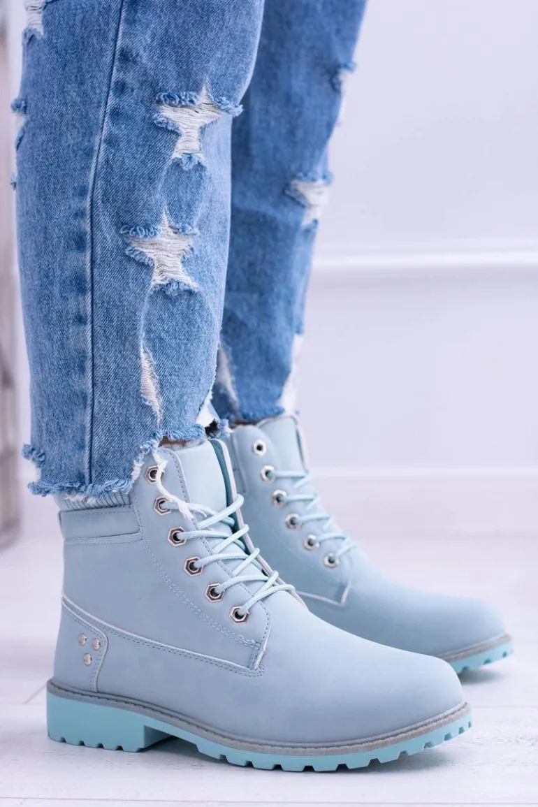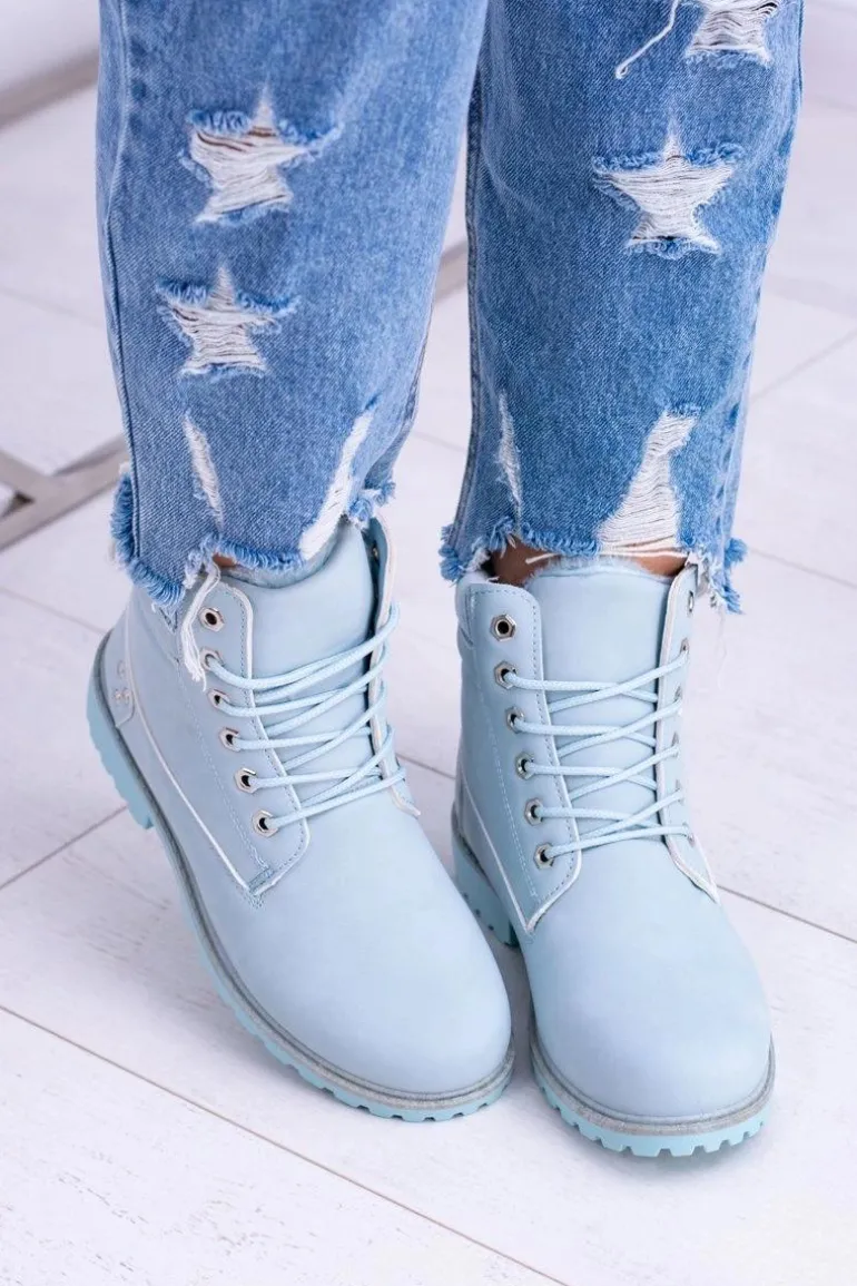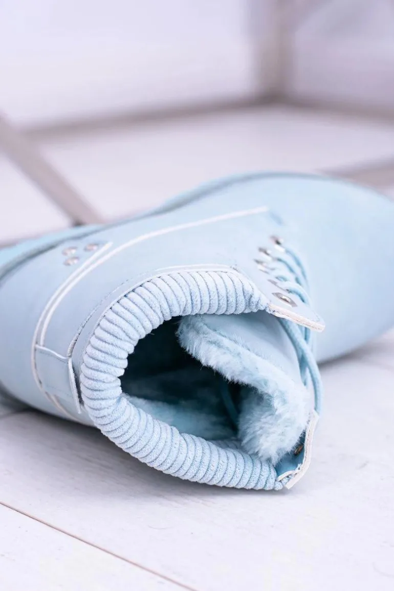 Damskie Trapery Ocieplane Timberki Błękitne Oxford
