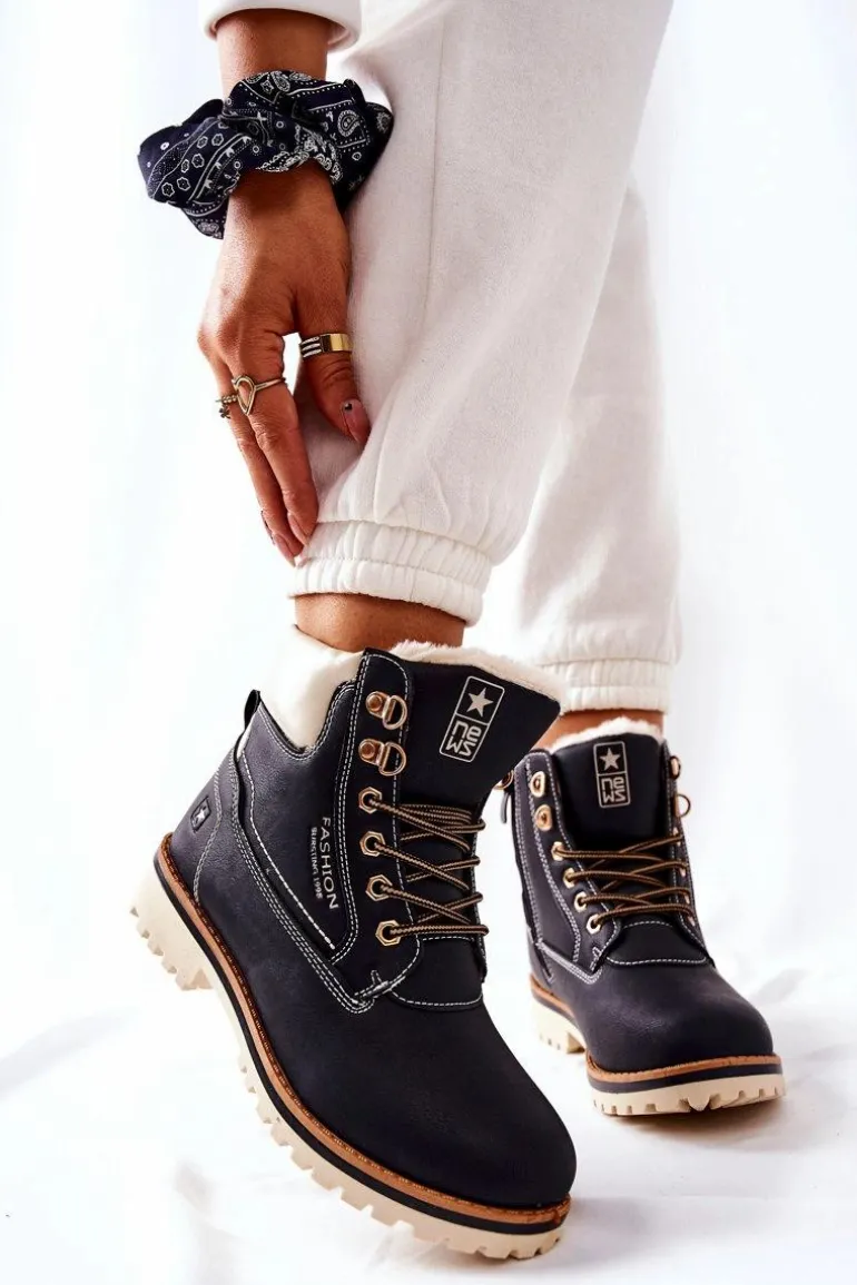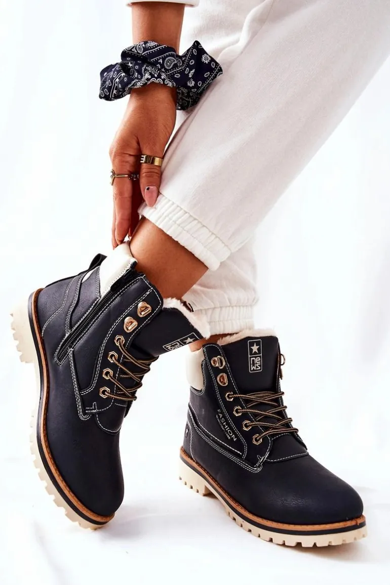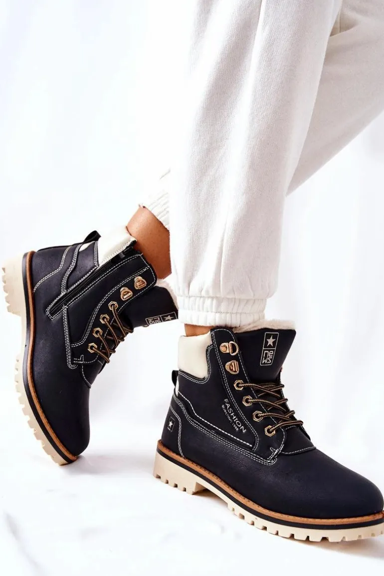 Damskie Trapery Timberki Z Ociepleniem Czarne Tiempo
