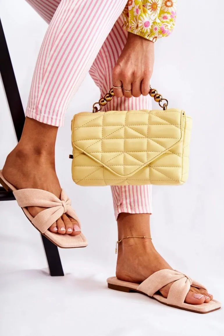 Klasyczne klapki damskie zostały wykonane z miłego w dotyku eko zamszu. Paski klapek są połączone na przodzie. Klapki osadzone na płaskim obcasie z antypoślizgową podeszwą. Model wsuwany, który świetnie sprawdzi się w letnie dni. Klapki te posiadają odkryty, kwadratowy nosek. Klapki te dopełnią wiele letnich stylizacji! Koniecznie sprawdź całą naszą kolekcję klapek damskich. Przy wyborze rozmiaru prosimy sugerować się tabelą rozmiarów.