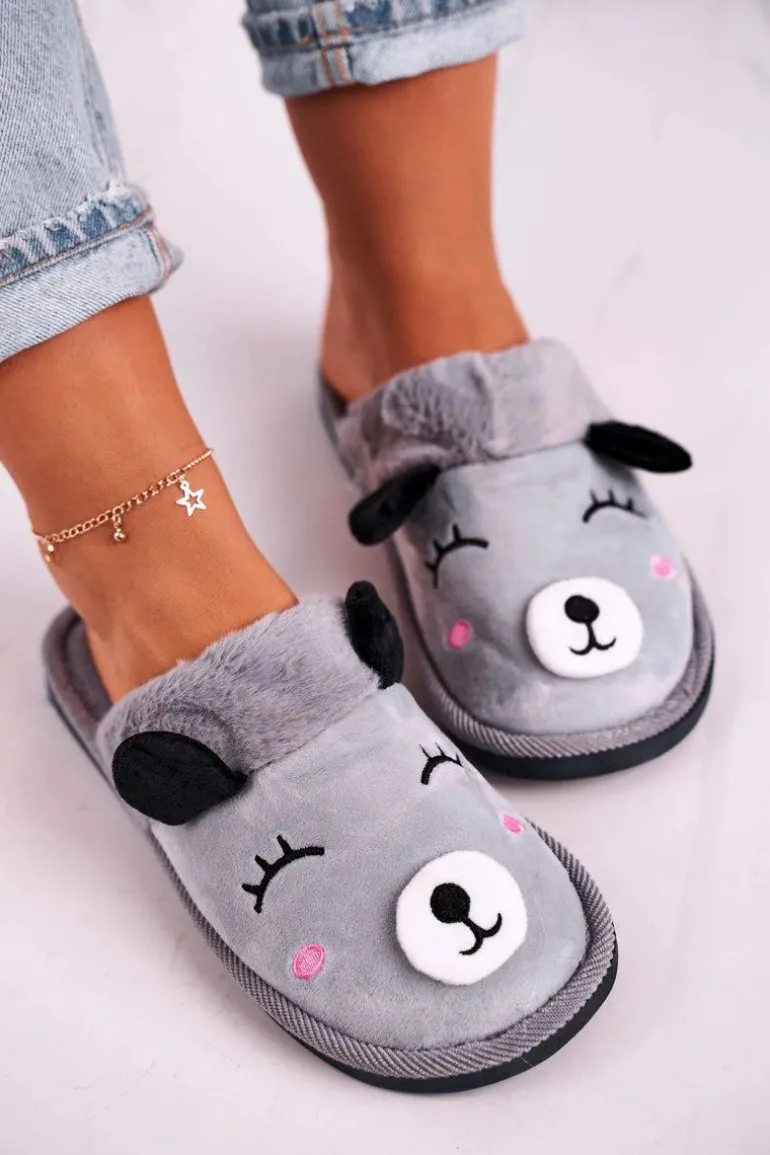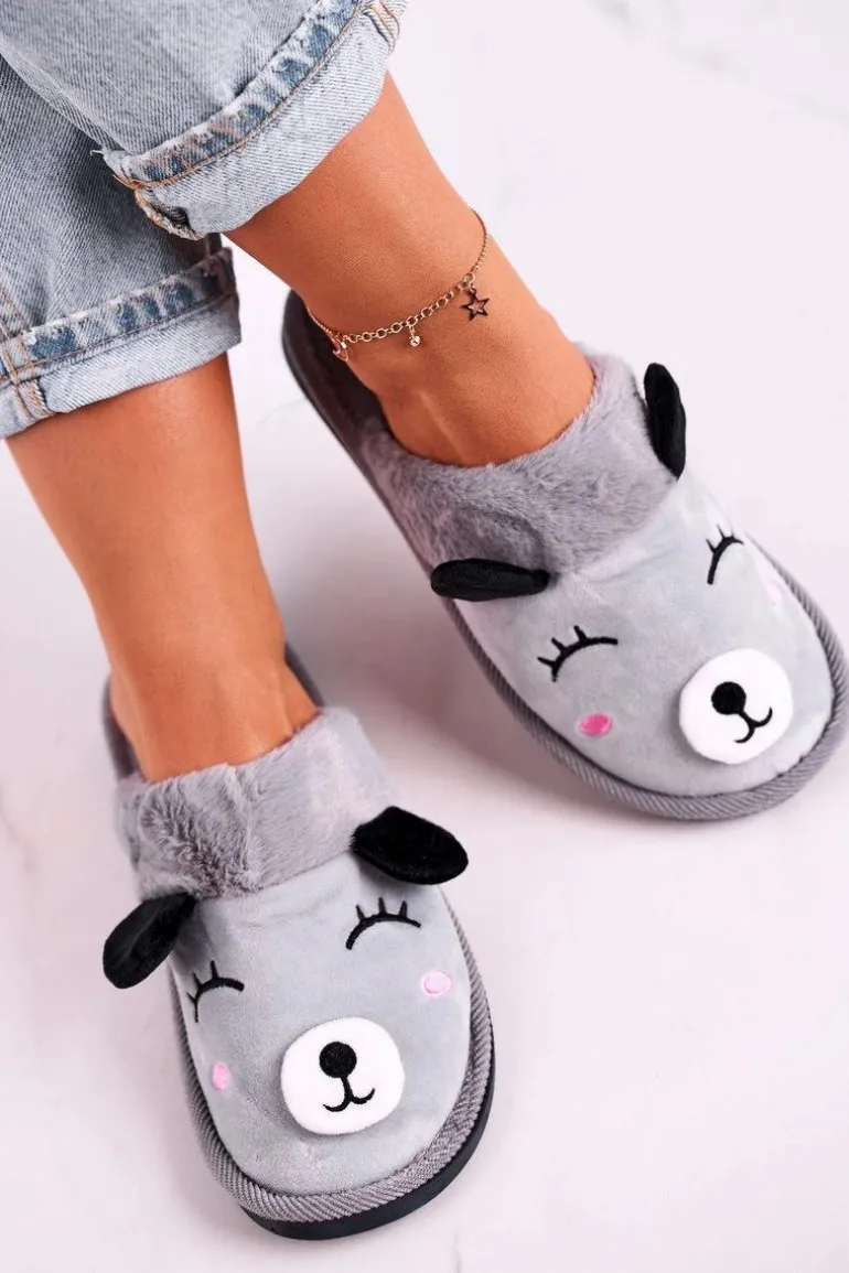 Damskie Welurowe Papcie Z Lamą Szare Ruddy