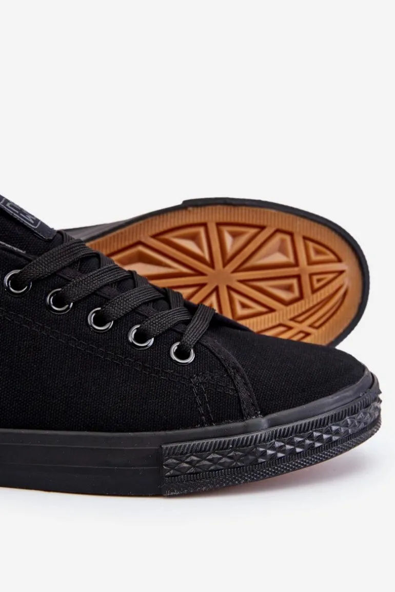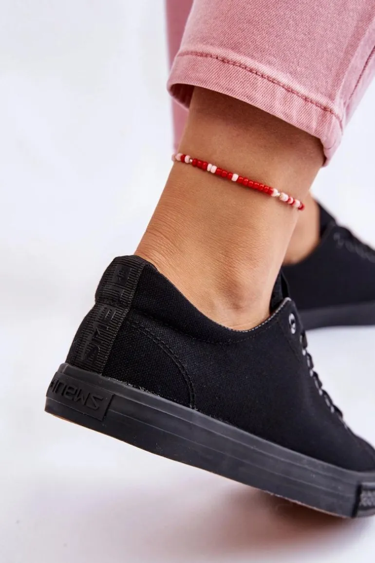 Klasyczne trampki damskie wykonane z materiału tekstylnego z cholewką do kostki. Buty posiadają gumową podeszwę, która jest dodatkowo antypoślizgowa. Ponadczasowy model, który powinnaś mieć w swojej szafie! Nosek zaokrąglony. Wygodna, materiałowa wkładka zapewni komfort podczas użytkowania. Model klasycznie wiązany na płaskie sznurowadła. Przy wyborze rozmiaru prosimy sugerować się tabelą rozmiarów.
