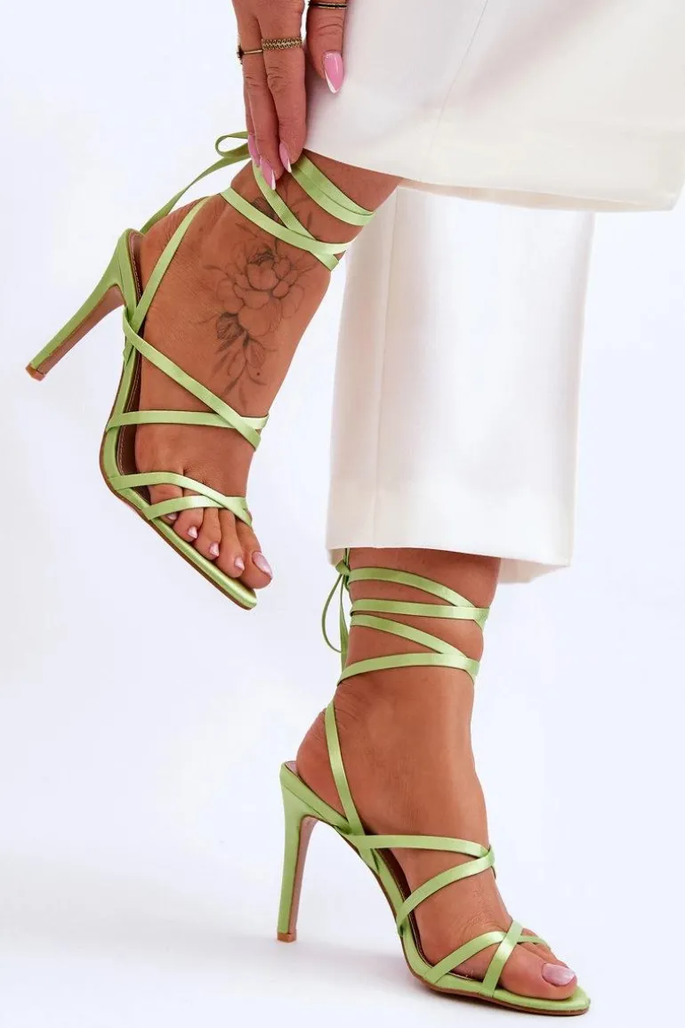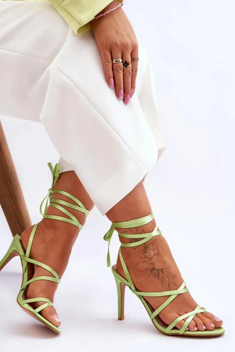 Klasyczne, damskie sandałki zostały wykonane z materiału tekstylnego. Osadzone na obcasie w postaci szpilki. Sandałki posiadają miękką, eko skórzaną wkładkę. Idealne na upalne dni, dzięki przewiewnemu fasonowi. Sandałki posiadają odkryty, lekko zaokrąglony nosek. Model ten jest wiązany wokół łydki. Przy wyborze rozmiaru prosimy sugerować się tabelą rozmiarów.