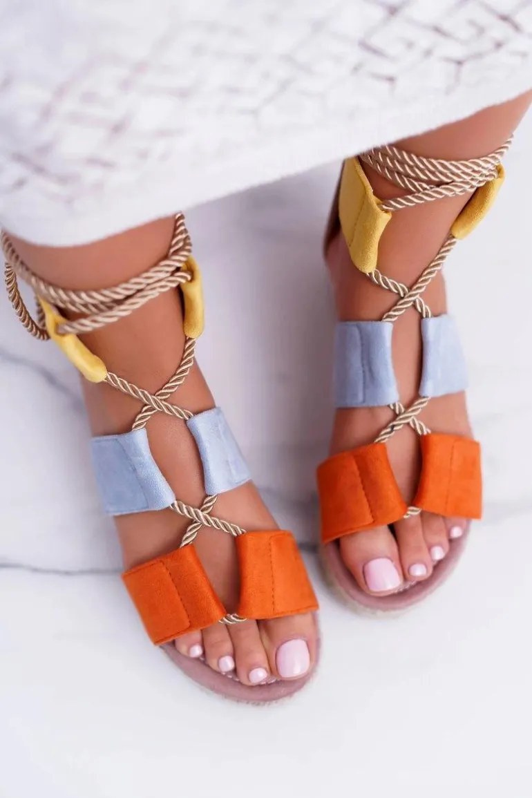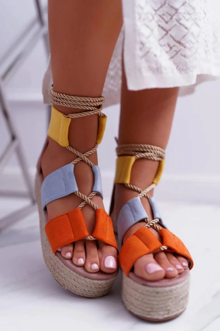 Damskie Wielokolorowe Sandały Na Platformie Espadryle Manado