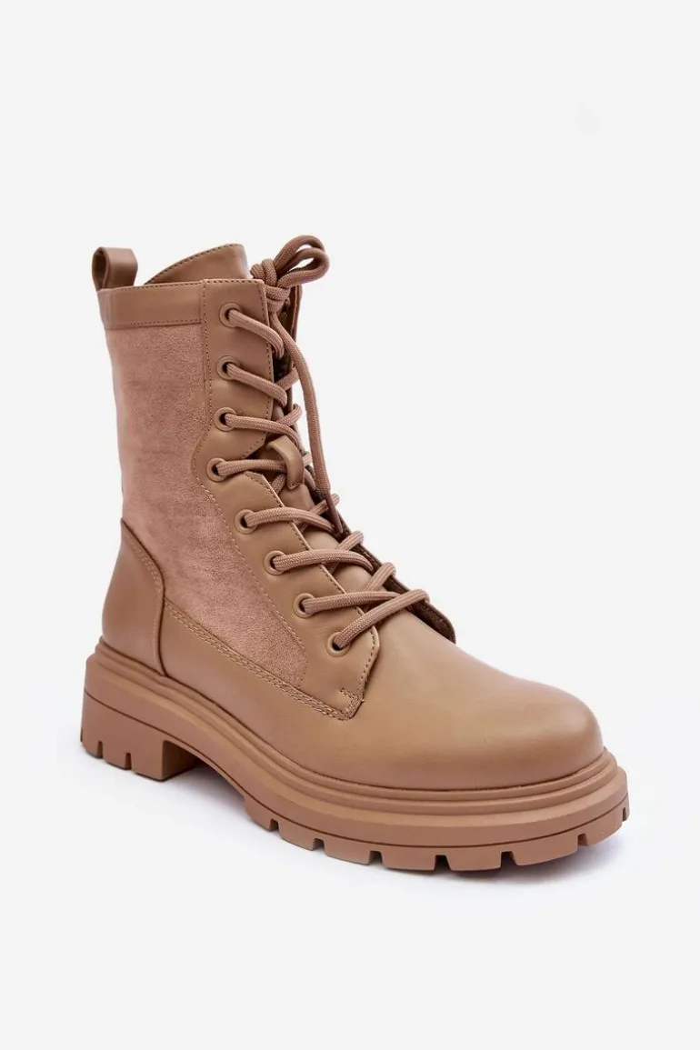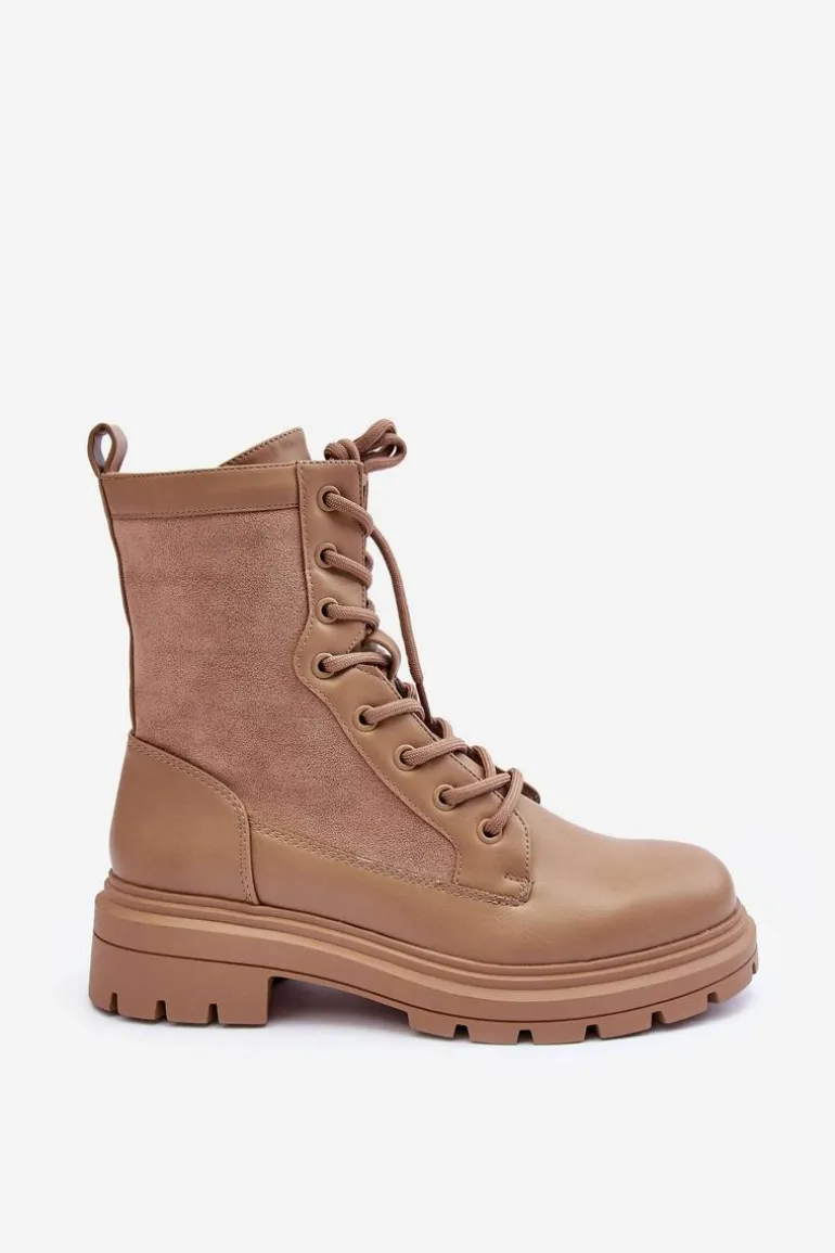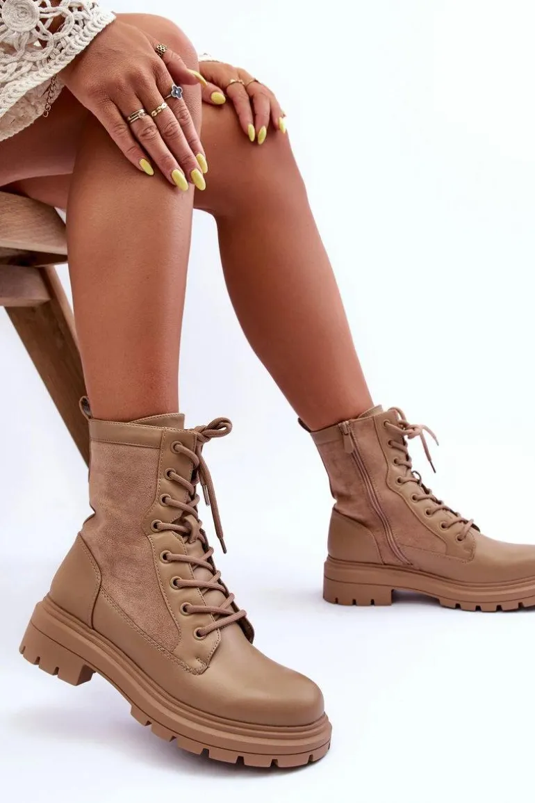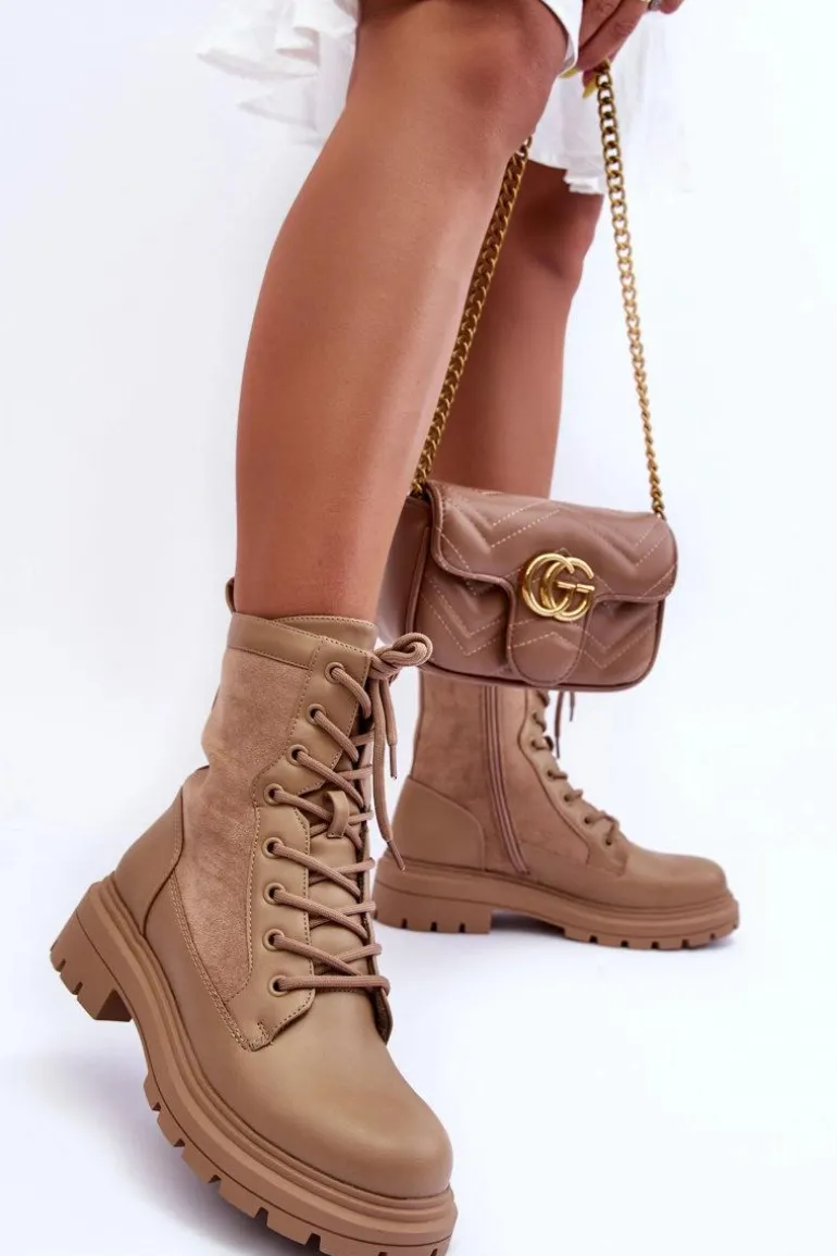 Klasyczne workery damskie wykonane z eko skóry. Osadzone na płaskim obcasie i platformie. Model ten zapinany jest na suwak z boku oraz posiada dodatkowe sznurowanie. Zapiętek w tym obuwiu jest usztywniany. Idealne do jesiennych i zimowych stylizacji! Przy wyborze rozmiaru prosimy sugerować się tabelą rozmiarów.