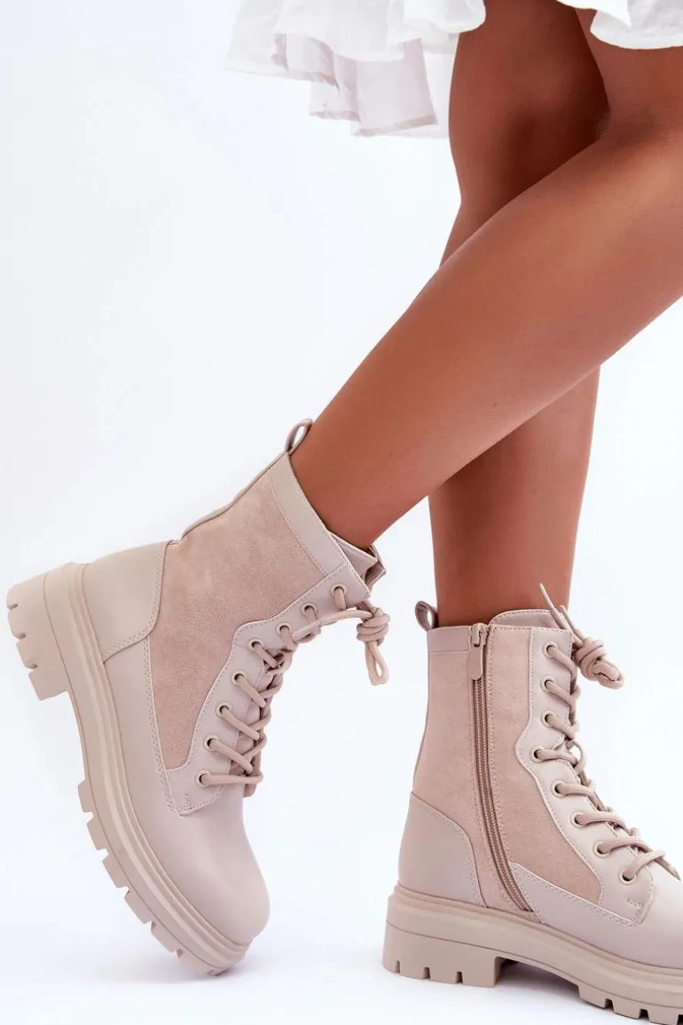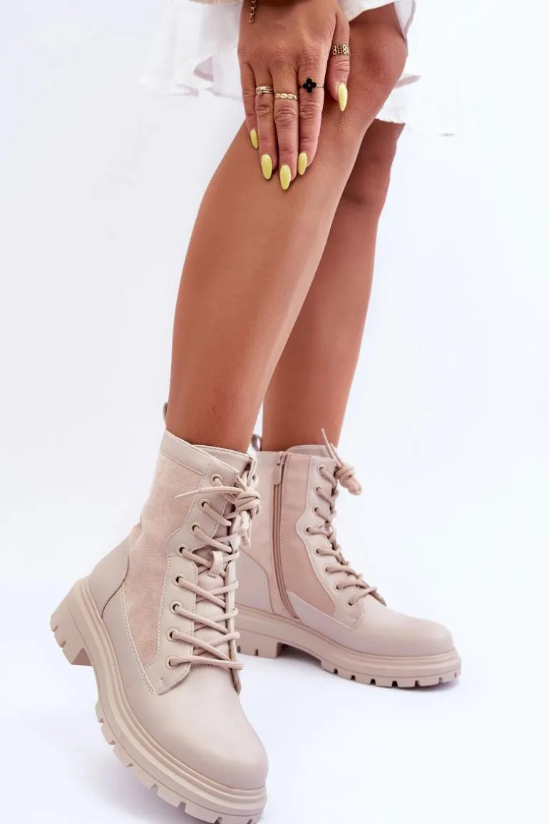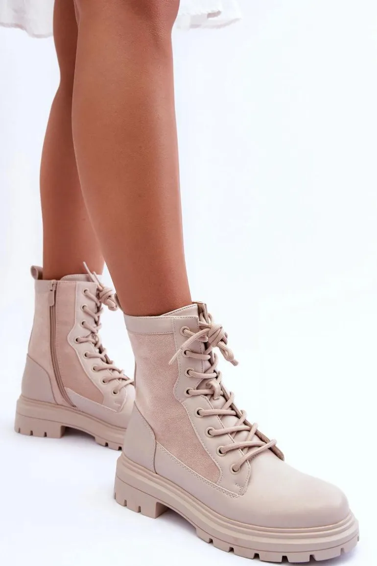 Damskie Workery Botki Skórzane Jasnobeżowe Faustina