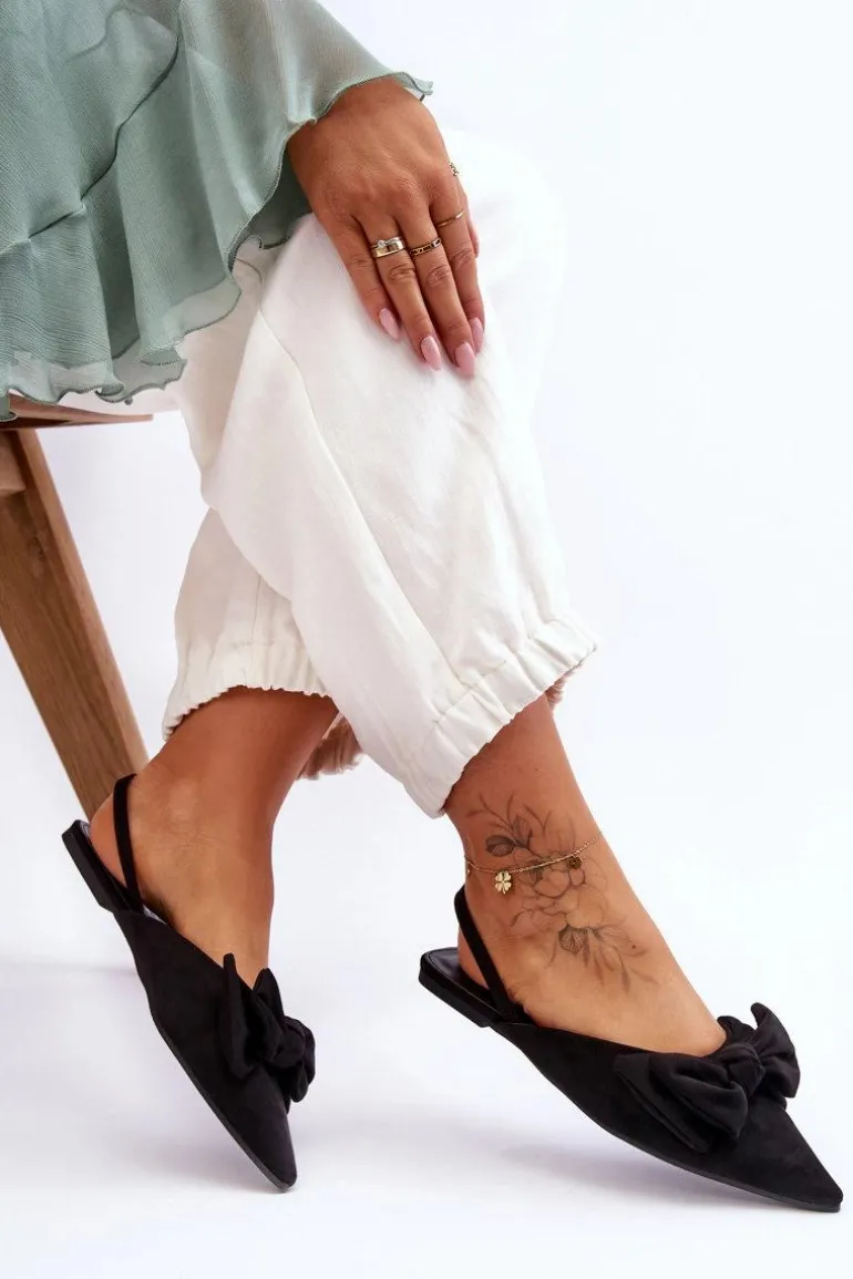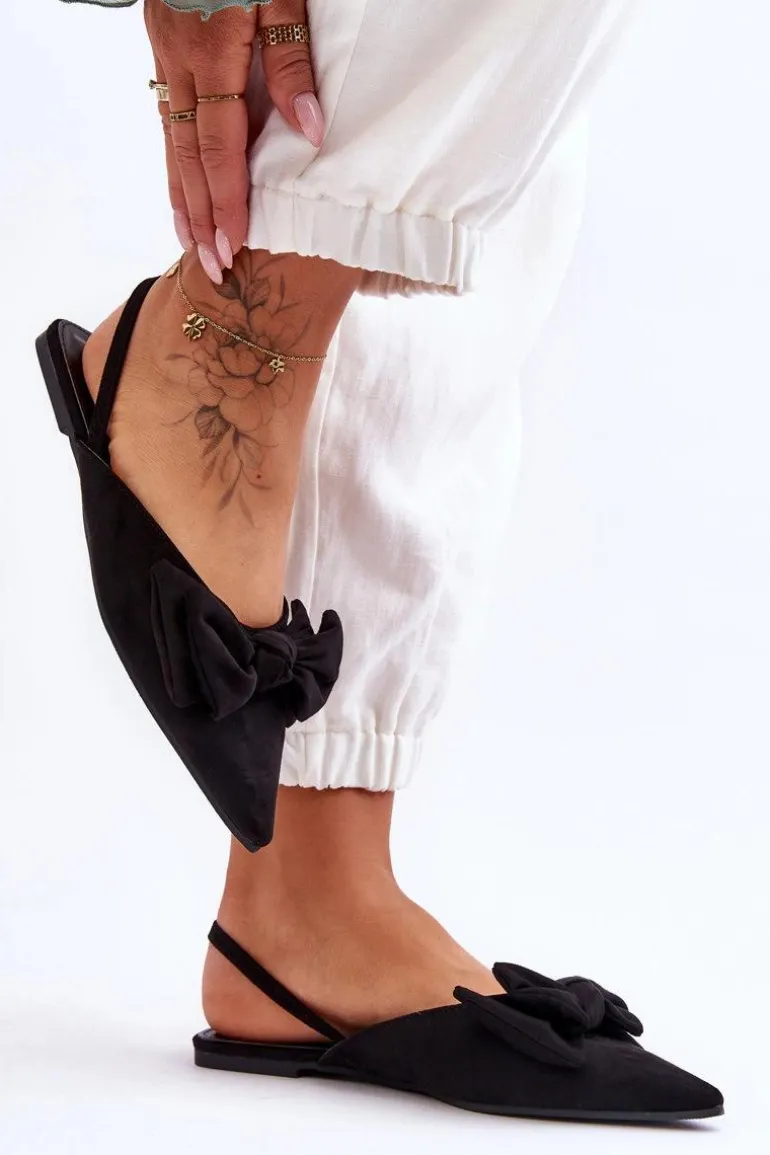 Damskie Wsuwane Baleriny Z Kokardą Czarne Nadine