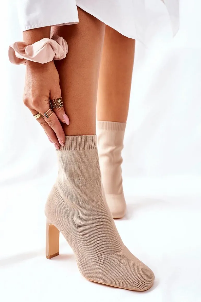 Jeśli tu trafiłaś, to znaczy, że cenisz sobie wyjątkowy styl. Niesamowite wsuwane botki z cholewką typu skarpeta. Rozciągliwy materiał sprawi, że idealnie dopasują się do nóg, dzięki czemu długie spacery będą przyjemnością. Prostokątny słupek delikatnie uniesie i wysmukli sylwetkę. Przy wyborze rozmiaru prosimy sugerować się tabelą rozmiarów.