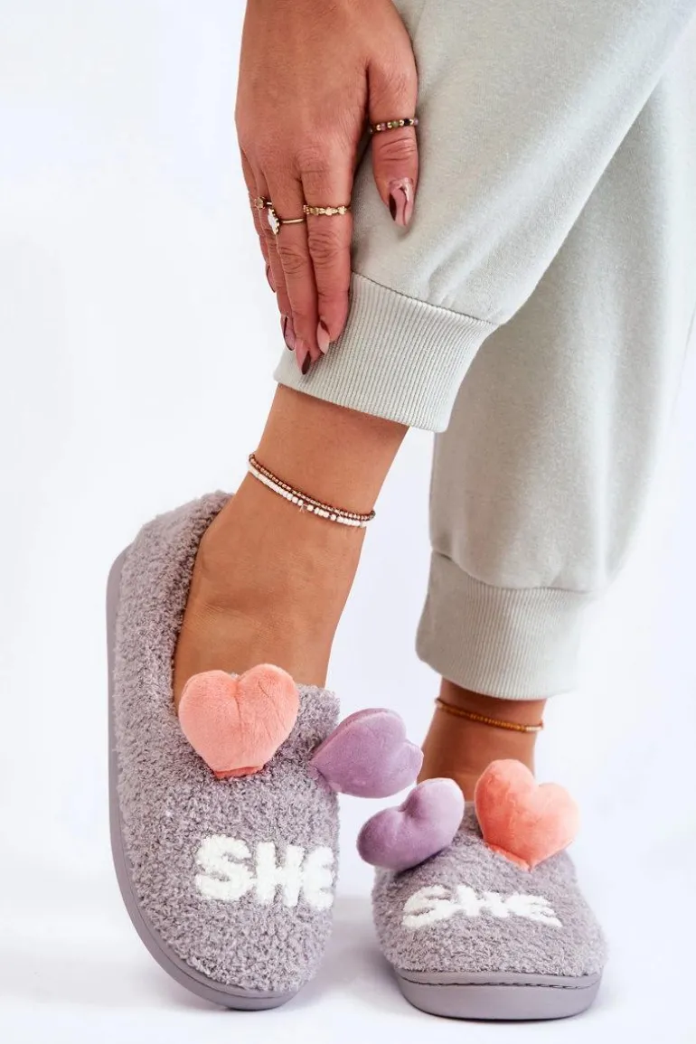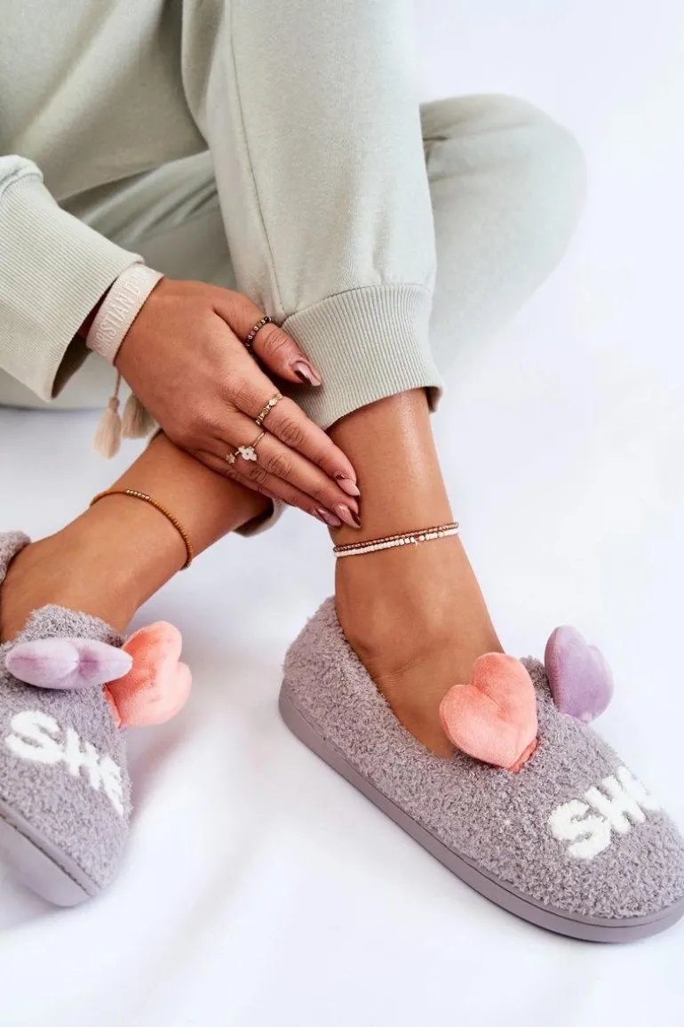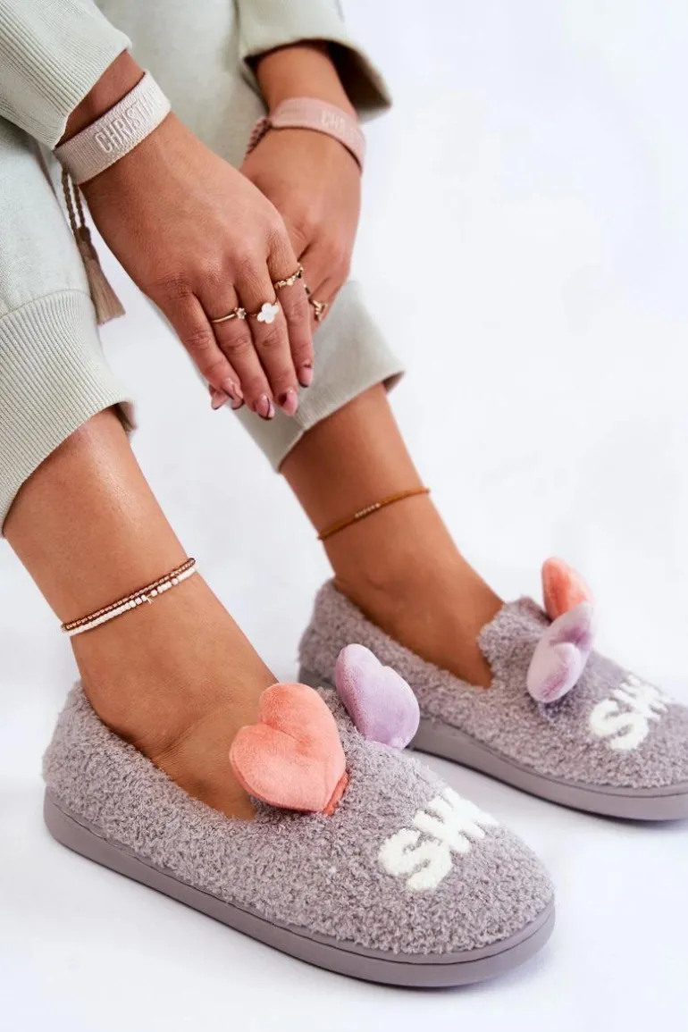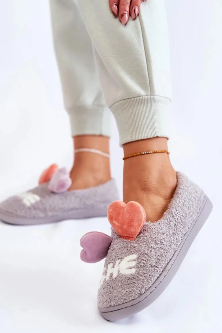 Damskie Wsuwane Papcie Z Sercami Szare Alasca