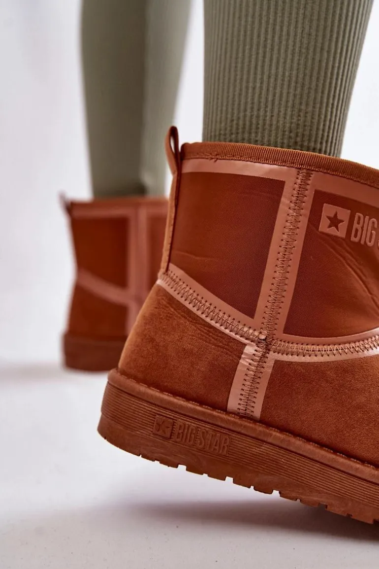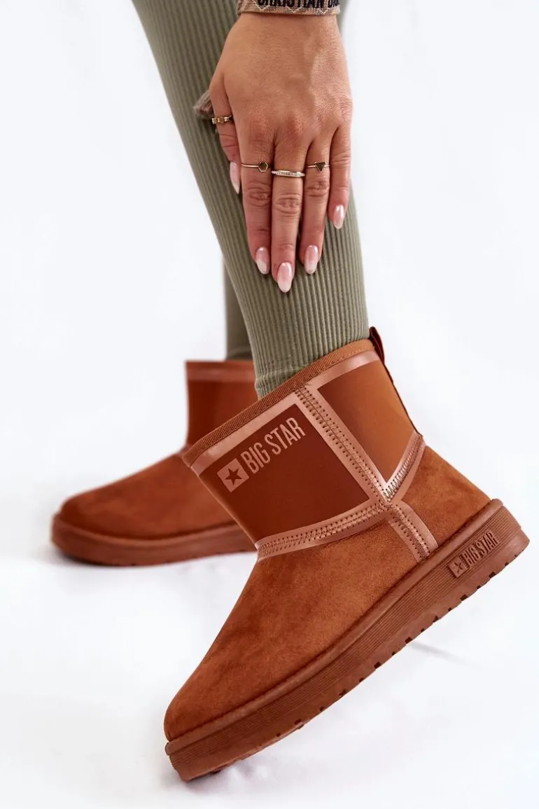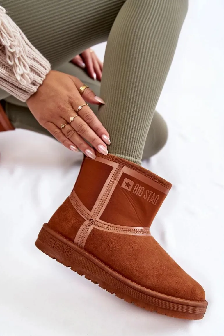 Ciepłe i modne śniegowce od marki Big Star zostały wykonane z połączenia materiału tekstylnego z tworzywem sztucznym. Wnętrze butów zostało ocieplone miłym w dotyku futerkiem. Klasyczny fason, który pasuje do wielu stylizacji. Osadzone na platformie. Na cholewce umieszczono logo marki Big Star. Ten wygodny i ciepły model powinien być Twój! Przy wyborze rozmiaru prosimy sugerować się tabelą rozmiarów.