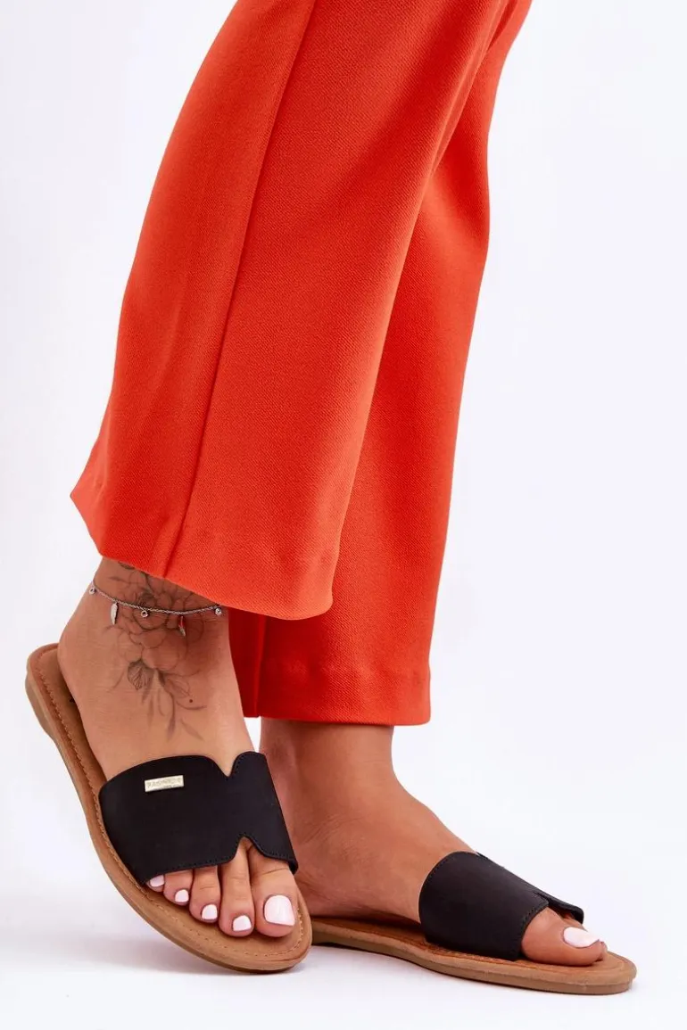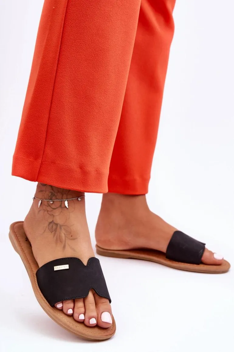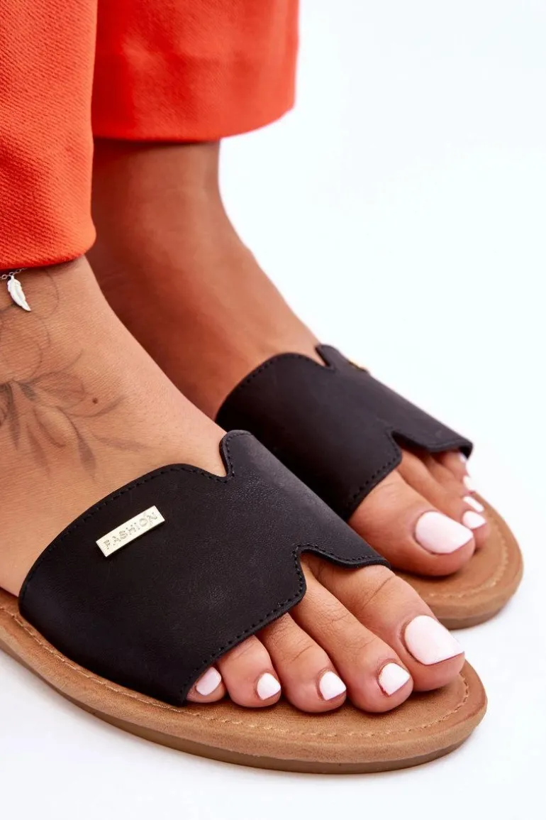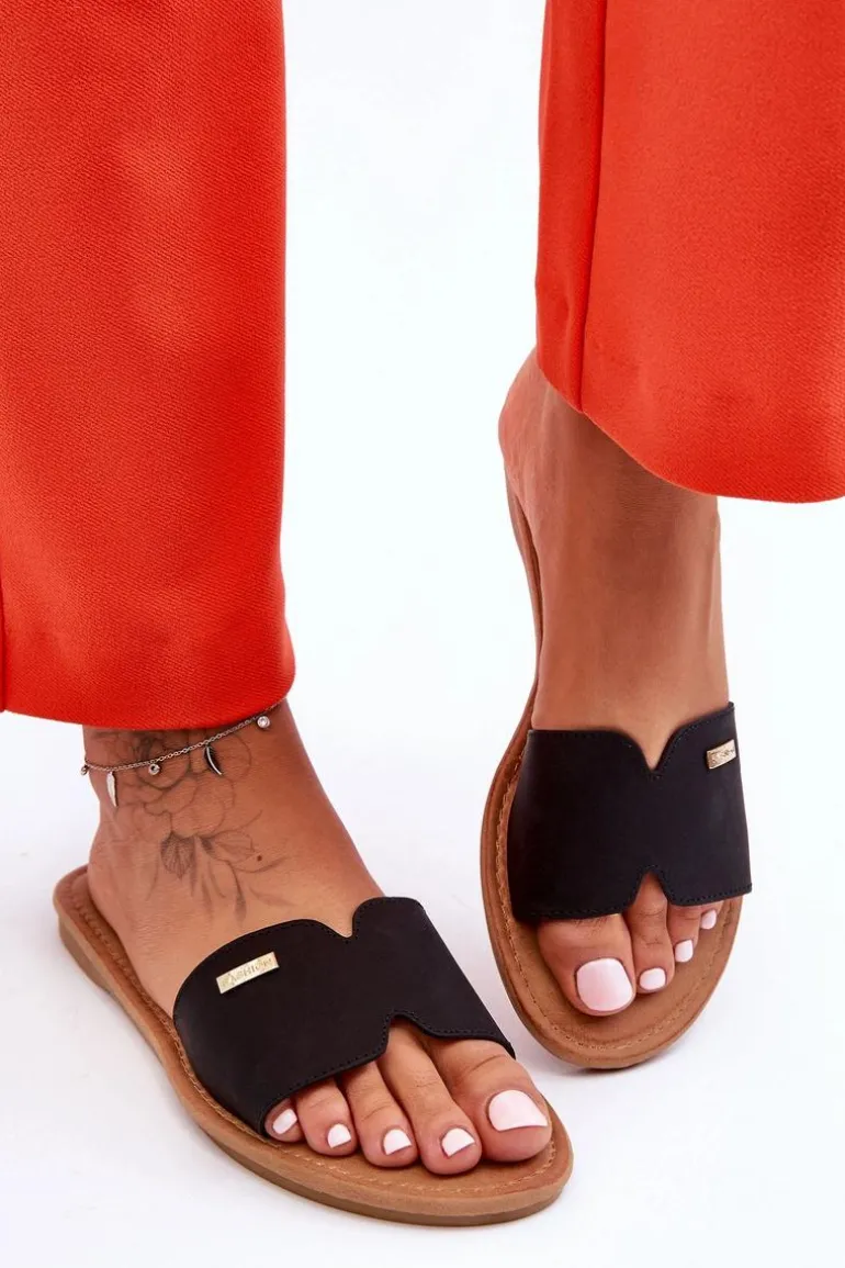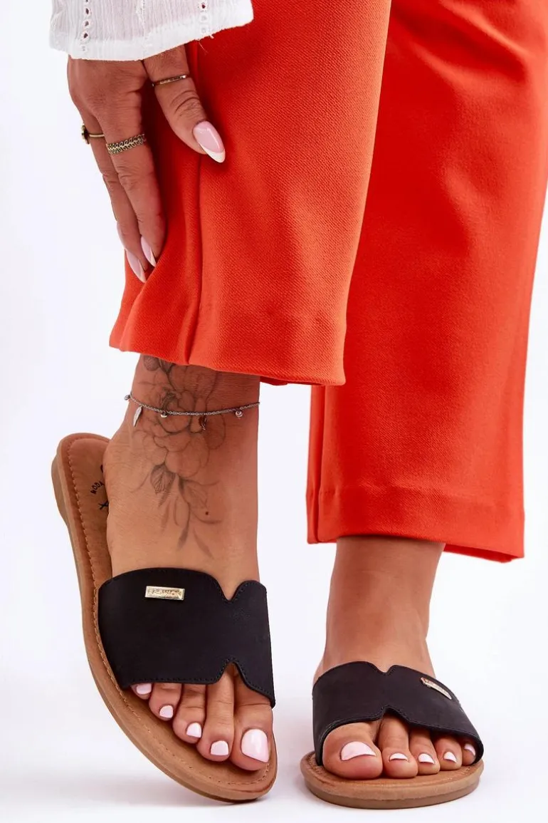 Damskie Wygodne Klapki Na Płaskim Obcasie Czarne Coraline