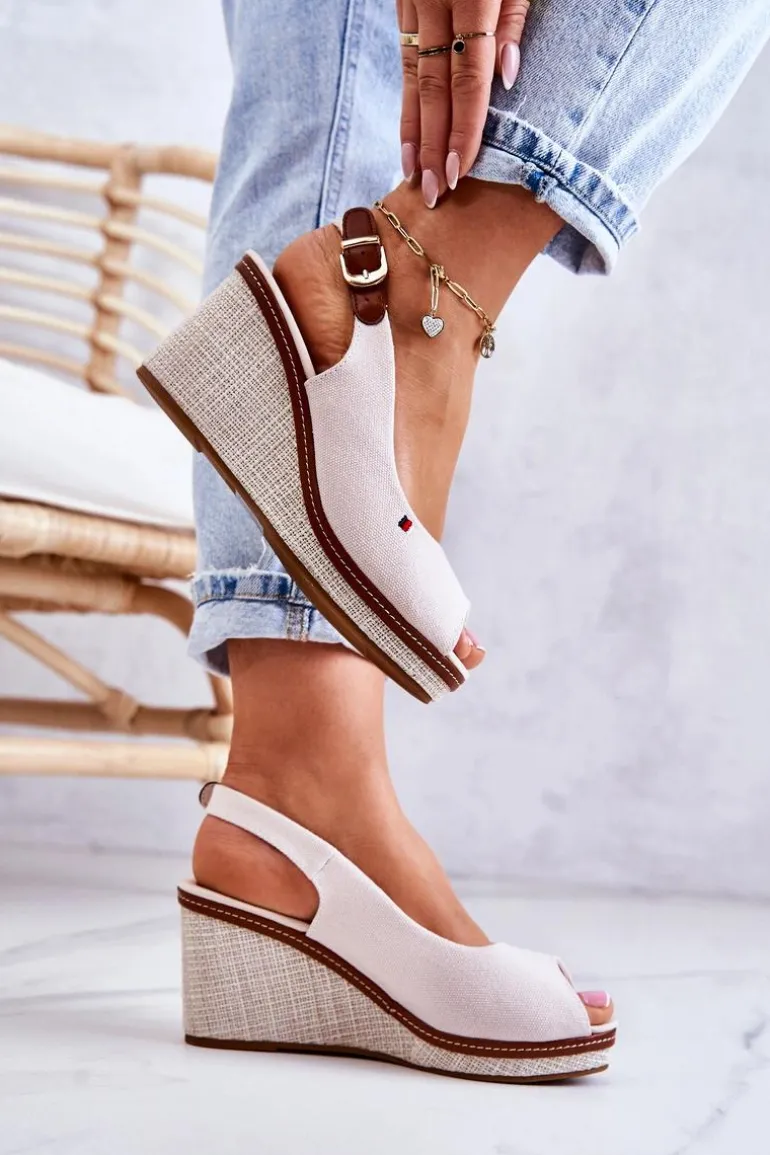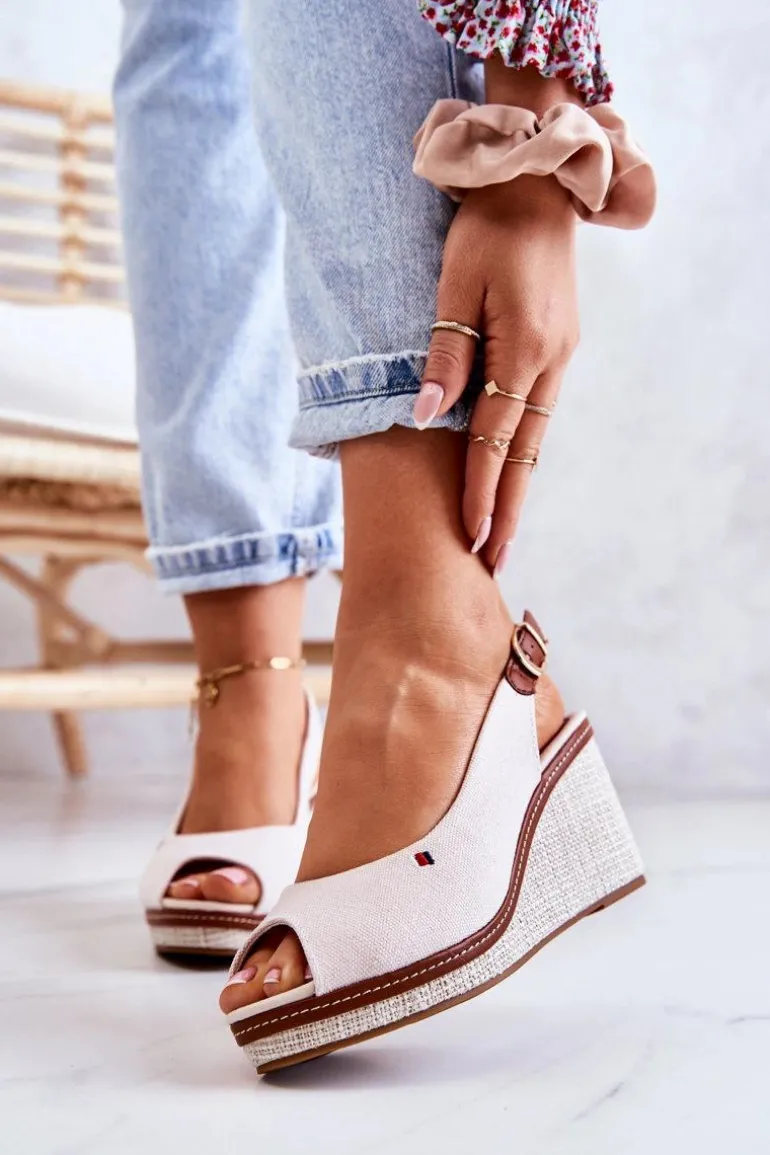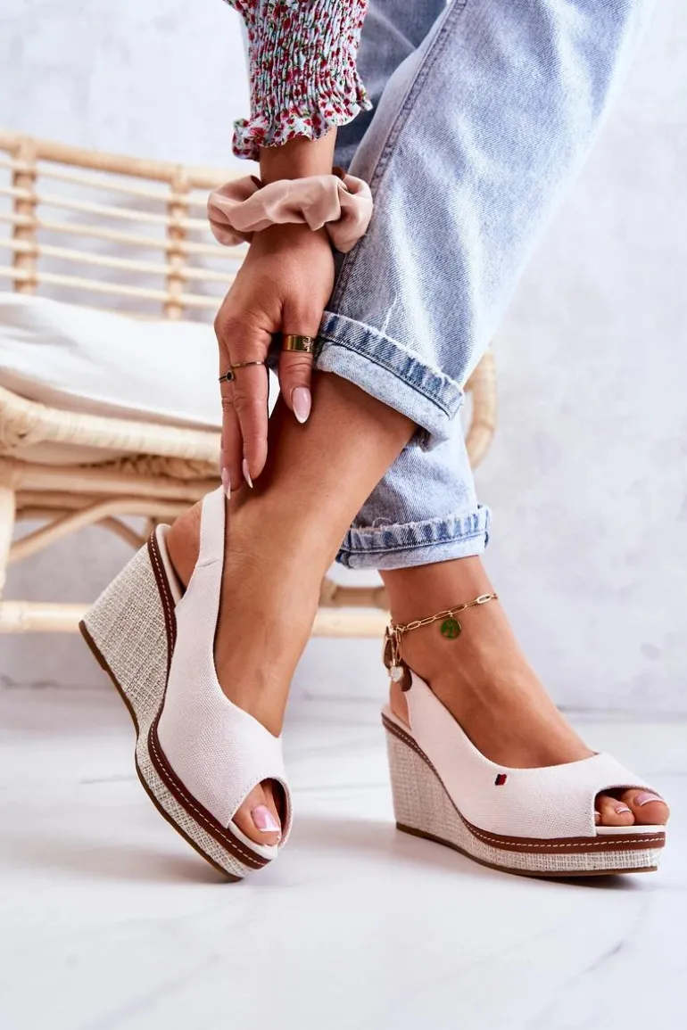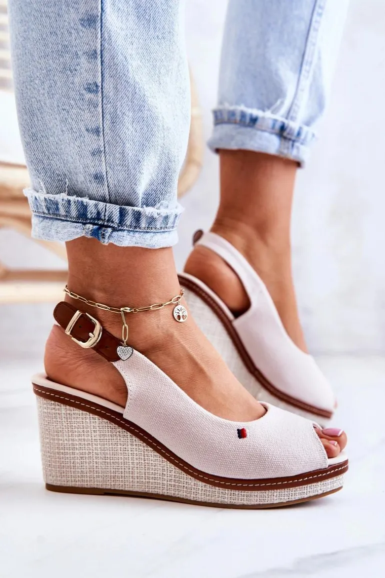 Damskie Wygodne Sandały Na Koturnie Beżowe Thallas