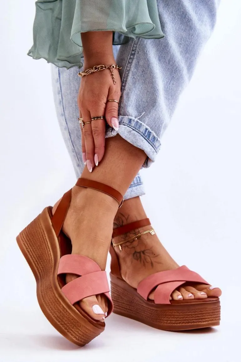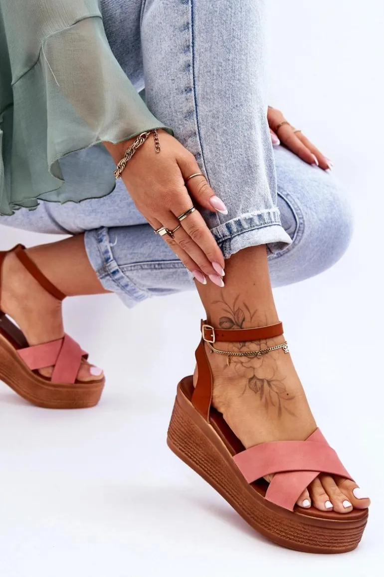 Klasyczne sandały damskie zostały osadzone na koturnie oraz platformie. Model ten posiada na przodzie dwa krzyżujące się paski. Miękka wkładka z eko skóry zapewni komfortowe użytkowanie obuwia. Sandałki posiadają platformę ozdobioną imitacją warkoczy. Zapinane na regulowany pasek ze sprzączką. Przy wyborze rozmiaru prosimy sugerować się tabelą rozmiarów.