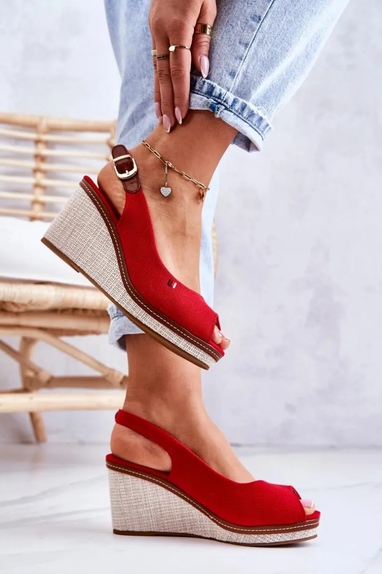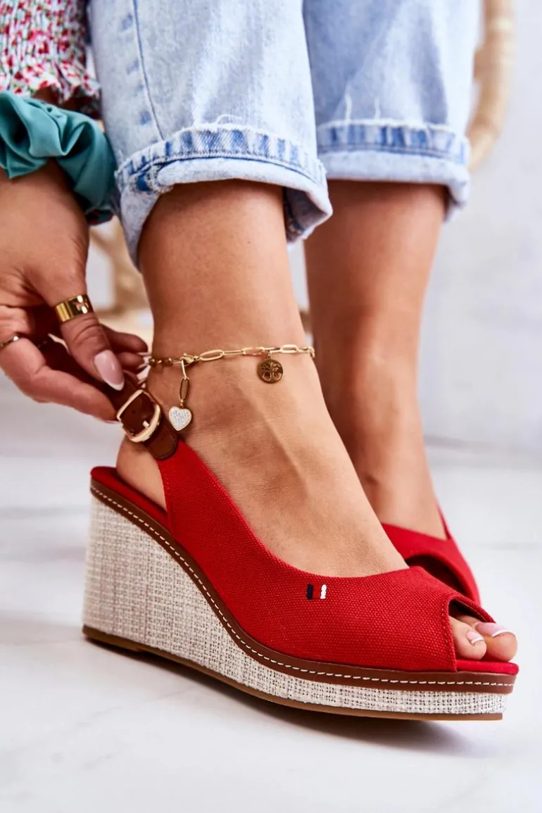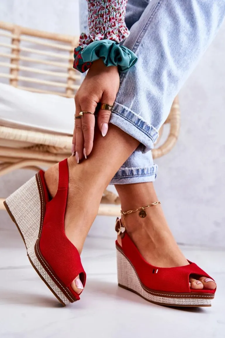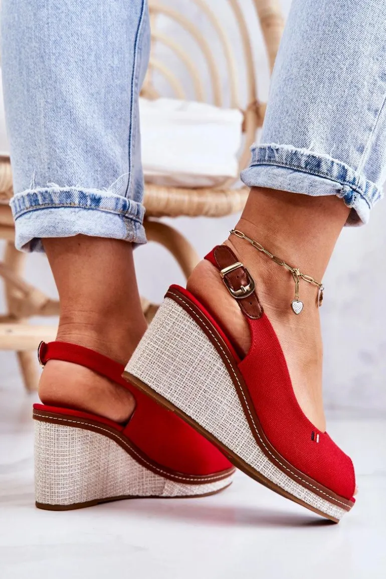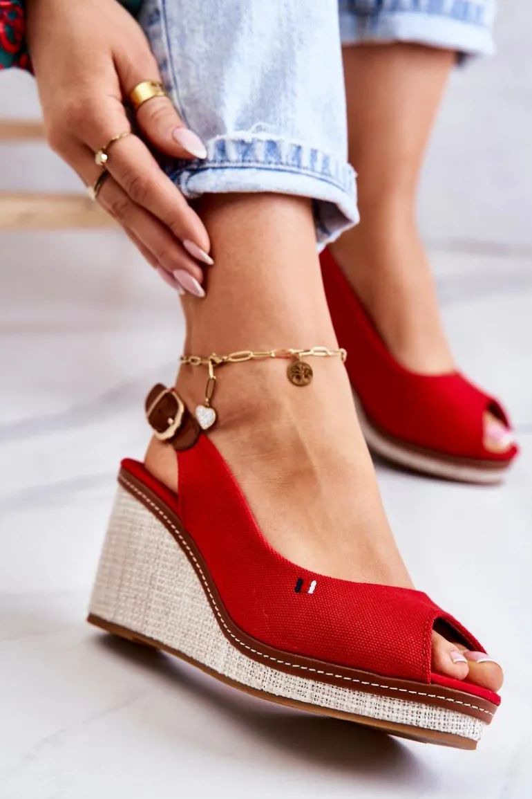 Damskie Wygodne Sandały Na Koturnie Czerwone Thallas
