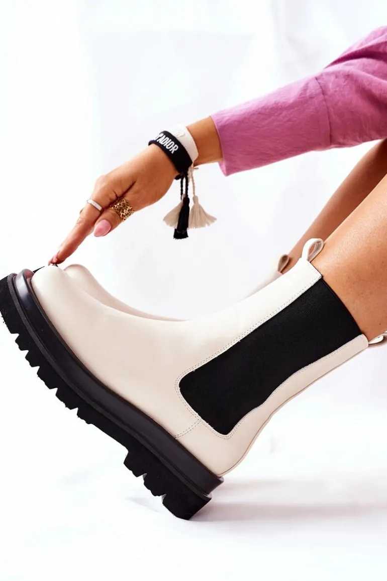 Marzenia stały się rzeczywistością, dzięki naszej najnowszej kolekcji od S.Barski! Nietuzinkowe wzornictwo oraz wysoka jakość wykonania. Prezentowany model został wykonany z najwyższej jakości skóry ekologicznej. Wysoka cholewka z dwoma ściągaczami, zapewnia łatwe zakładanie oraz idealne dopasowanie się do nogi. Gruba podeszwa podkreśla ich styl, a dodatkowo zagwarantuje nam idealną izolację od podłoża, czyniąc te botki jeszcze praktyczniejszymi. Przy wyborze rozmiaru prosimy sugerować się tabelą rozmiarów.