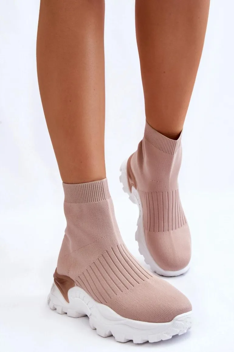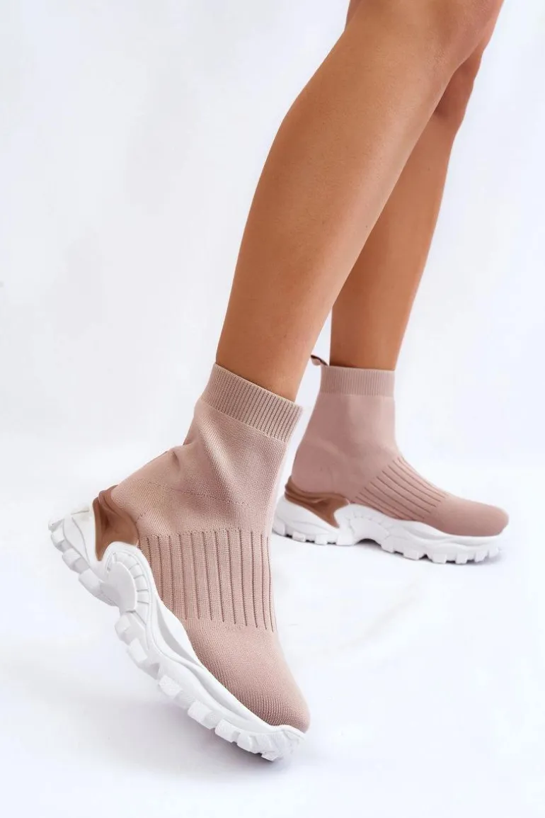 Damskie Wysokie Skarpetkowe Buty Sportowe Beżowe Jovie