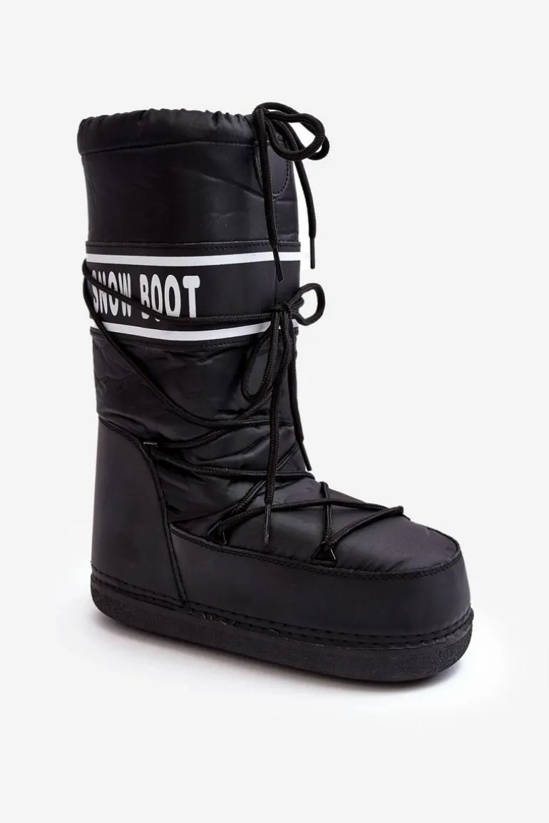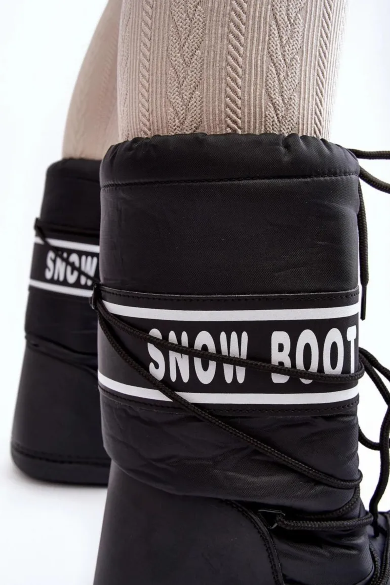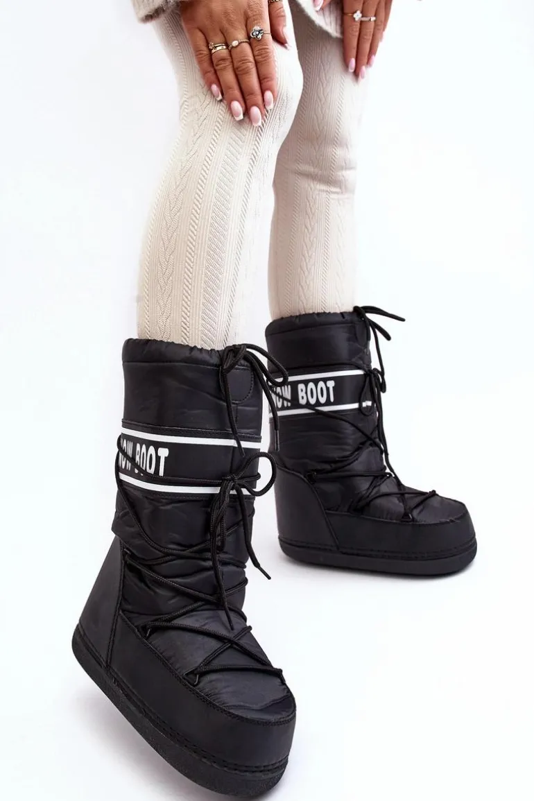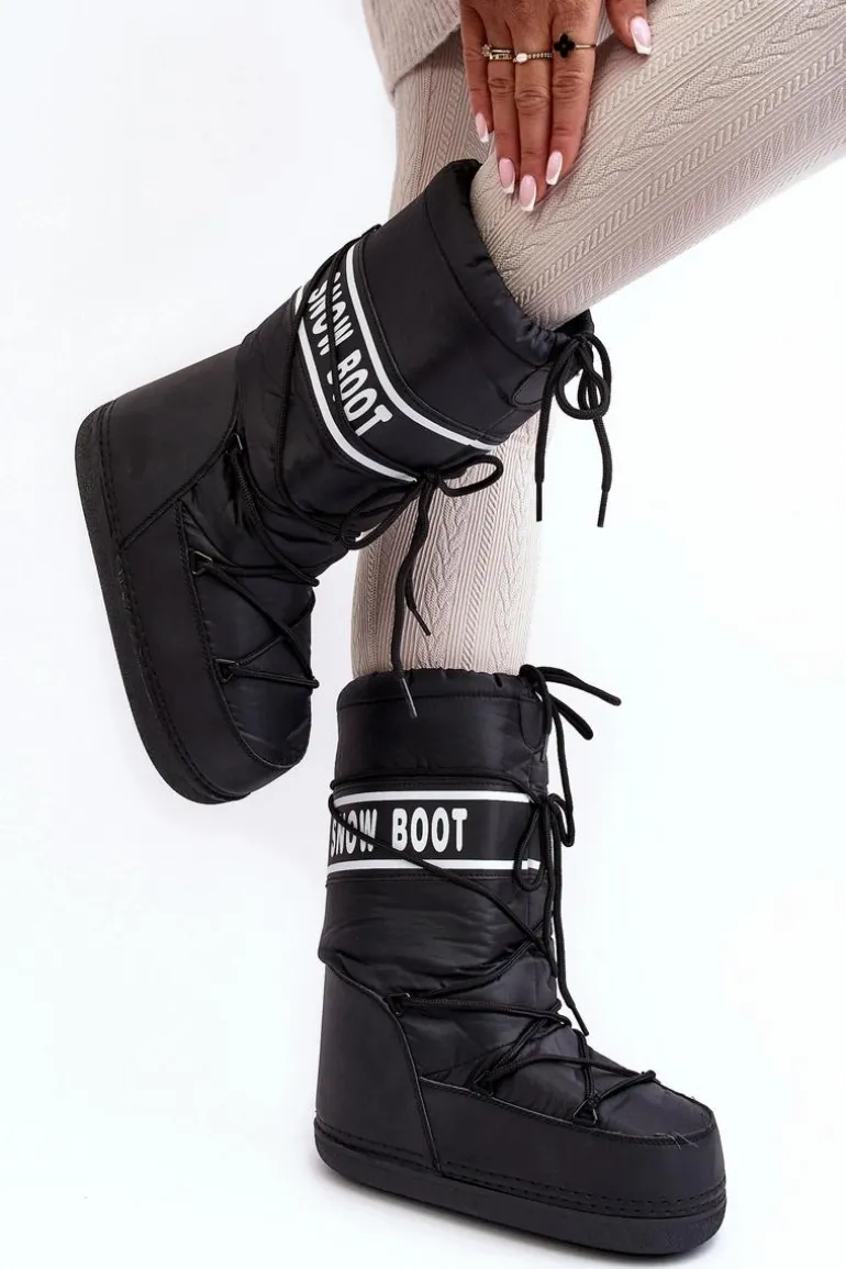 Niezwykle ciepłe i wygodne, damskie śniegowce zostały wykonane z materiałów odpornych na zimno i wiatr. Cholewka z dodatkiem eko skóry i ozdobnym napisem wzbogaci Twoją jesienno-zimową stylizację. Śniegowce są wsuwane i posiadają dodatkowe sznurowanie z przodu i u góry cholewki. Model ten został osadzony na masywnej platformie. Wewnątrz posiadają ocieplenie w postaci pianki i koca obuwniczego. Te śniegowce to idealny model na chłodniejsze dni! Przy wyborze rozmiaru prosimy sugerować się tabelą rozmiarów.