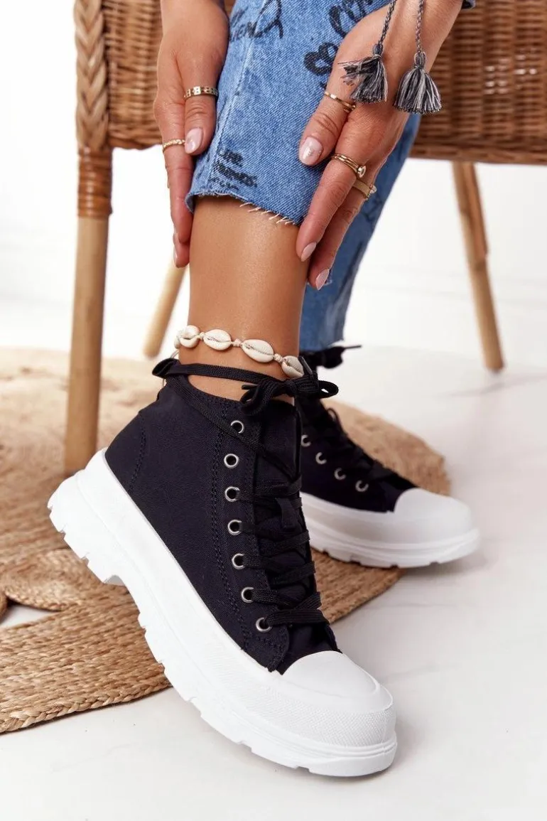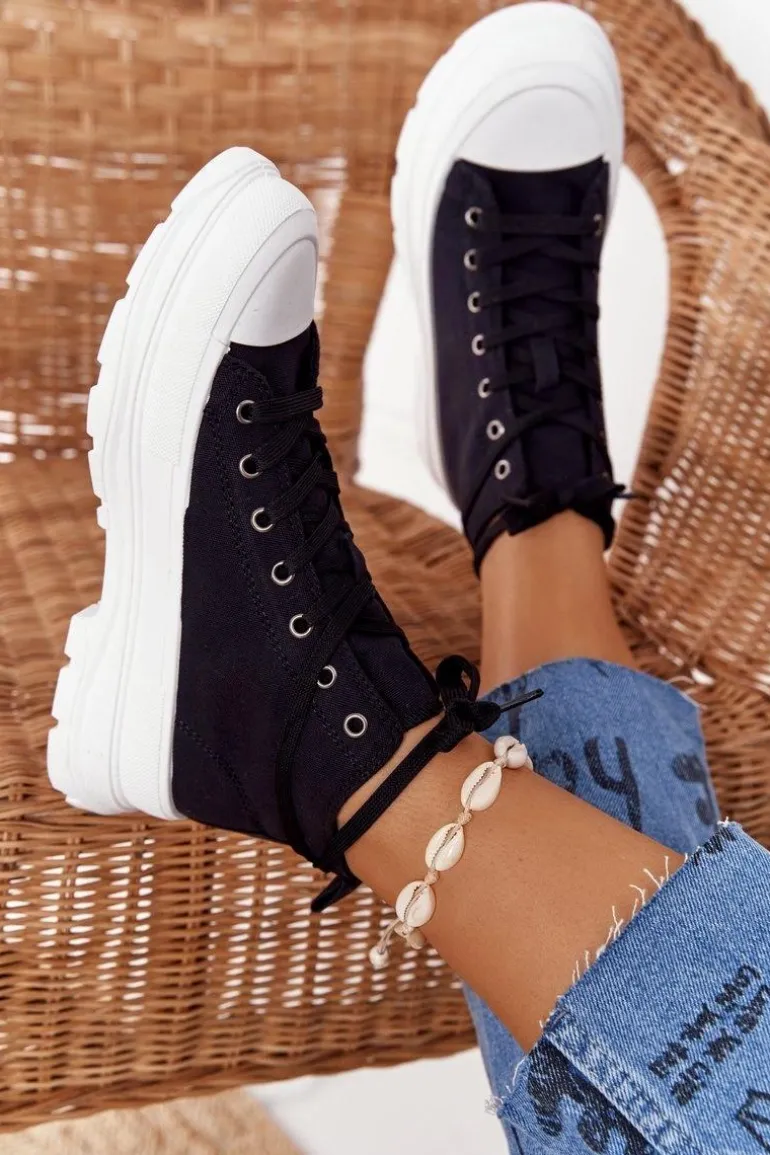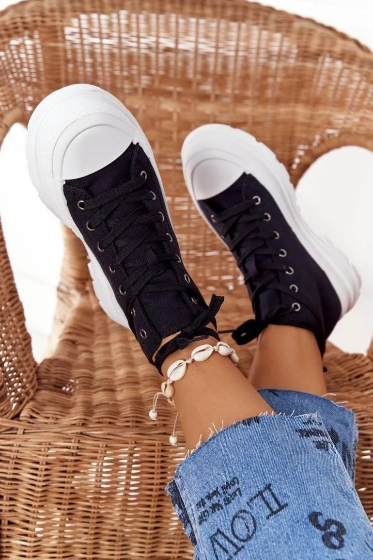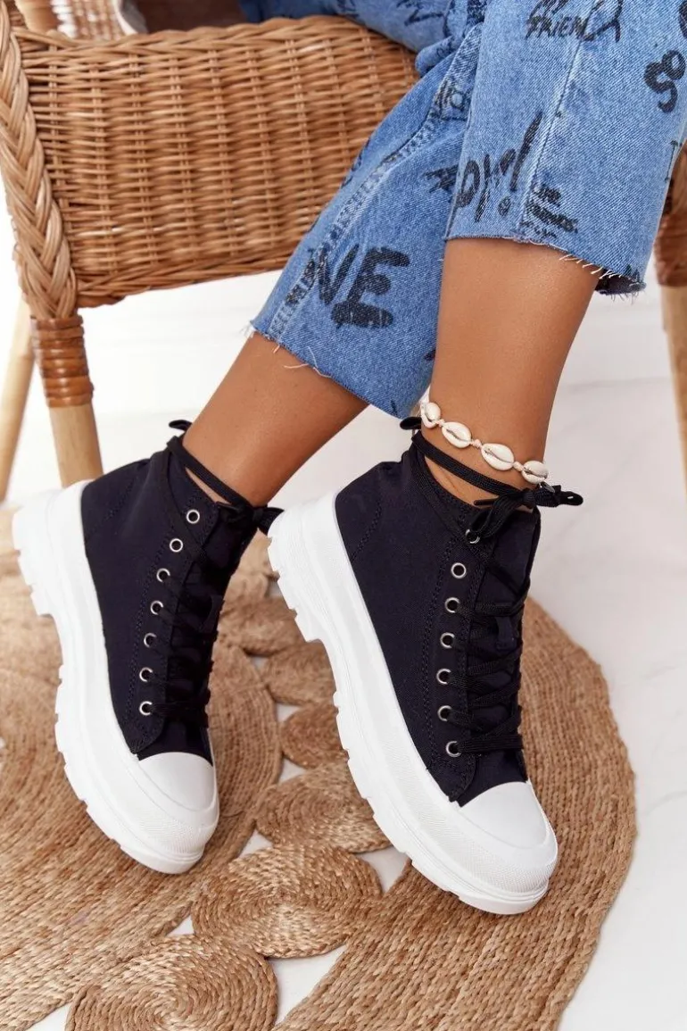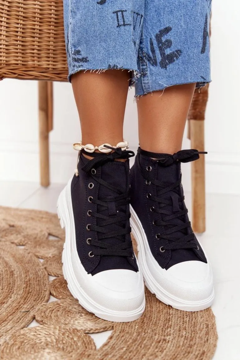 Damskie trampki na dużej podeszwie. Kultowe już trampki pasują do wielu stylizacji. Buty dobrze dopasowują się do kształtu stopy, posiadają miękką materiałową wkładkę. Koniecznie sprawdź całą naszą kolekcję trampek damskich. Przy wyborze rozmiaru prosimy sugerować się tabelą rozmiarów.