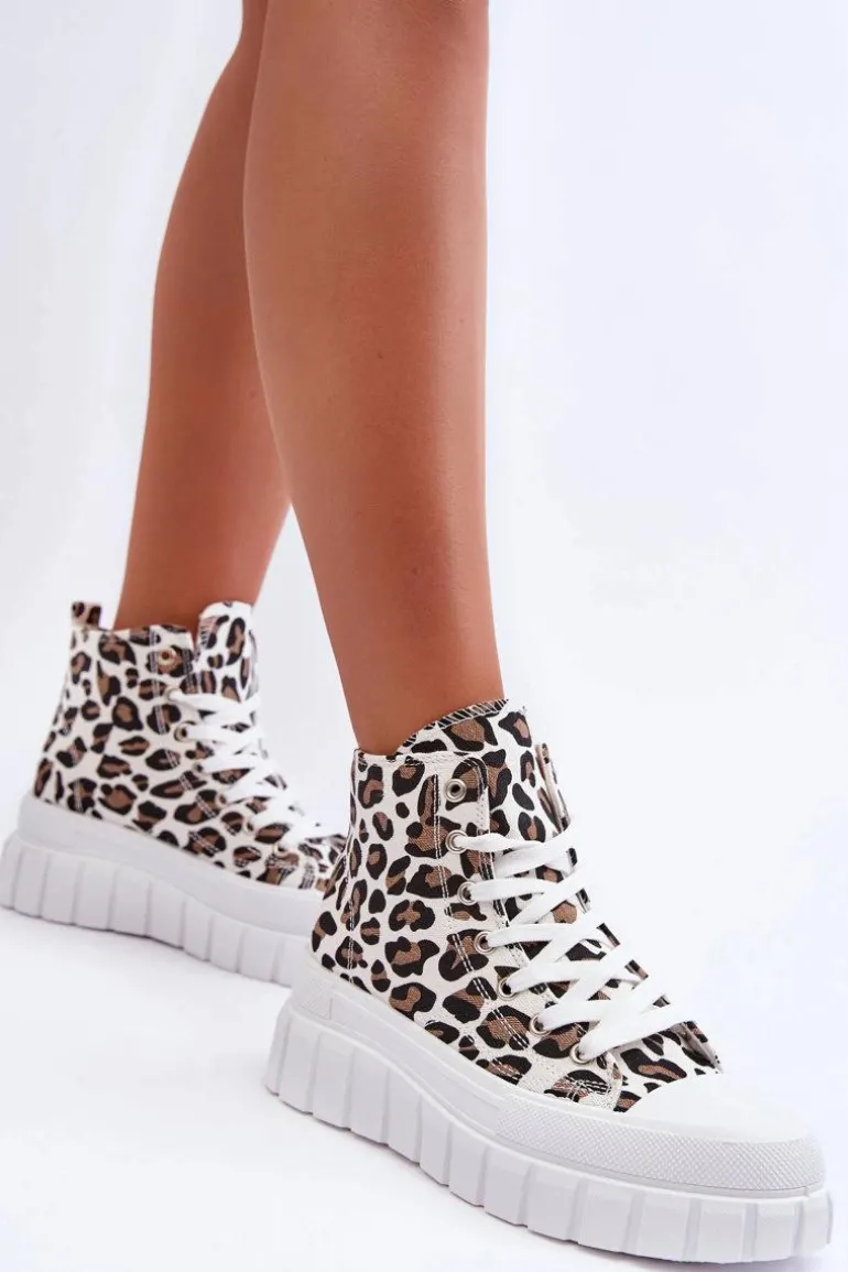 Damskie Wysokie Trampki Wzór Leopard Białe Florensi