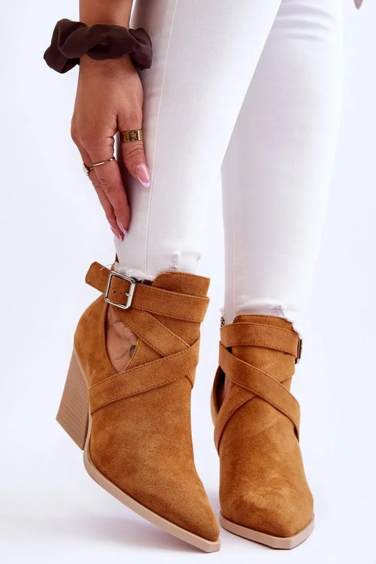 Damskie Zamszowe Botki Kowbojki Camel Dennise