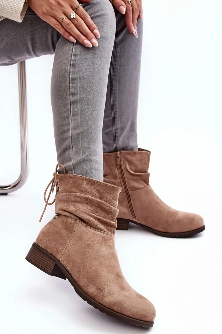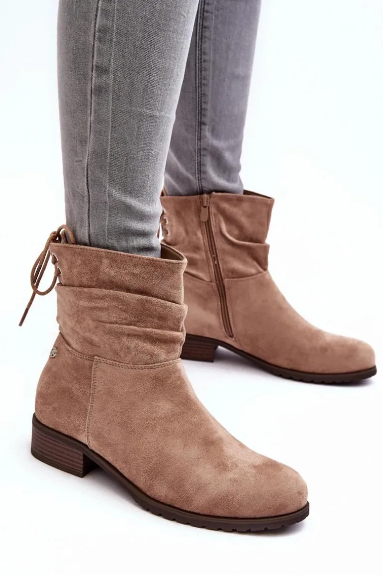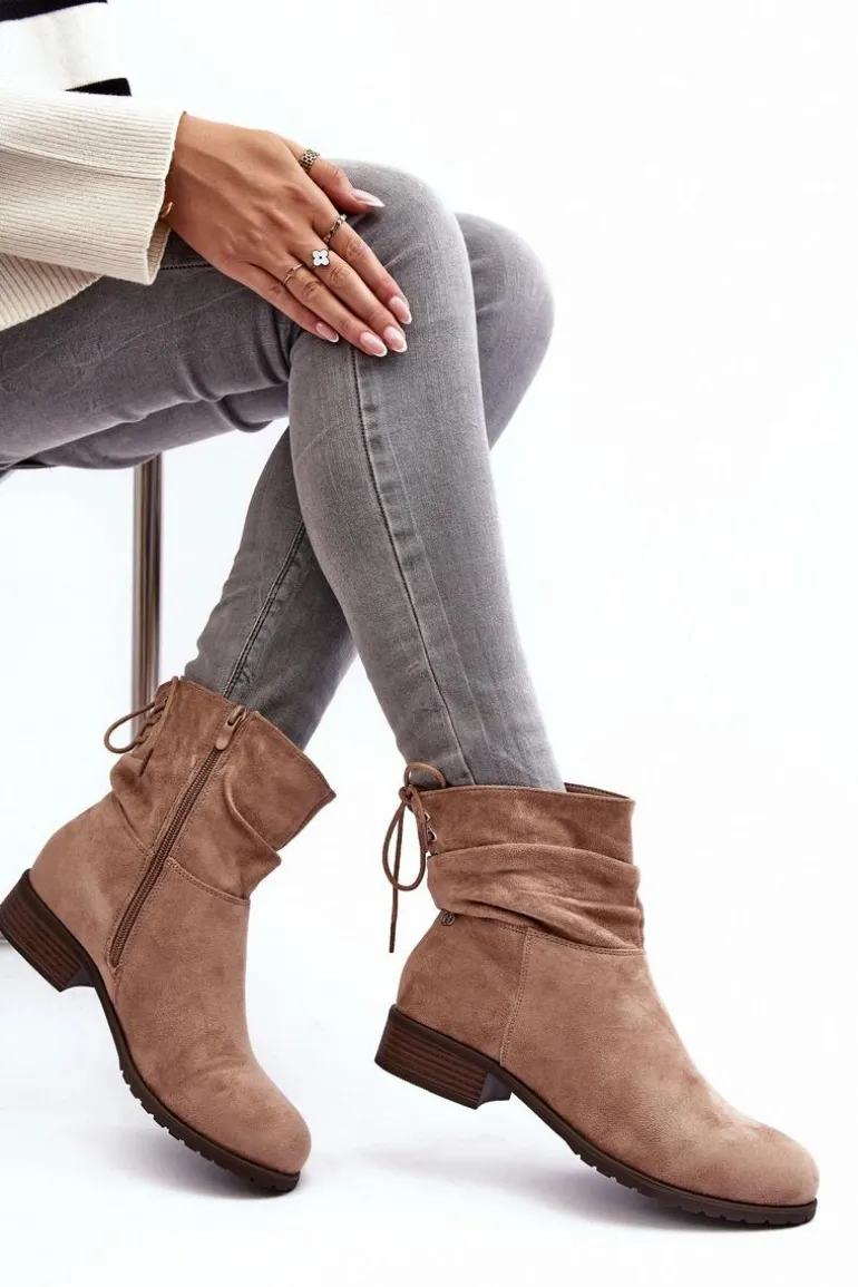 Damskie Zamszowe Botki Na Płaskim Obcasie Beżowe Keresa