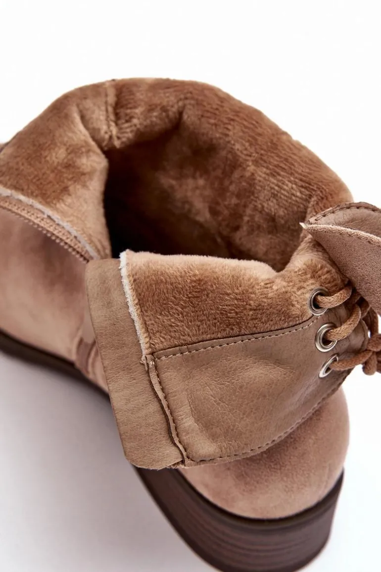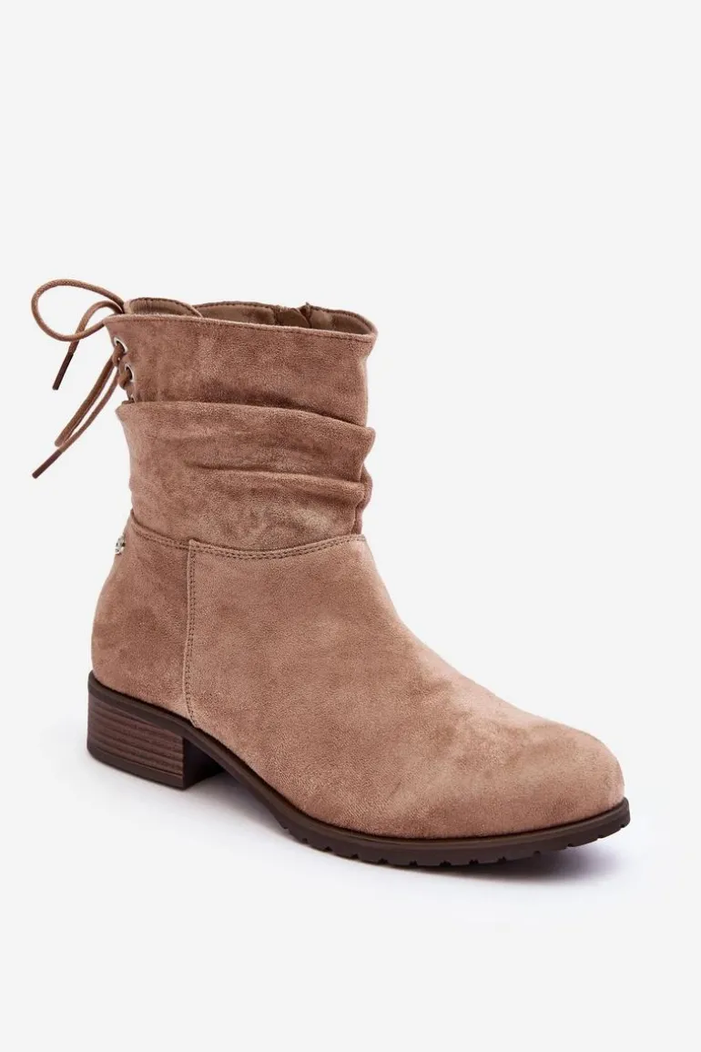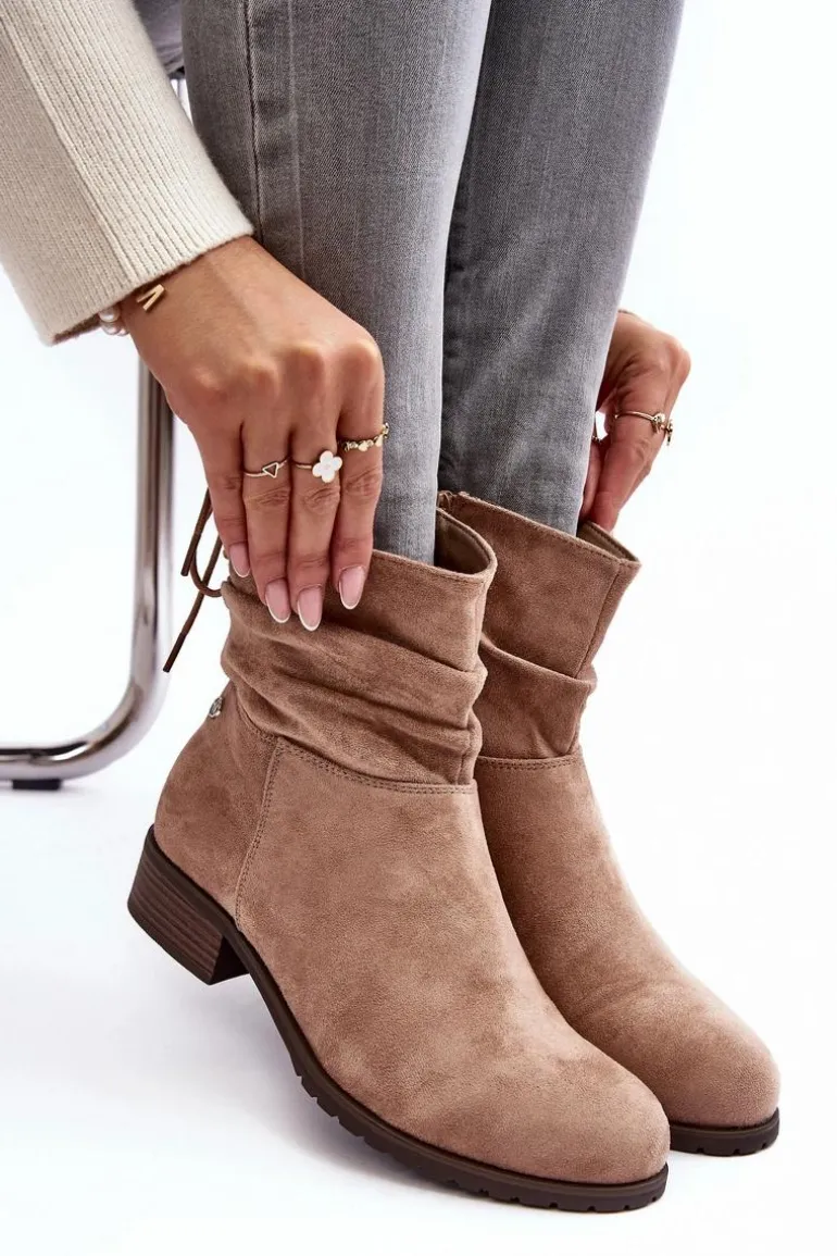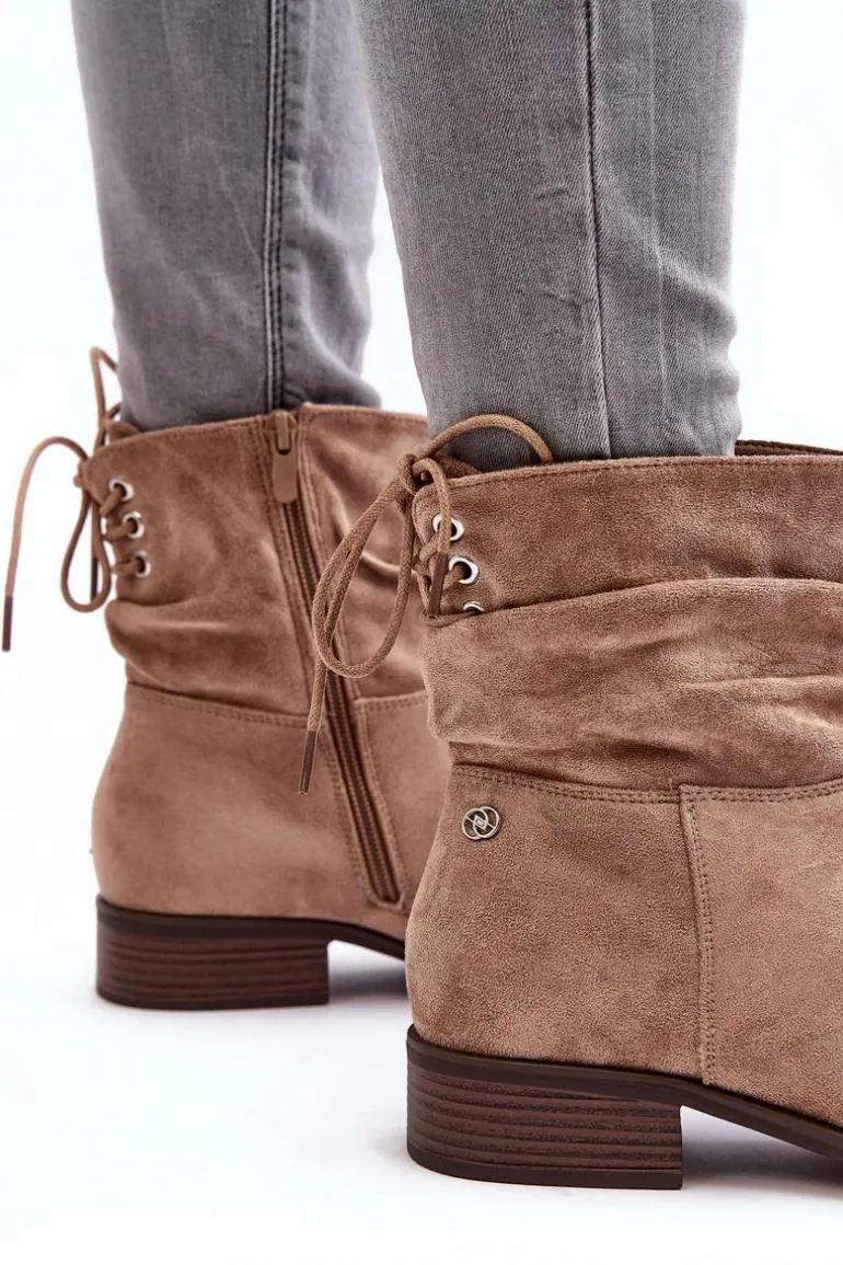 Damskie Zamszowe Botki Na Płaskim Obcasie Beżowe Keresa