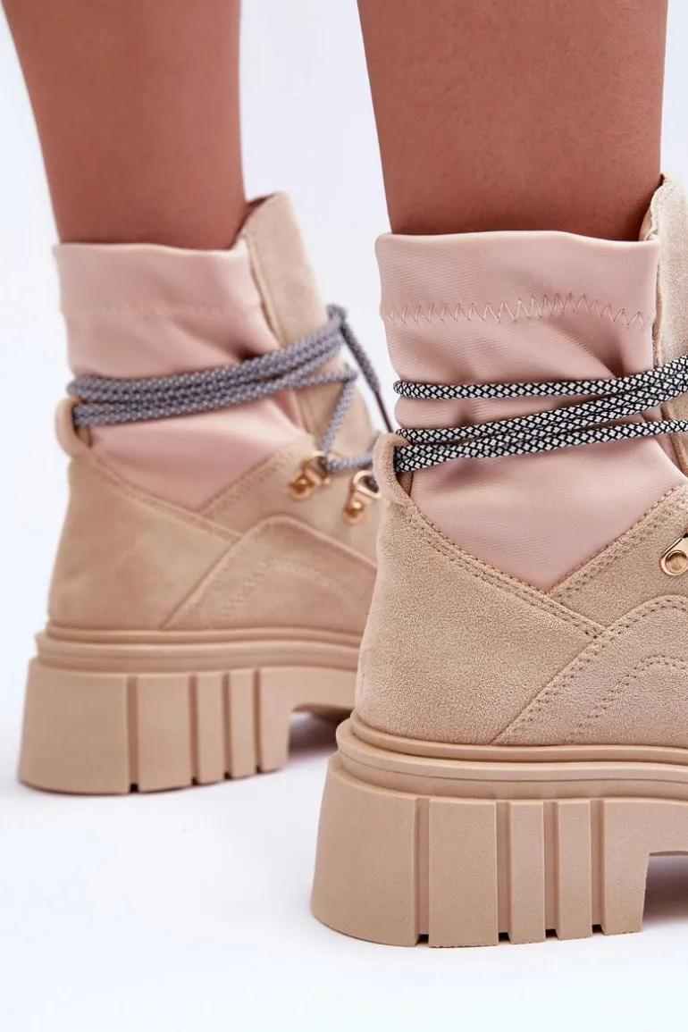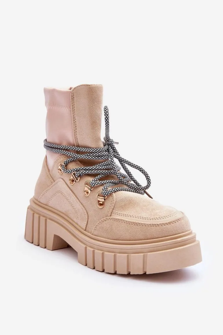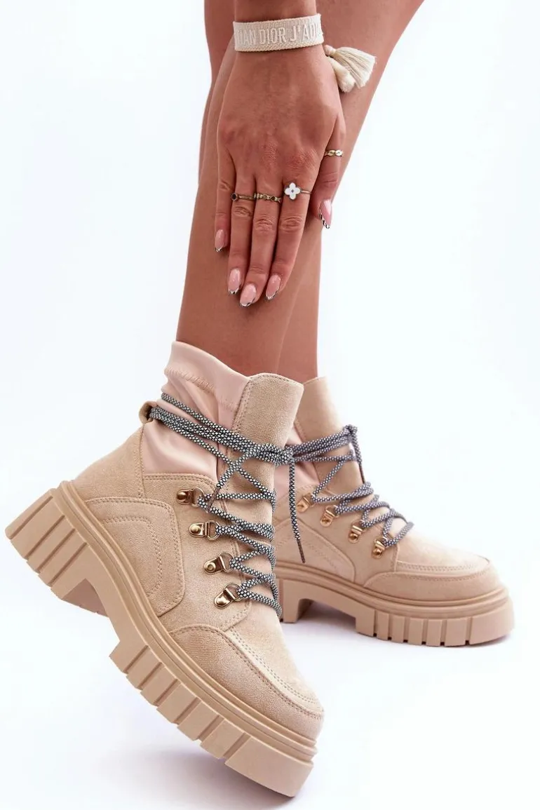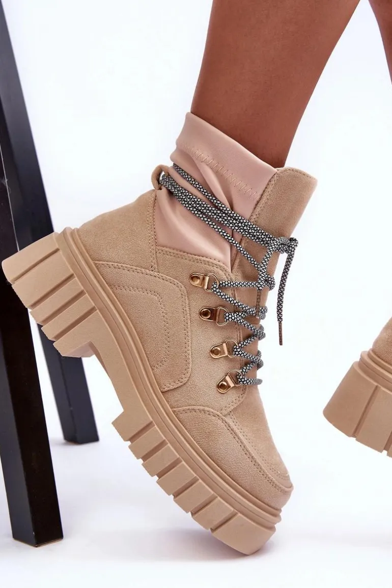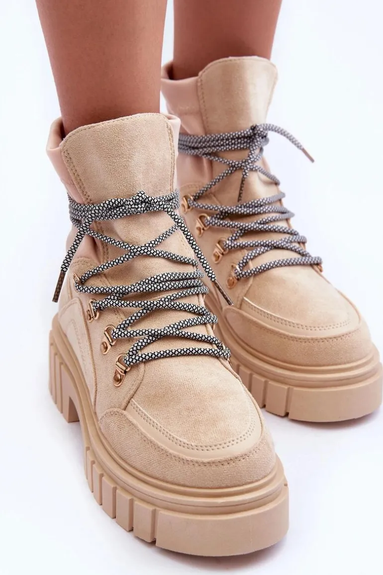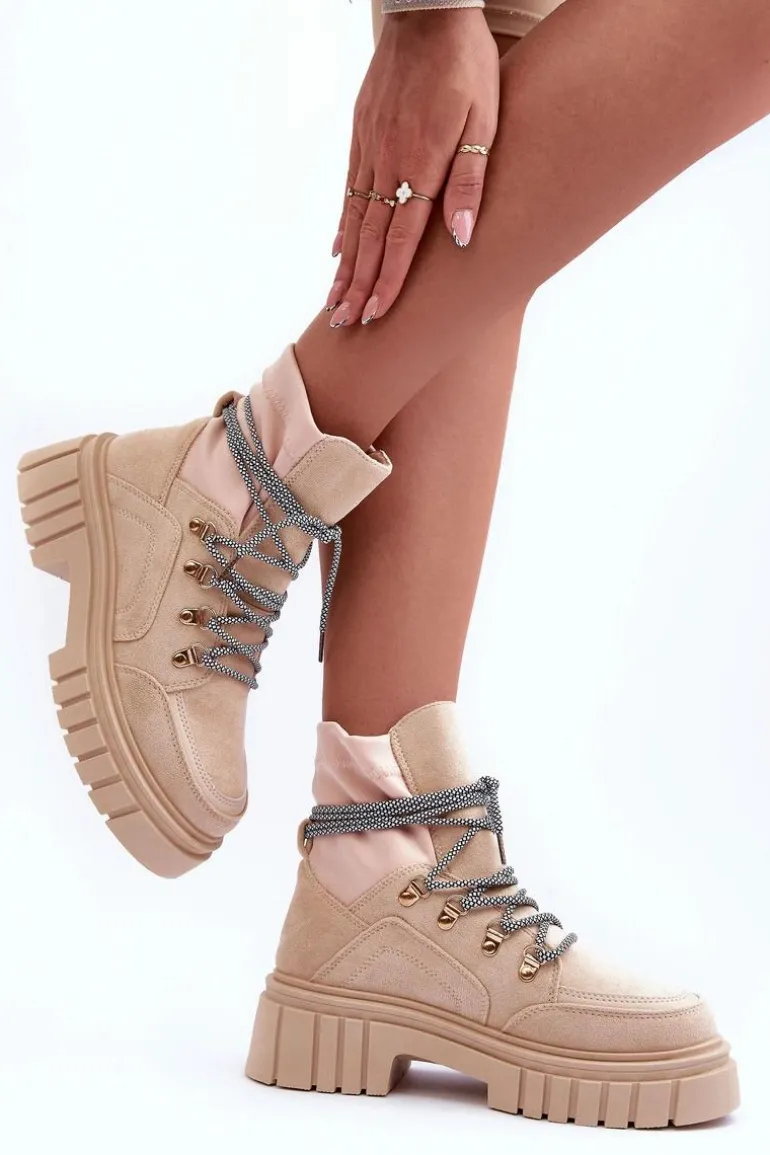 Damskie botki zostały osadzone na masywnym obcasie oraz platformie. Wykonane z eko zamszu. Cholewka za kostkę. Wewnątrz ocieplone kocem obuwniczym. Koniecznie powinnaś je mieć w swojej garderobie. Przy wyborze rozmiaru prosimy sugerować się tabelą rozmiarów.