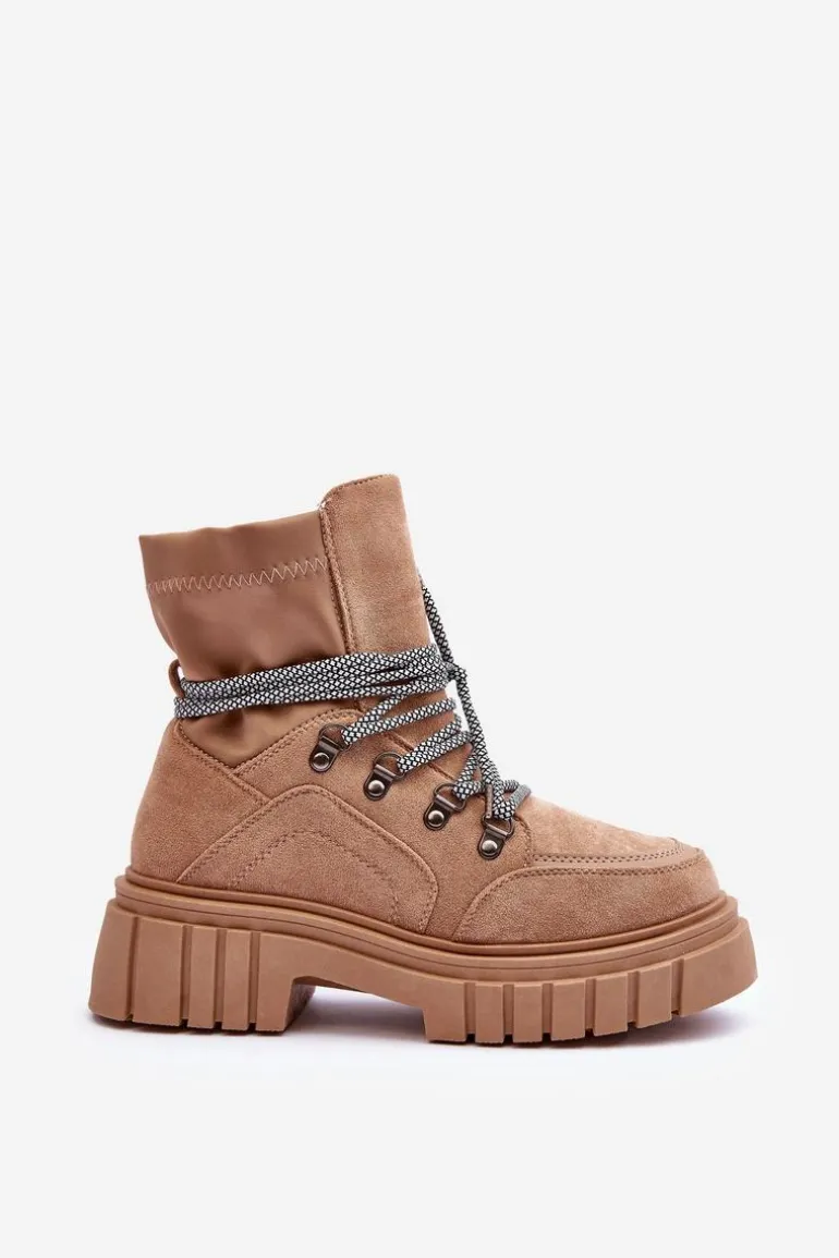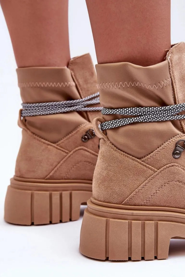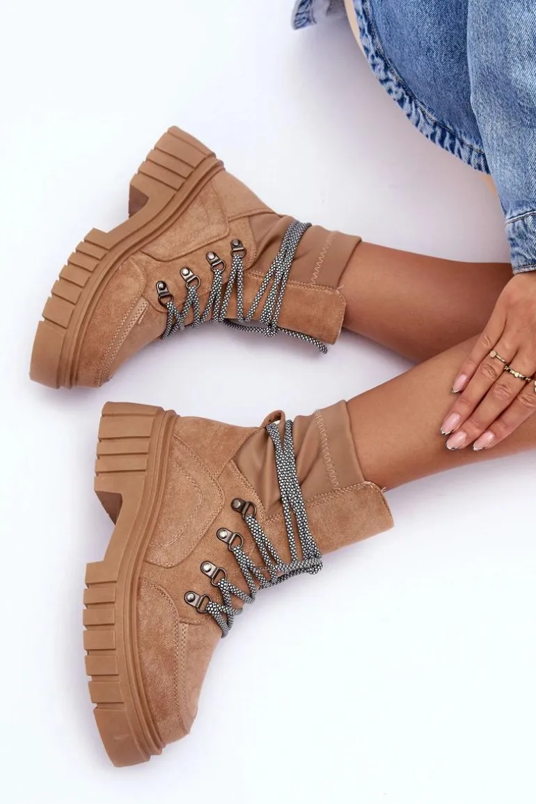 Damskie botki zostały osadzone na masywnym obcasie oraz platformie. Wykonane z eko zamszu. Cholewka za kostkę. Wewnątrz ocieplone kocem obuwniczym. Koniecznie powinnaś je mieć w swojej garderobie. Przy wyborze rozmiaru prosimy sugerować się tabelą rozmiarów.