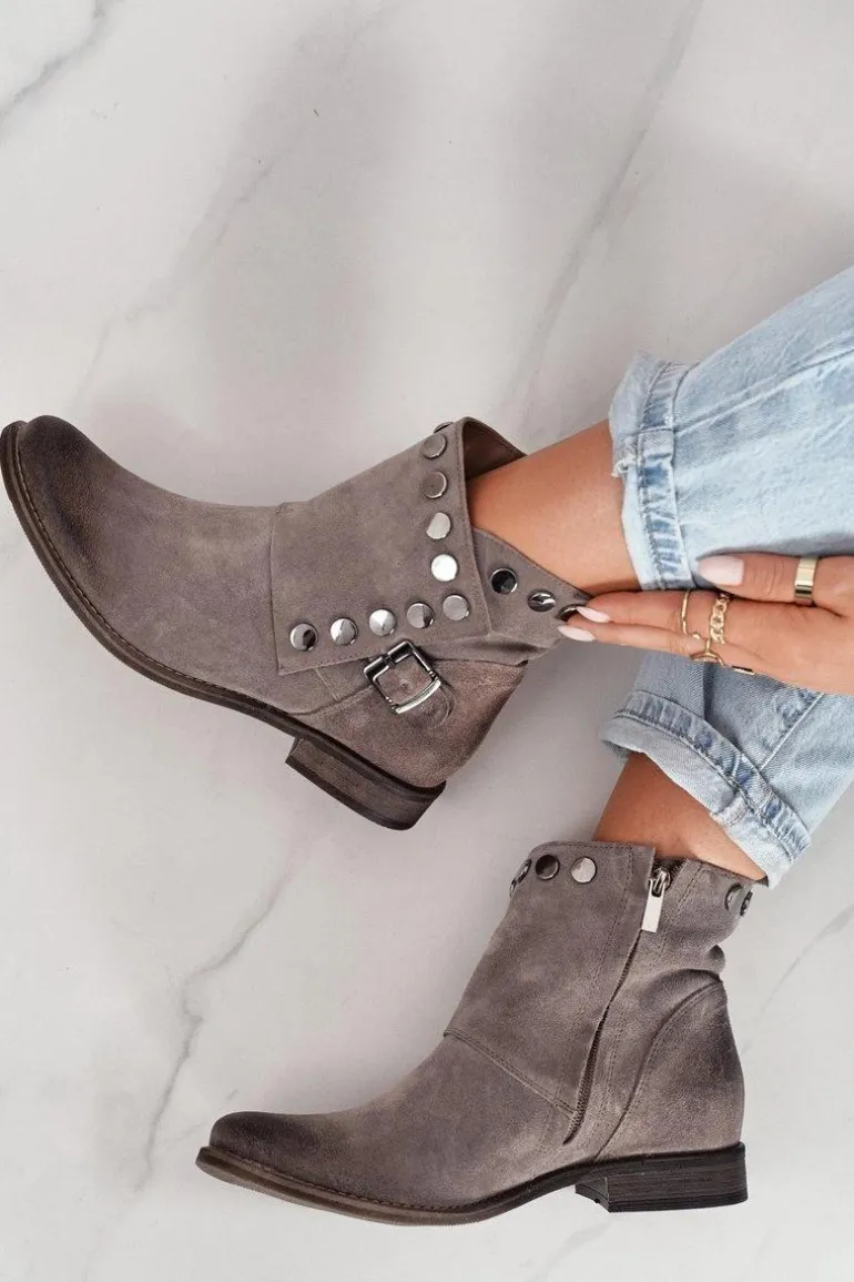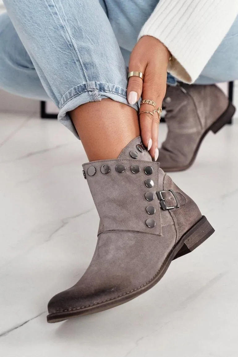 Damskie Zamszowe Botki Z Klamrą Exquisite 1198 Cappuccino