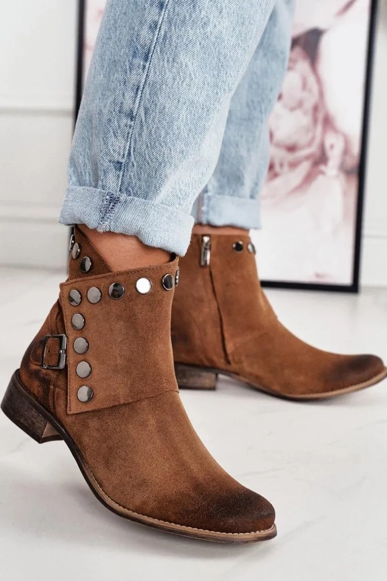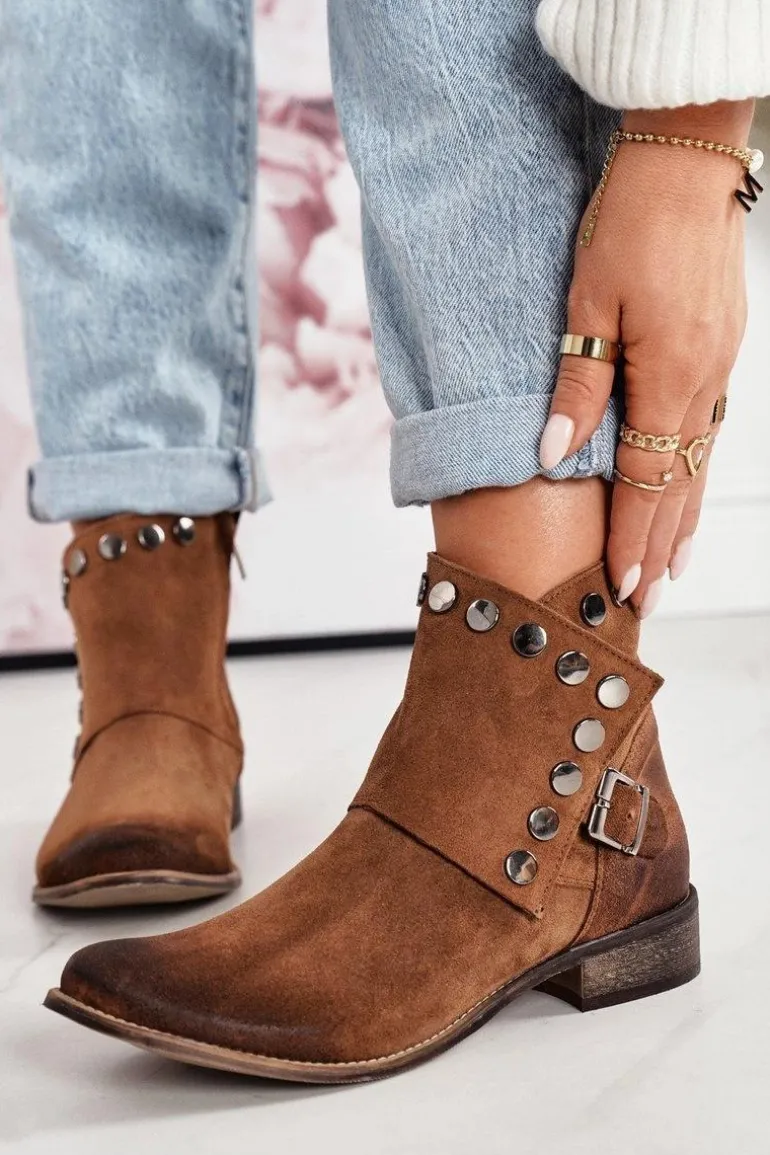 Damskie Zamszowe Botki Z Klamrą Exquisite 1198 Koniak
