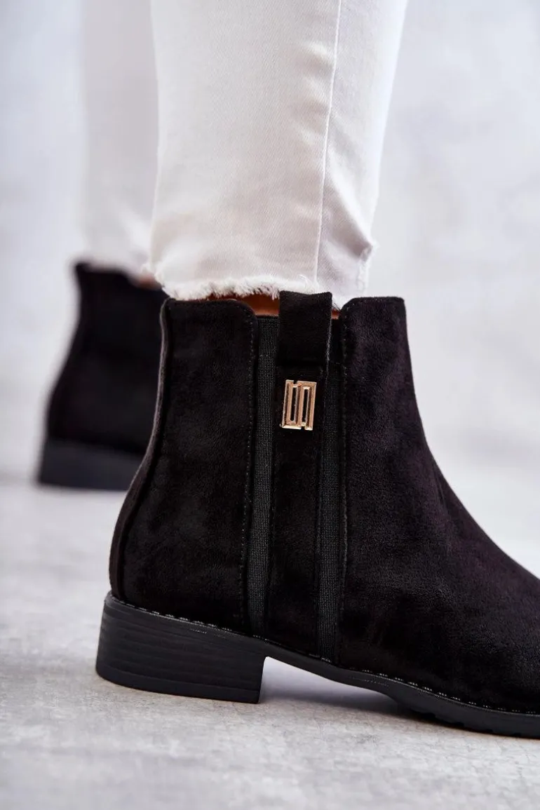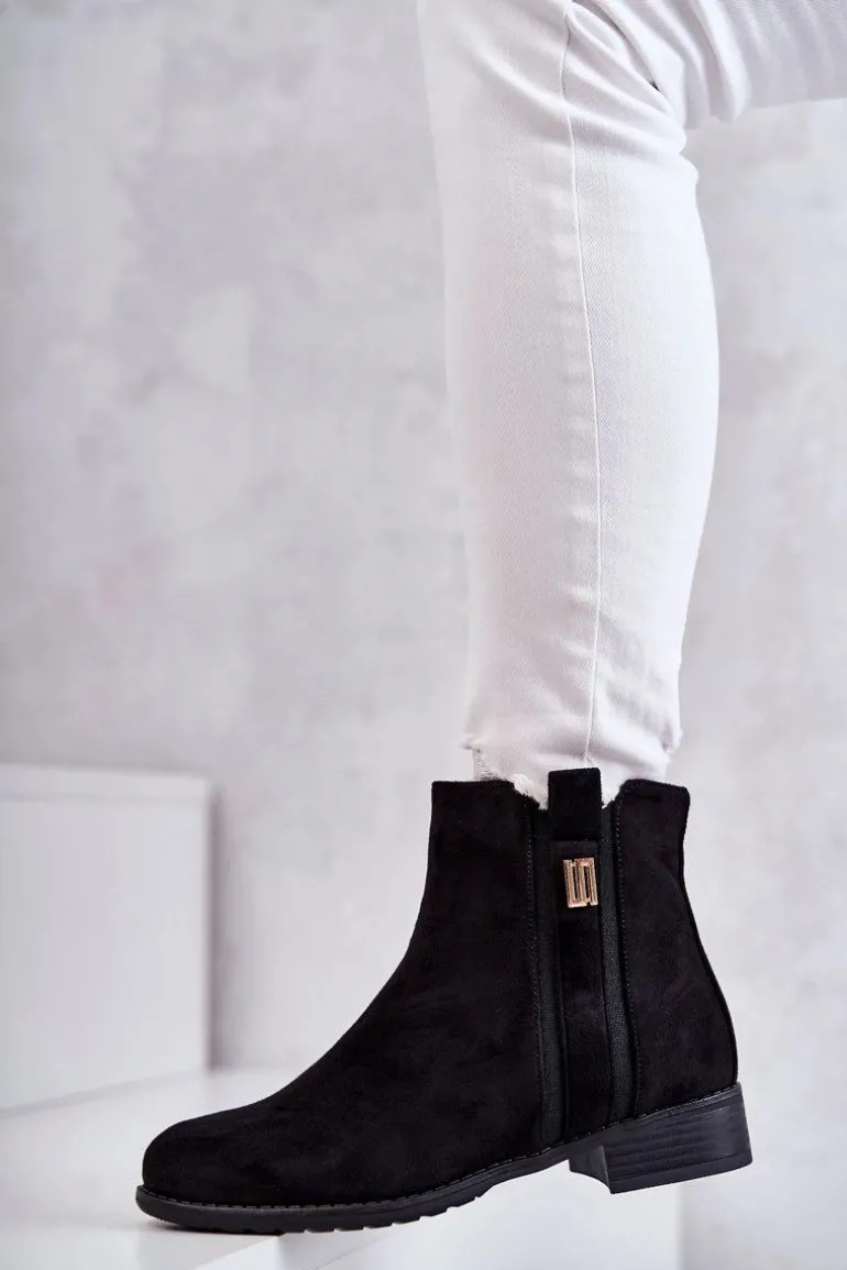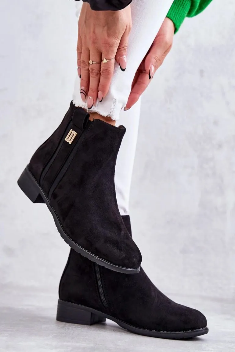 Klasyczne botki wykonane z miłego w dotyku eko zamszu. Posiadają ozdobny emblemat z boku cholewki. Osadzone na płaskim obcasie. Botki te posiadają zaokrąglony nosek oraz usztywniany zapiętek. Wnętrze zostało ocieplone kocem obuwniczym. Z boku cholewki znajduje się suwak ułatwiający zakładanie obuwia. Koniecznie sprawdź także pozostałe modele botków dostępnych w naszej ofercie! Przy wyborze rozmiaru prosimy sugerować się tabelą rozmiarów.