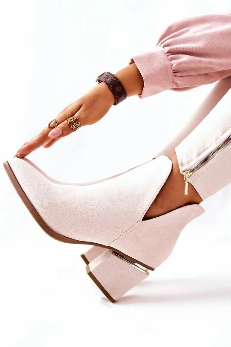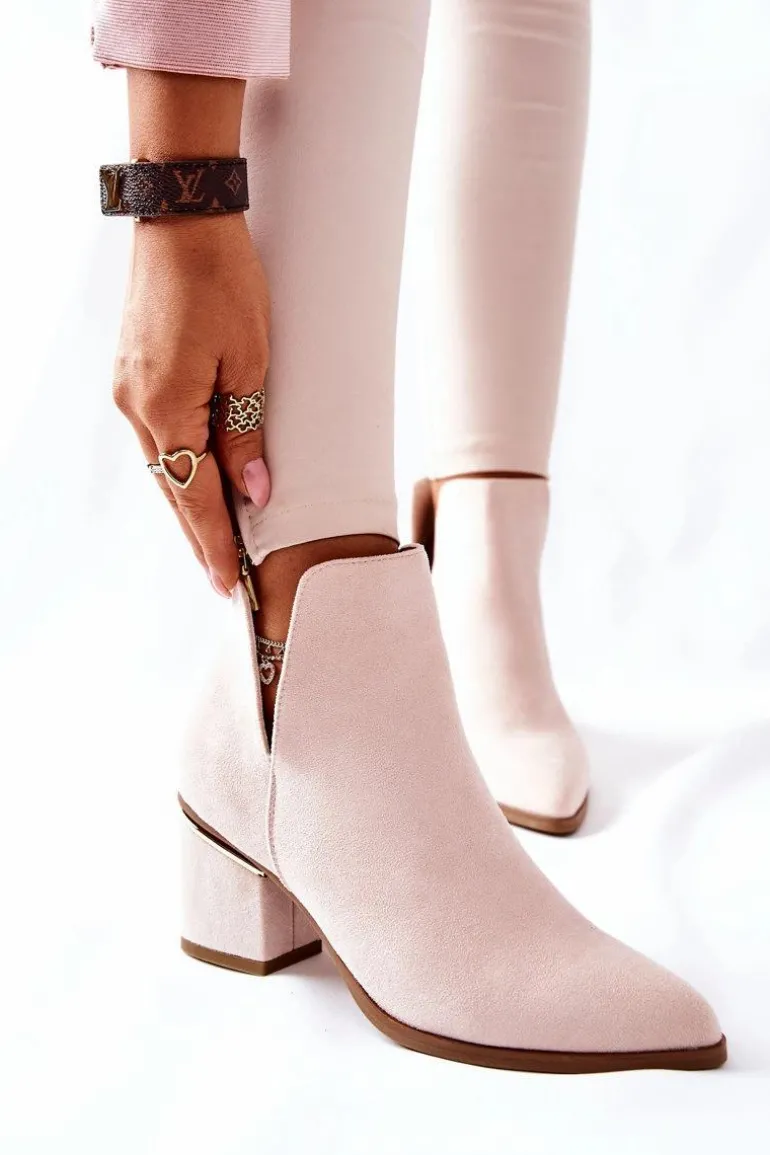 Damskie Zamszowe Botki Z Wycięciami Beżowe Noel