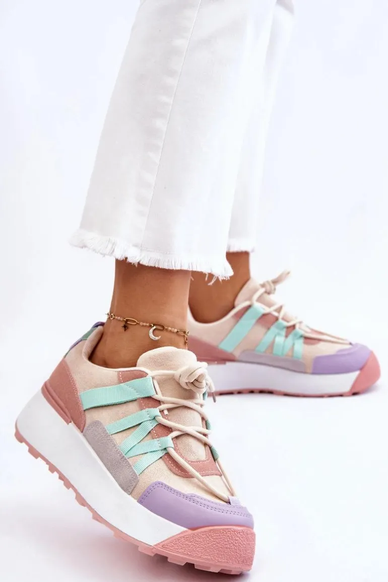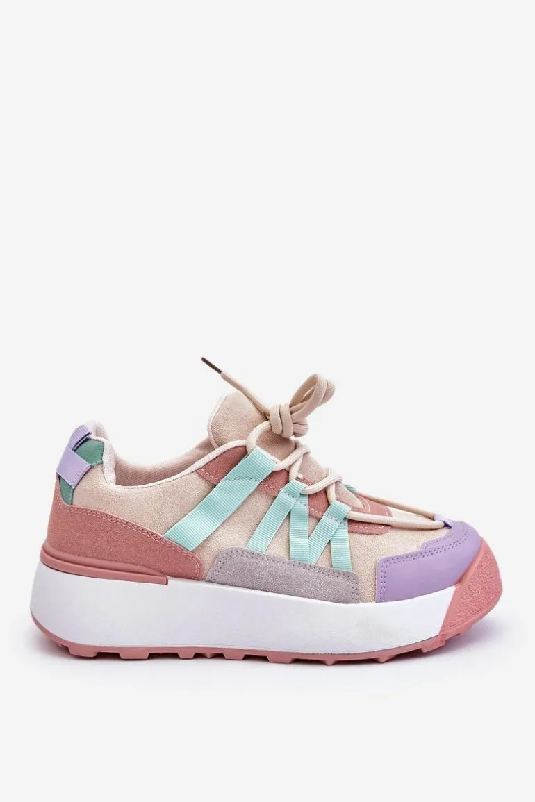 Damskie buty sportowe wykonane z eko zamszu. Zostały osadzone na masywnej platformie, która delikatnie uniesie Twoją sylwetkę. Model ten posiada klasyczne sznurowanie, które pozwoli na odpowiednie dopasowanie obuwia do tęgości nogi. Dodatkowo zapiętek jest usztywniany, a wkładka w tych butach jest wymienna. Przy wyborze rozmiaru prosimy kierować się tabelą rozmiarów.