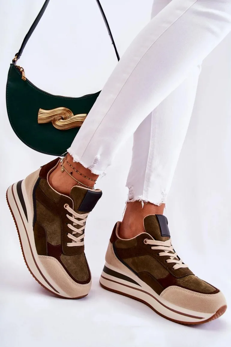 Damskie Zamszowe Buty Sportowe Zielono-Beżowe Elisse