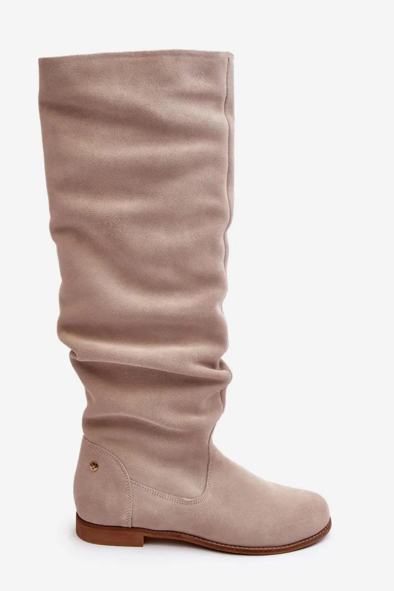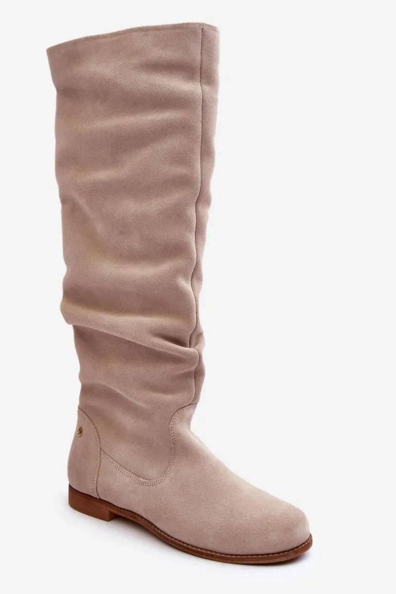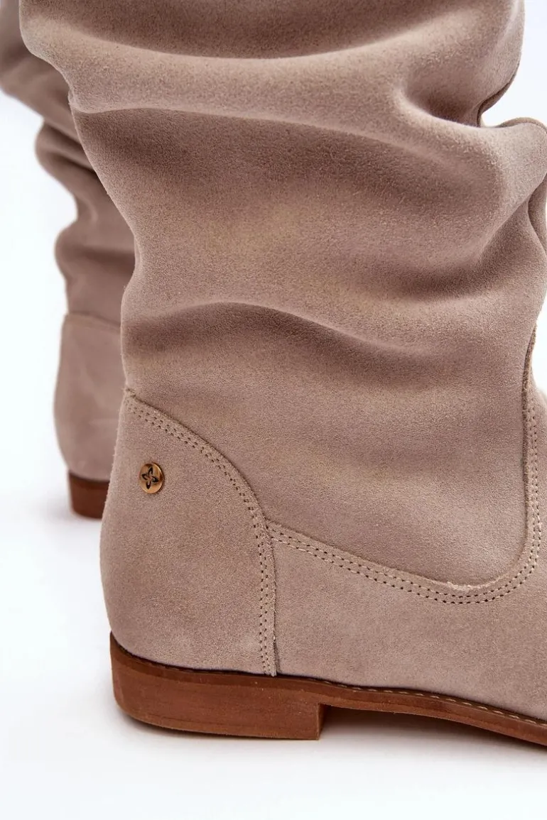 Klasyczne, damskie kozaki zostały wykonane z naturalnych skór z dbałością o szczegóły. Dodatkowo cholewka posiada marszczenia. Model ten jest wsuwany. Kozaki osadzono na płaskim obcasie. Nie posiadają ocieplenia. Zapiętek jest usztywniany. Wkładka miękka i ocieplana, co zwiększa komfort użytkowania. Przy wyborze rozmiaru prosimy sugerować się tabelą rozmiarów.