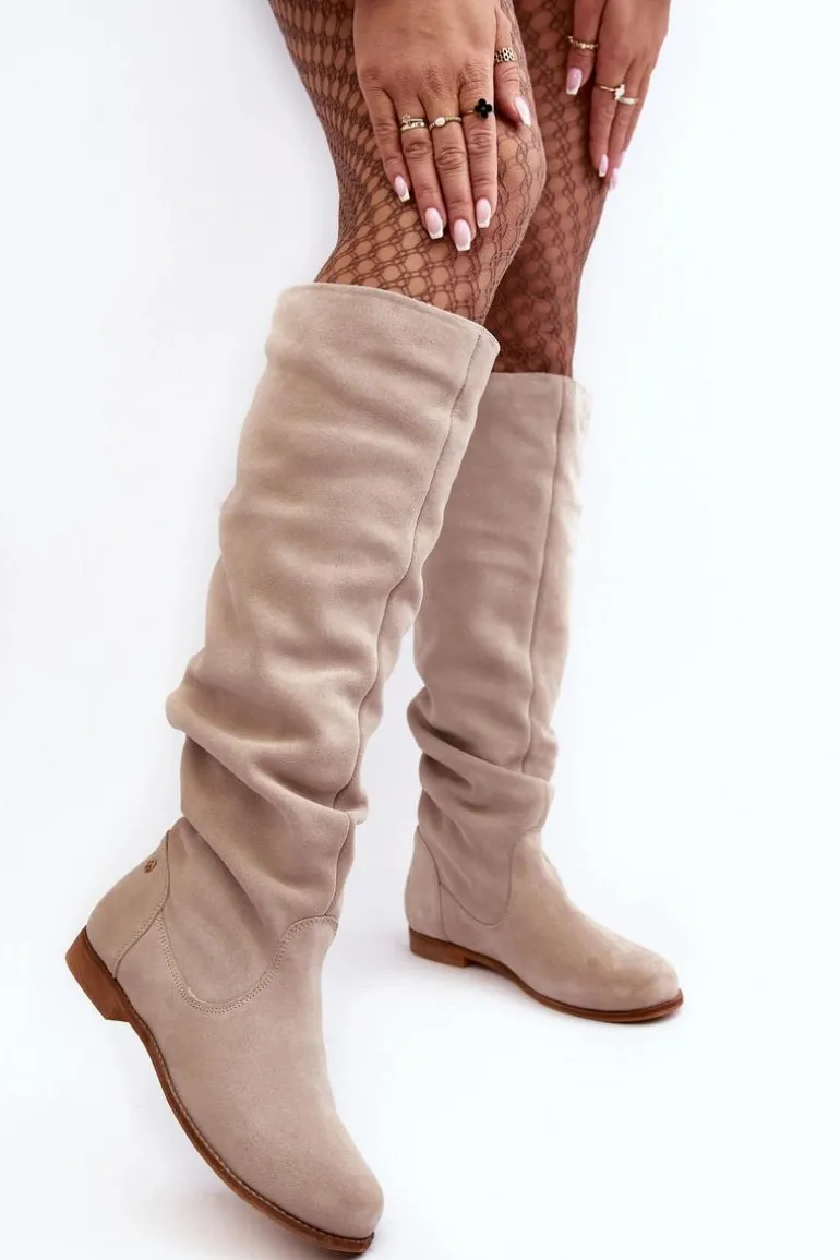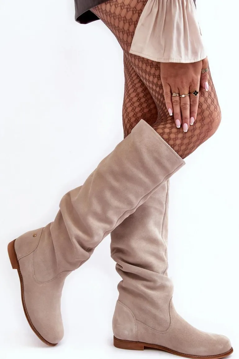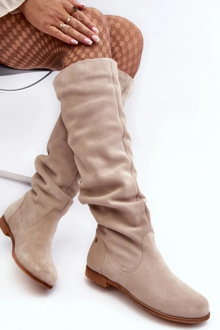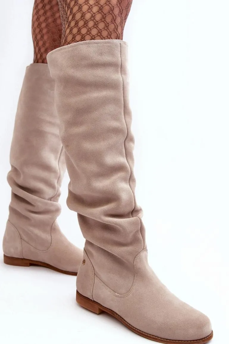 Klasyczne, damskie kozaki zostały wykonane z naturalnych skór z dbałością o szczegóły. Dodatkowo cholewka posiada marszczenia. Model ten jest wsuwany. Kozaki osadzono na płaskim obcasie. Nie posiadają ocieplenia. Zapiętek jest usztywniany. Wkładka miękka i ocieplana, co zwiększa komfort użytkowania. Przy wyborze rozmiaru prosimy sugerować się tabelą rozmiarów.