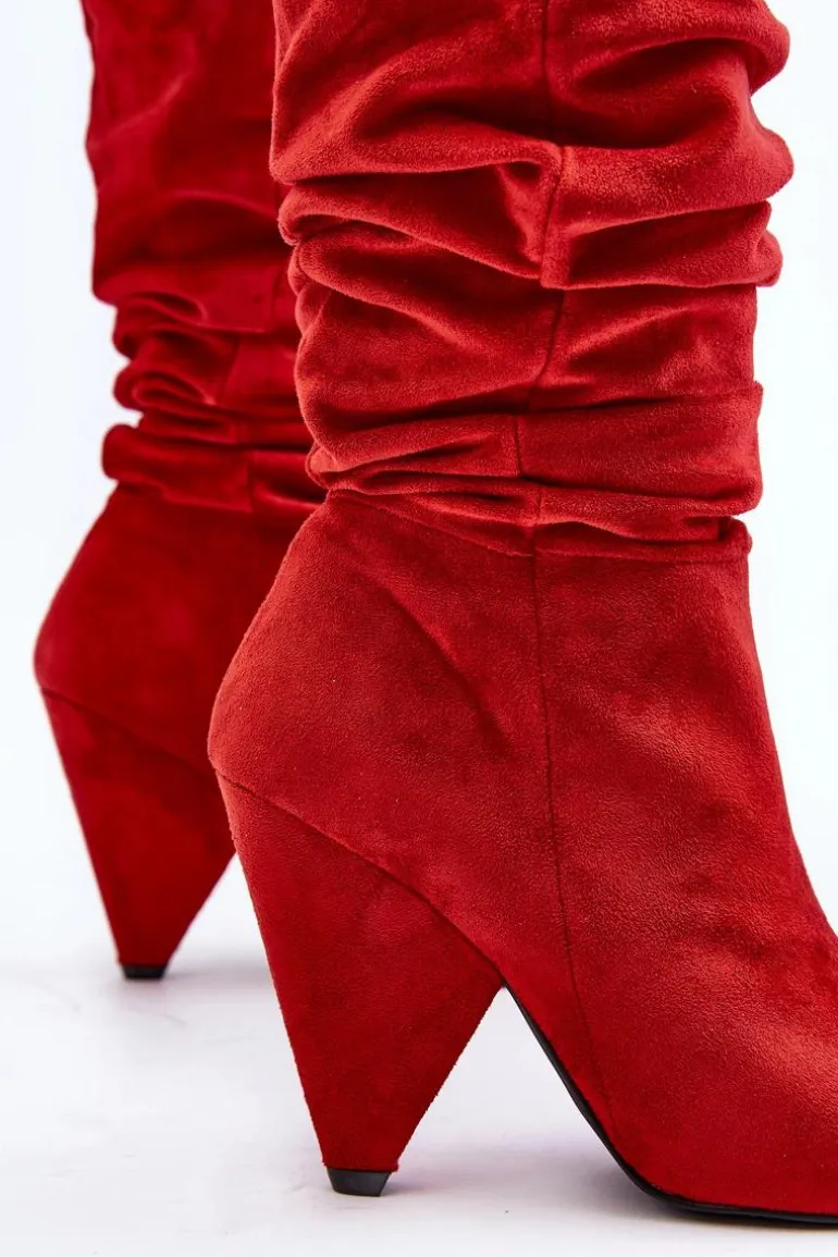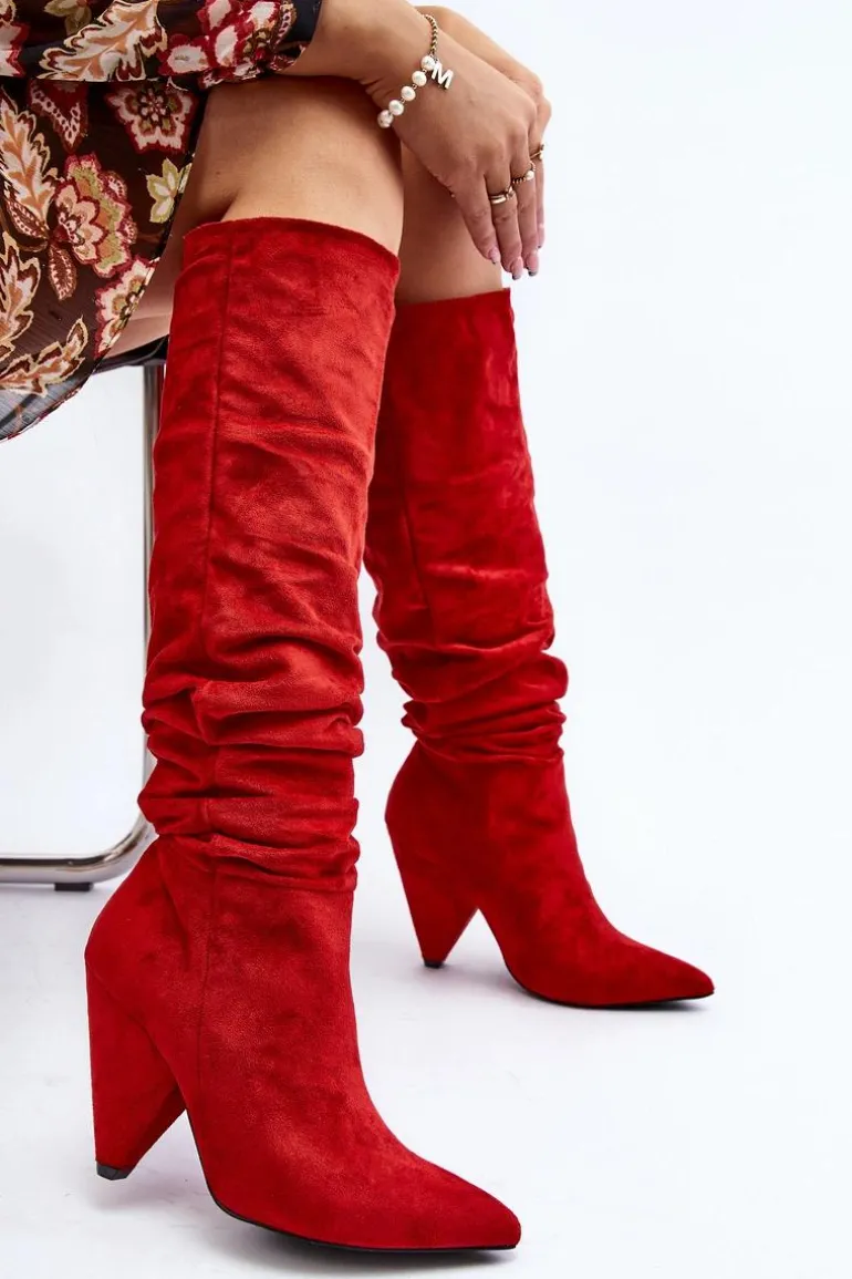 Piękne kozaki na obcasie. Cholewka z marszczeniem wykonana jest z miękkiego eko zamszu. Koniecznie sprawdź całą naszą kolekcję damskich kozaków! Przy wyborze rozmiaru prosimy sugerować się tabelą rozmiarów.