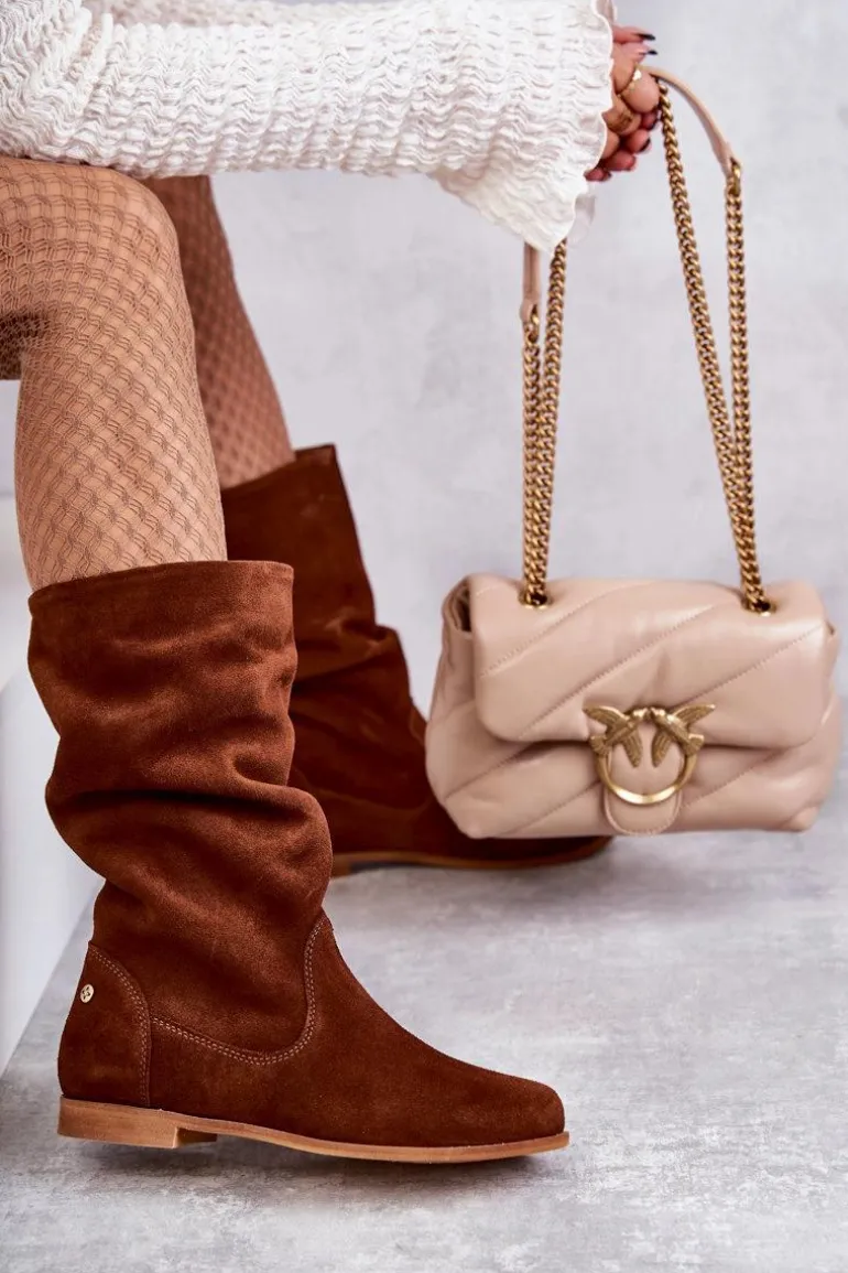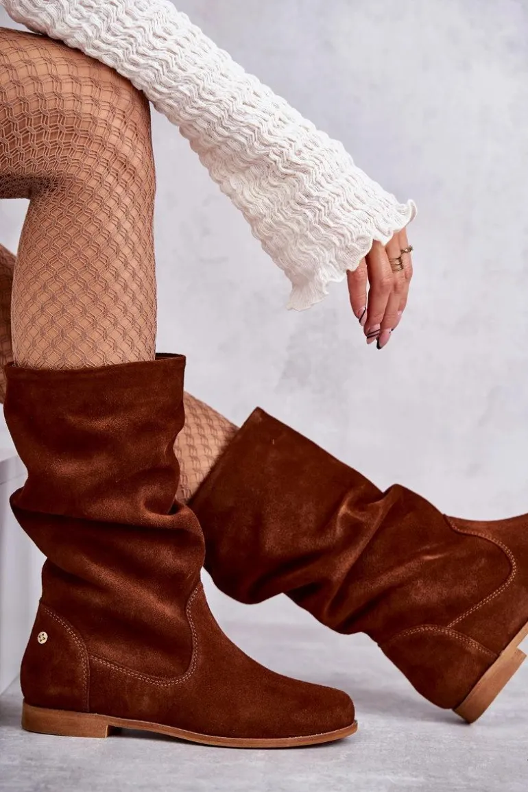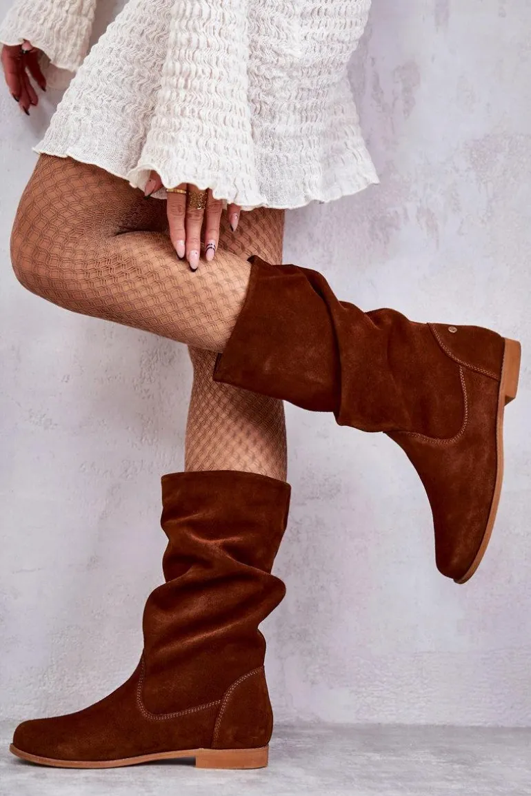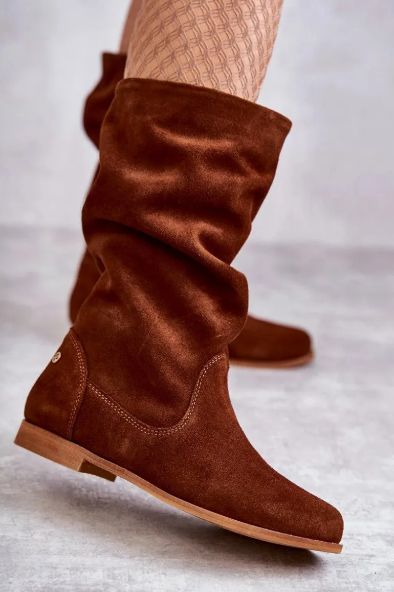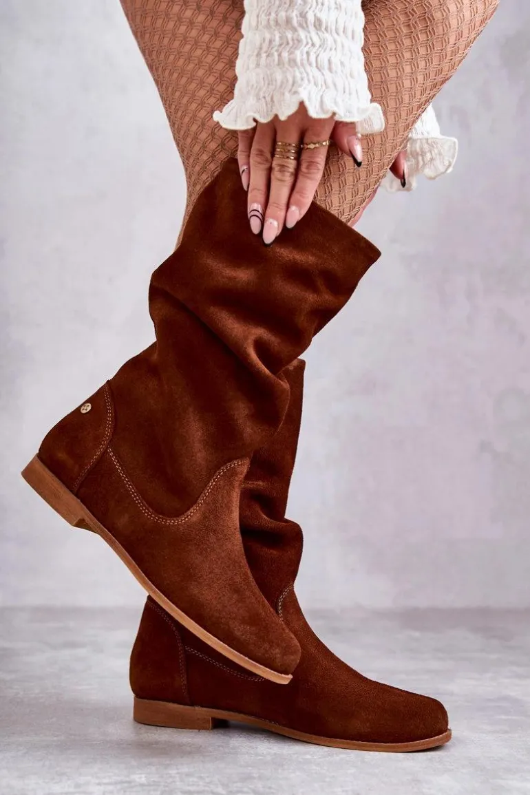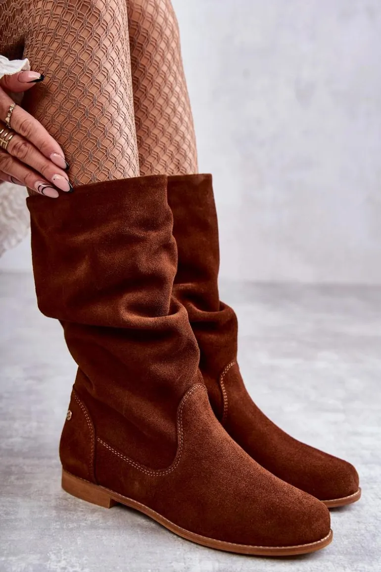 Damskie Zamszowe Kozaki Maciejka 05057-29 Rude
