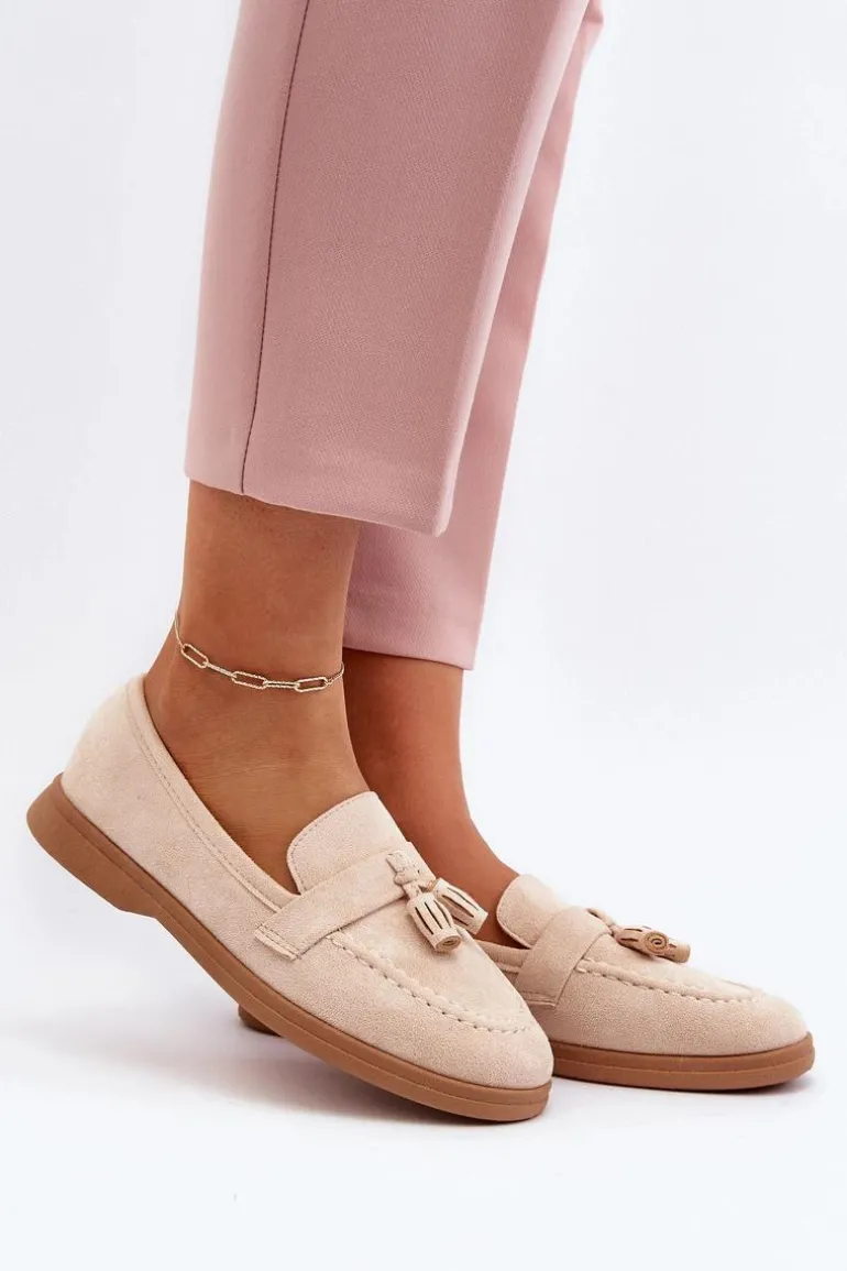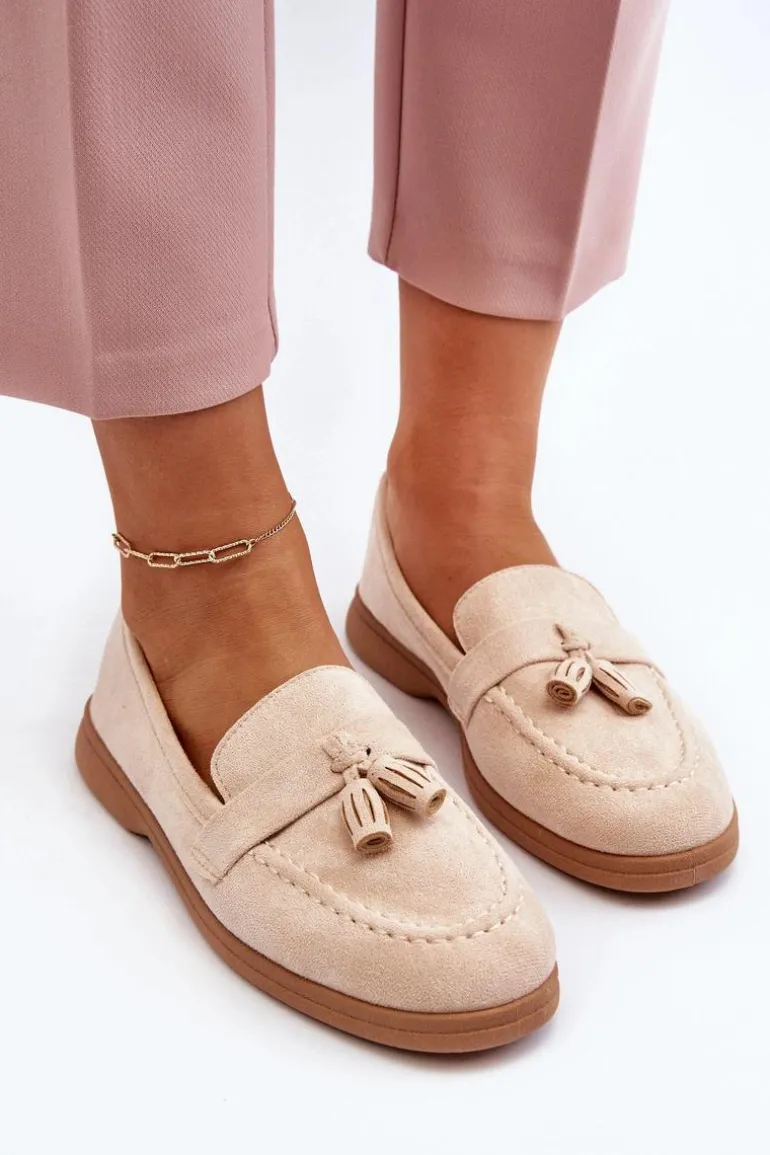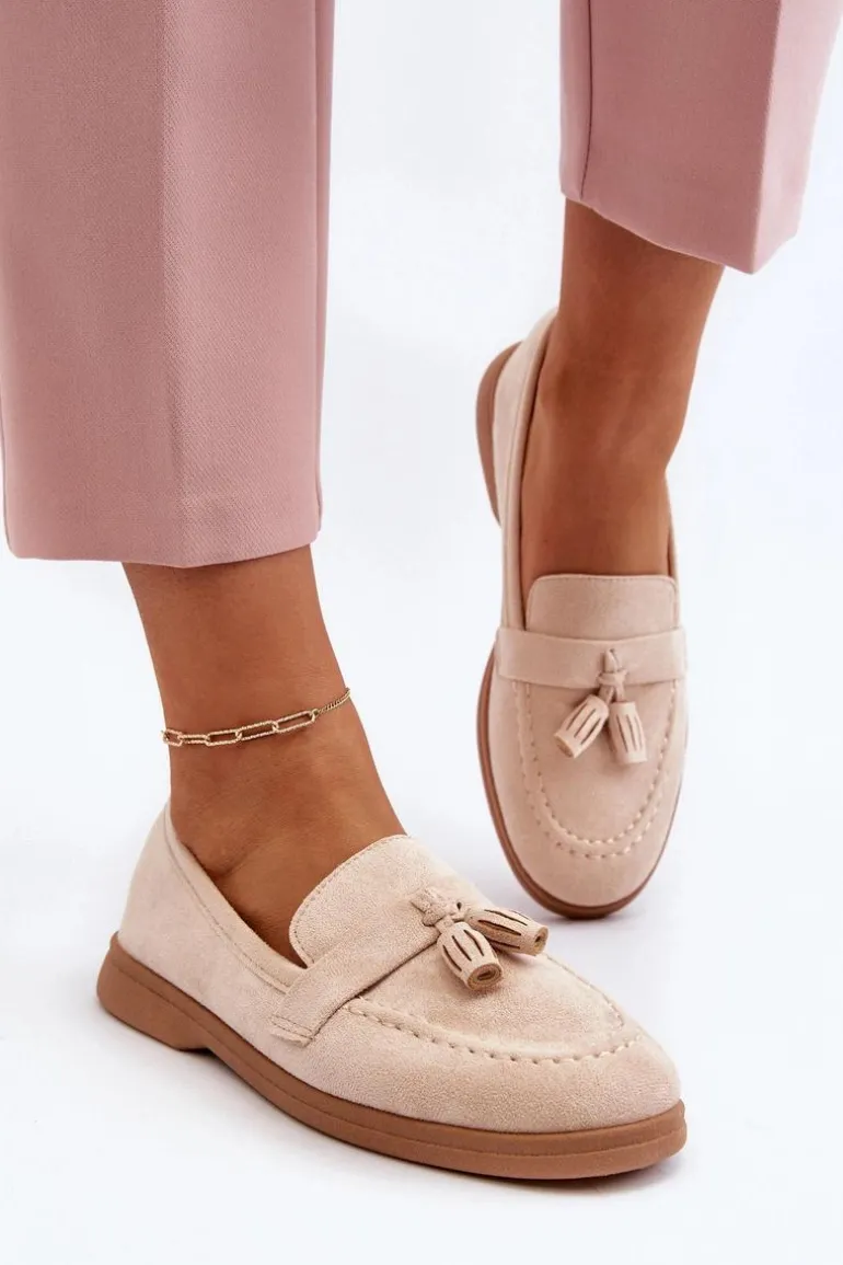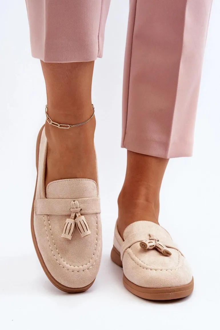 Mokasyny to absolutny hit tego sezonu! Wykonane z eko zamszu, prezentują się nie tylko stylowo, ale także są przyjemne w noszeniu. Zaokrąglony nosek dodaje im uroku, a miękka wkładka z eko skóry zapewnia niezrównany komfort, nawet podczas długiego noszenia. Osadzone na płaskim obcasie, będą doskonałym uzupełnieniem wielu różnorodnych stylizacji! Przy wyborze rozmiaru prosimy sugerować się tabelą rozmiarów.