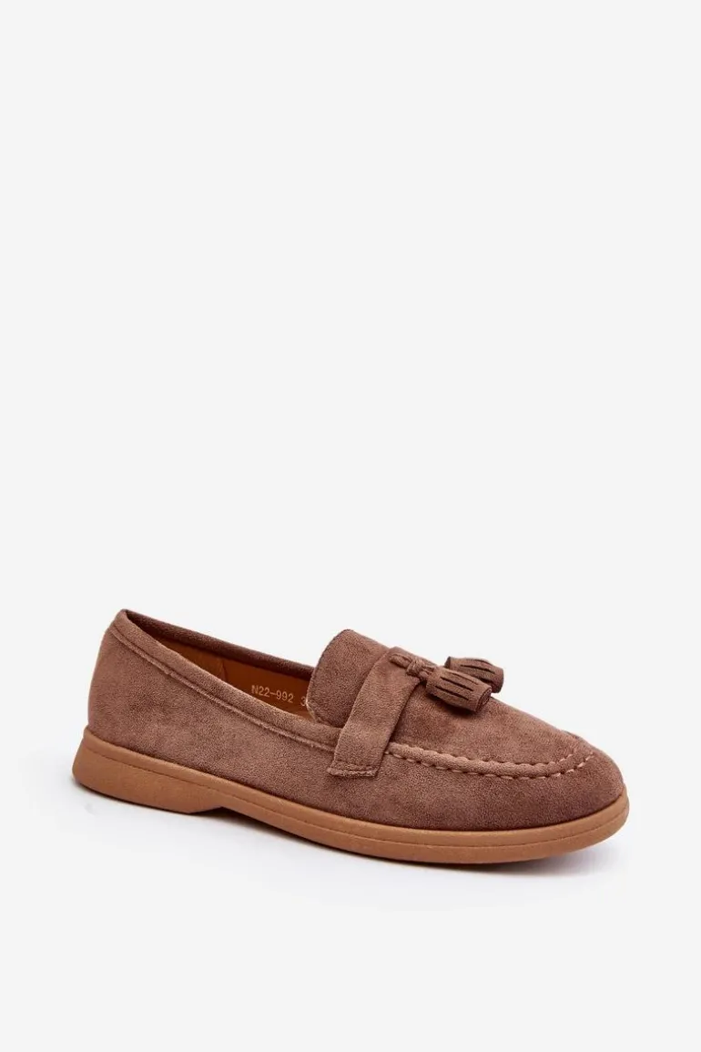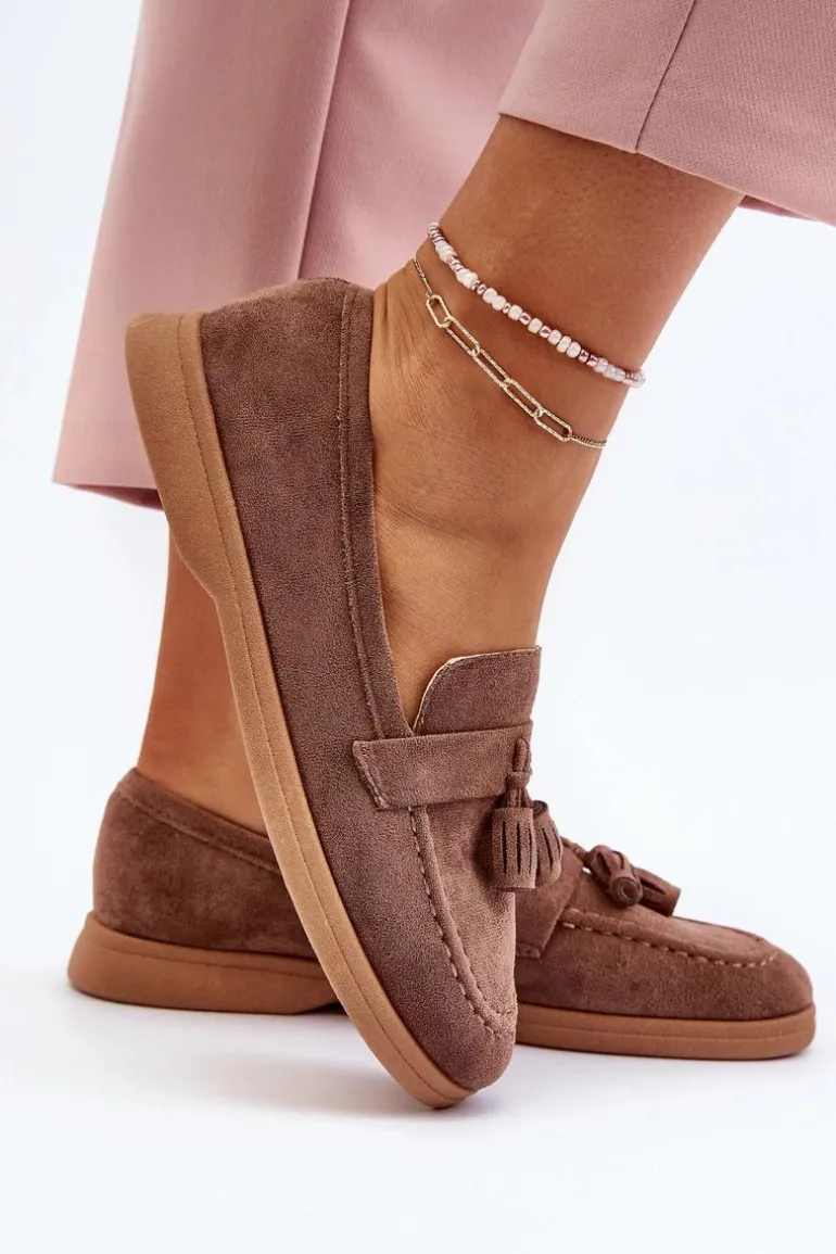 Mokasyny to absolutny hit tego sezonu! Wykonane z eko zamszu, prezentują się nie tylko stylowo, ale także są przyjemne w noszeniu. Zaokrąglony nosek dodaje im uroku, a miękka wkładka z eko skóry zapewnia niezrównany komfort, nawet podczas długiego noszenia. Osadzone na płaskim obcasie, będą doskonałym uzupełnieniem wielu różnorodnych stylizacji! Przy wyborze rozmiaru prosimy sugerować się tabelą rozmiarów.