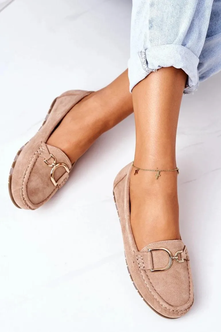 Klasyczne mokasyny damskie wykonane z miękkiego eko zamszu. Buty są niesamowicie wygodne dzięki miękkiej skórzanej wkładce oraz gumowej, antypoślizgowej podeszwie. Ponadczasowy model dopełni wiele Twoich stylizacji! Przy wyborze rozmiaru prosimy sugerować się tabelą rozmiarów.