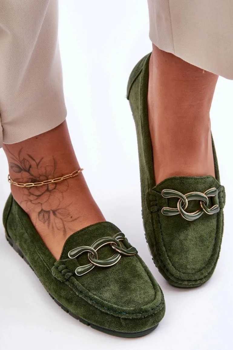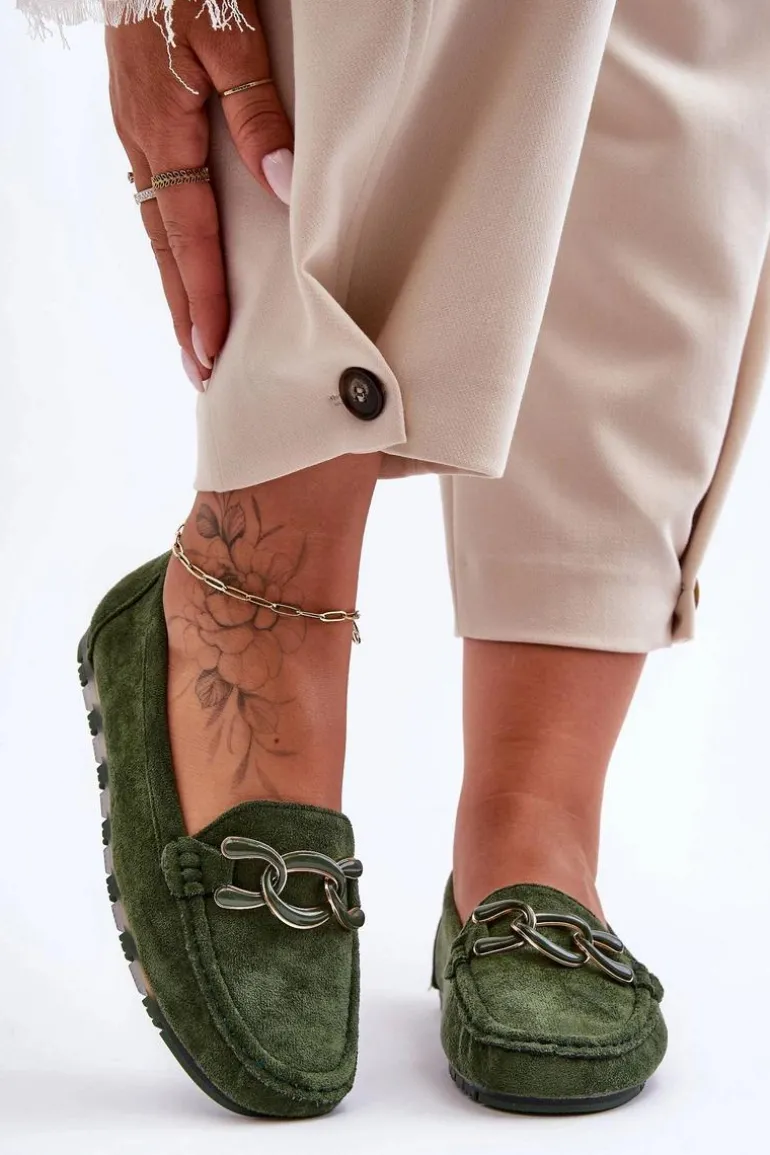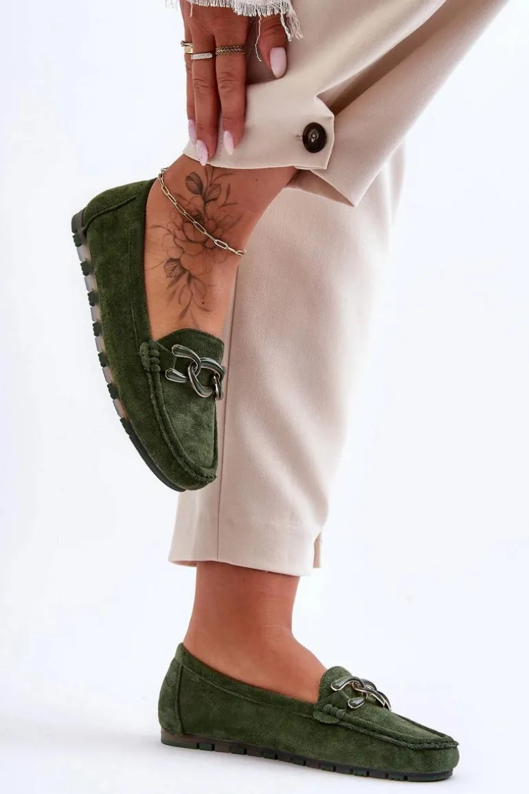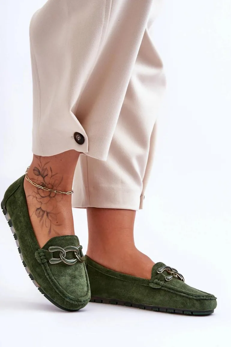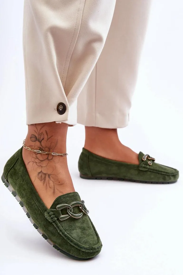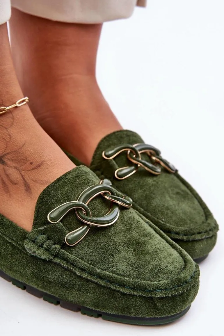 Damskie Zamszowe Mokasyny Na Płaskiej Podeszwie Zielone Appia