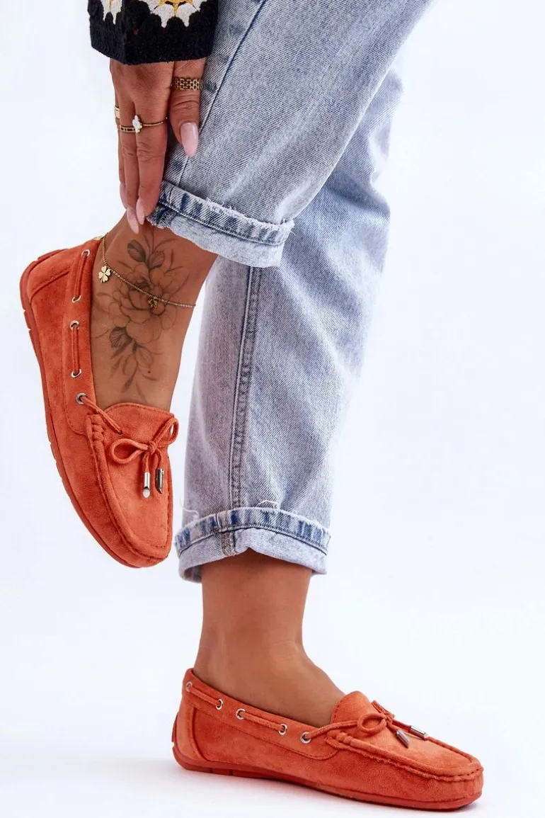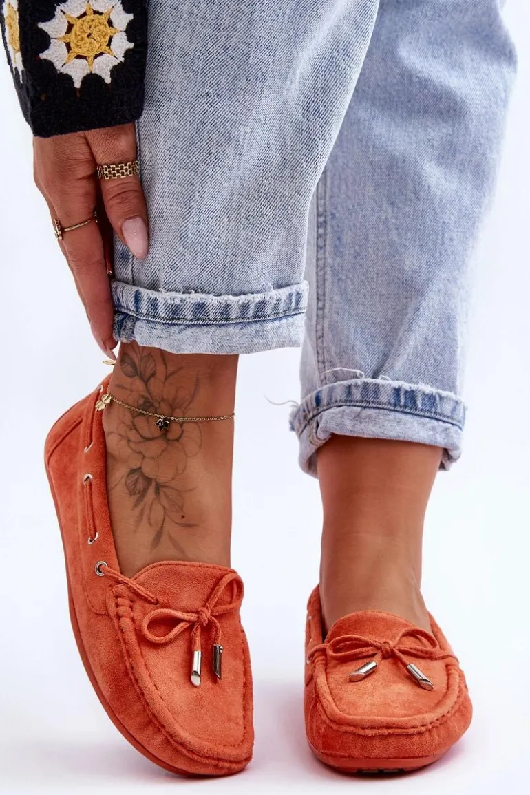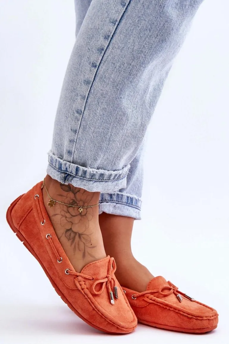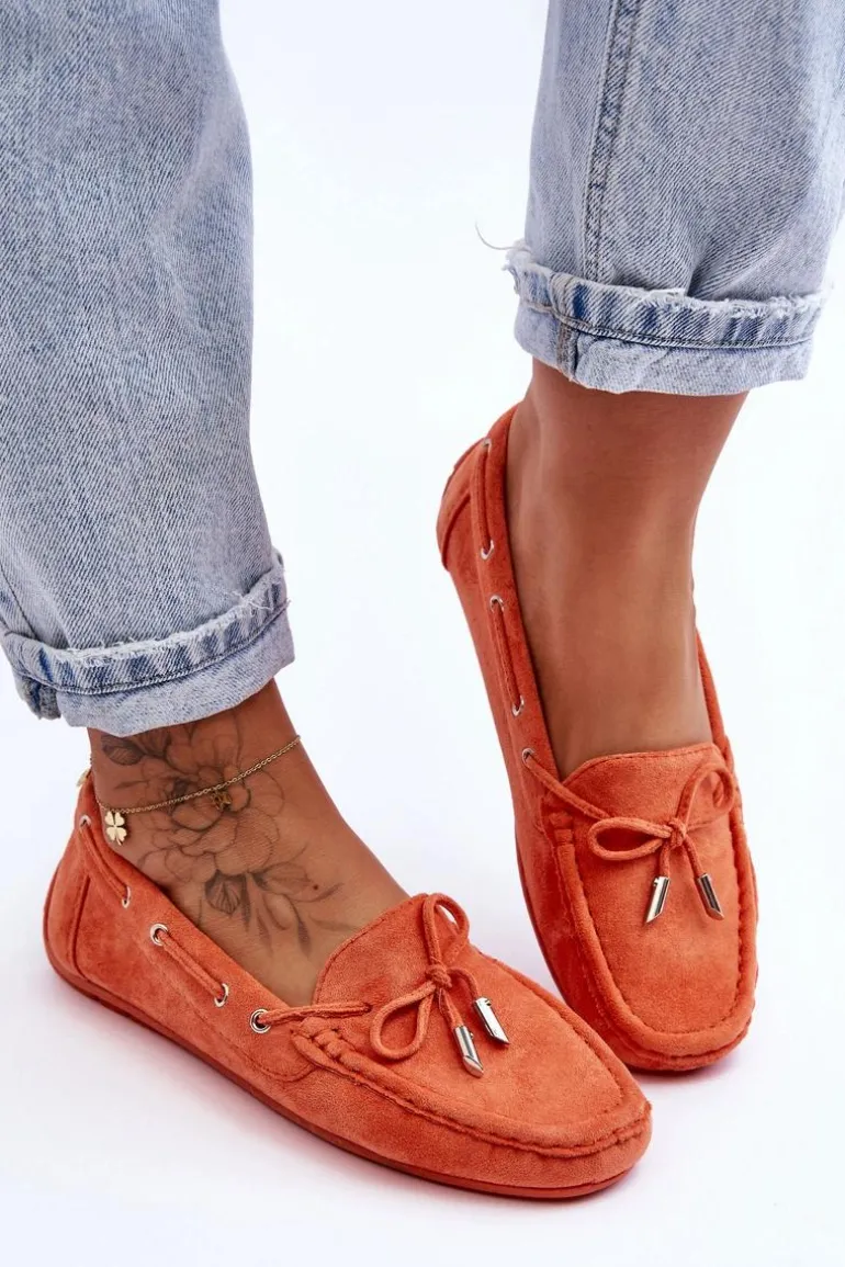 Damskie, klasyczne mokasyny zostały wykonane z eko zamszu. Model ten posiada na przodzie ozdobną kokardkę oraz przeplatające się przez boki cholewki sznureczki. Mokasyny osadzono na antypoślizgowej podeszwie. Miękka wkładka z eko skóry zapewni komfort podczas użytkowania obuwia. Dodatkowo jest delikatnie perforowana. Koniecznie powinnaś je mieć w swojej kolekcji obuwia! Przy wyborze rozmiaru prosimy sugerować się tabelą rozmiarów.