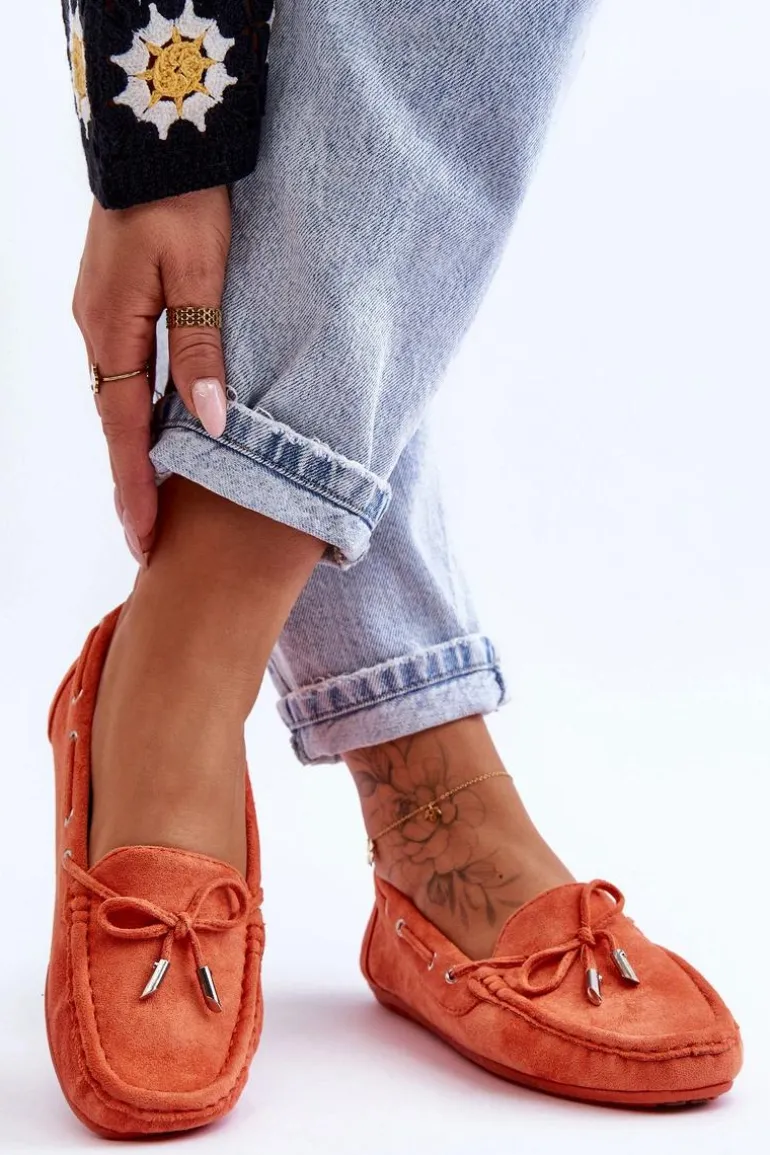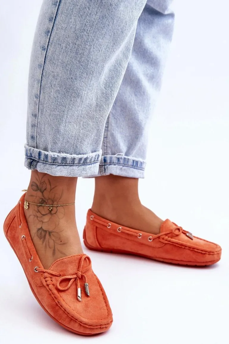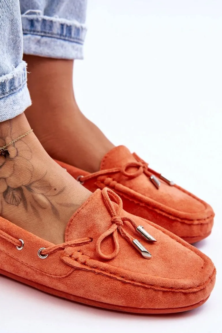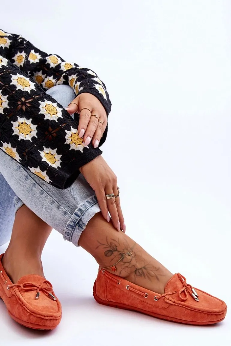 Damskie, klasyczne mokasyny zostały wykonane z eko zamszu. Model ten posiada na przodzie ozdobną kokardkę oraz przeplatające się przez boki cholewki sznureczki. Mokasyny osadzono na antypoślizgowej podeszwie. Miękka wkładka z eko skóry zapewni komfort podczas użytkowania obuwia. Dodatkowo jest delikatnie perforowana. Koniecznie powinnaś je mieć w swojej kolekcji obuwia! Przy wyborze rozmiaru prosimy sugerować się tabelą rozmiarów.