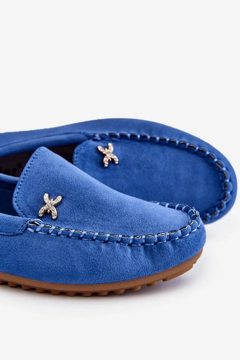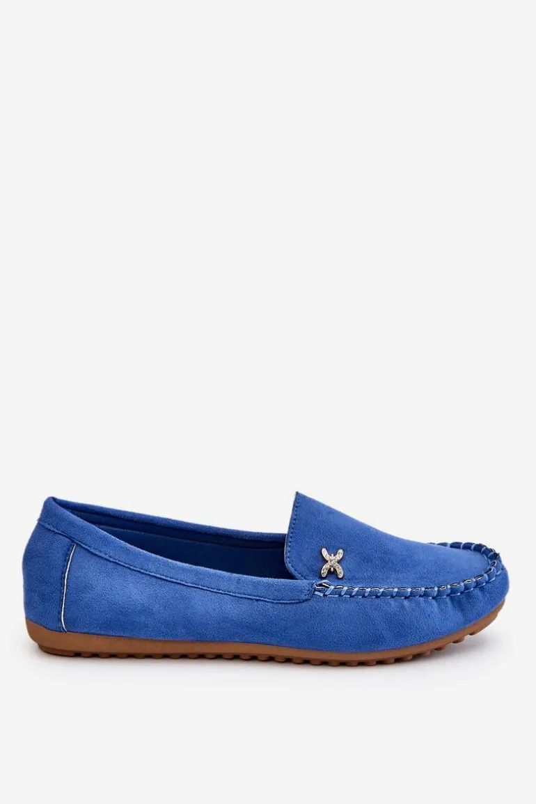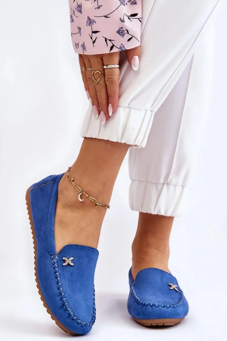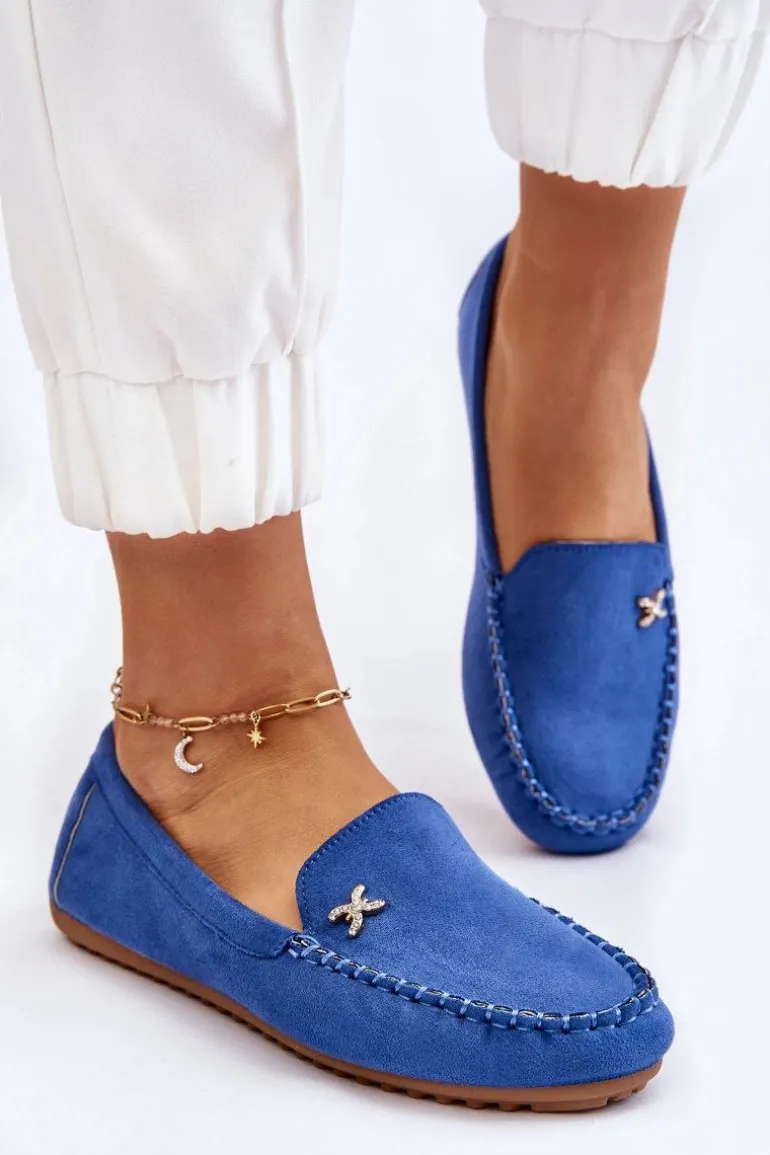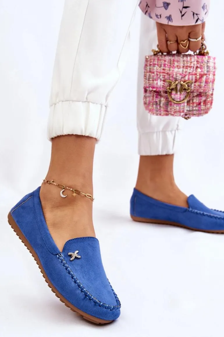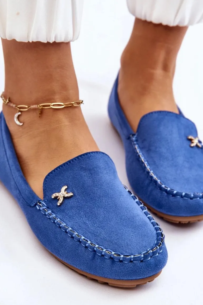 Damskie Zamszowe Mokasyny Z Ozdobą Niebieskie Leah