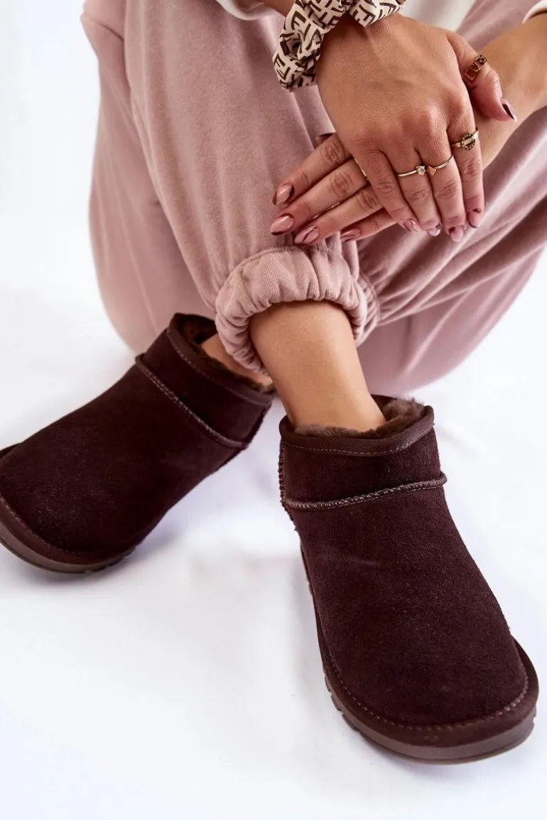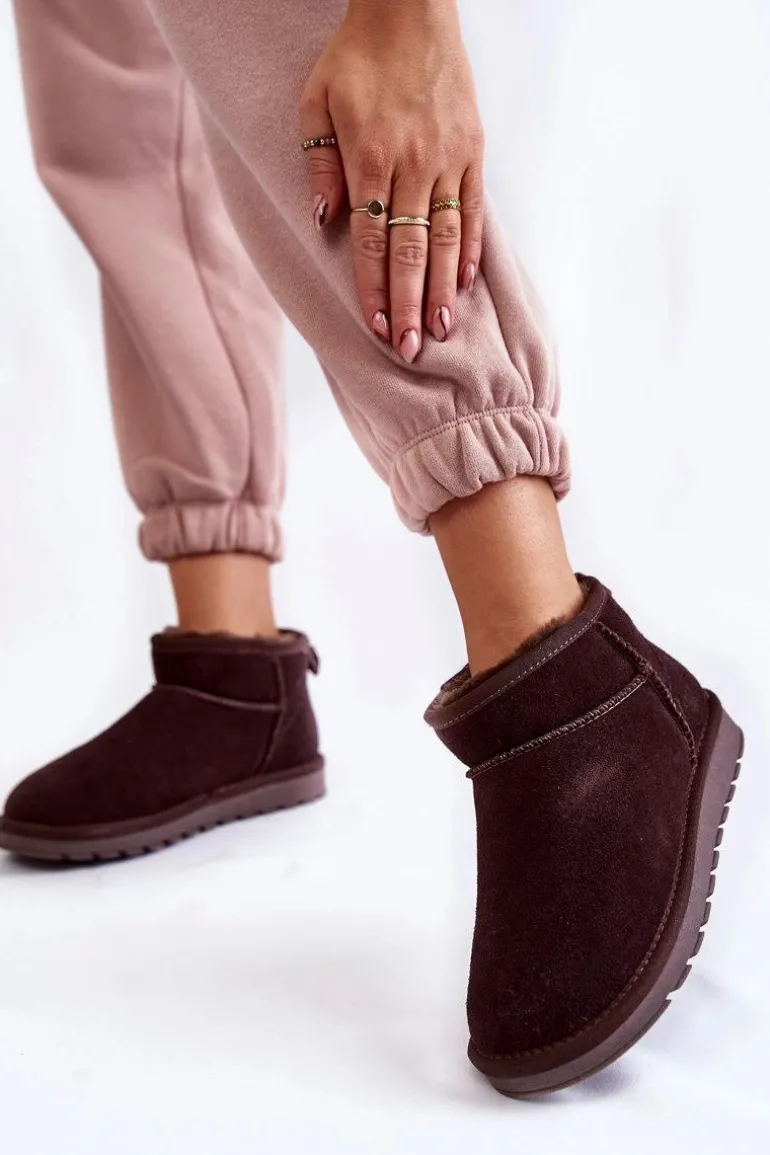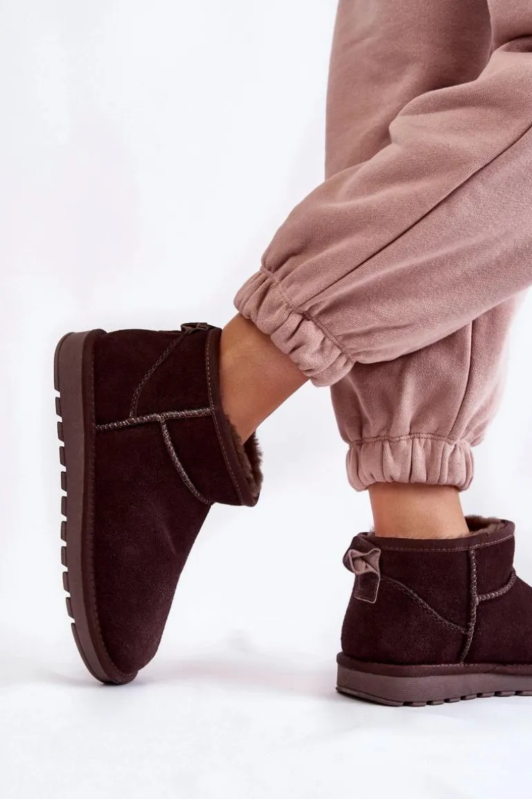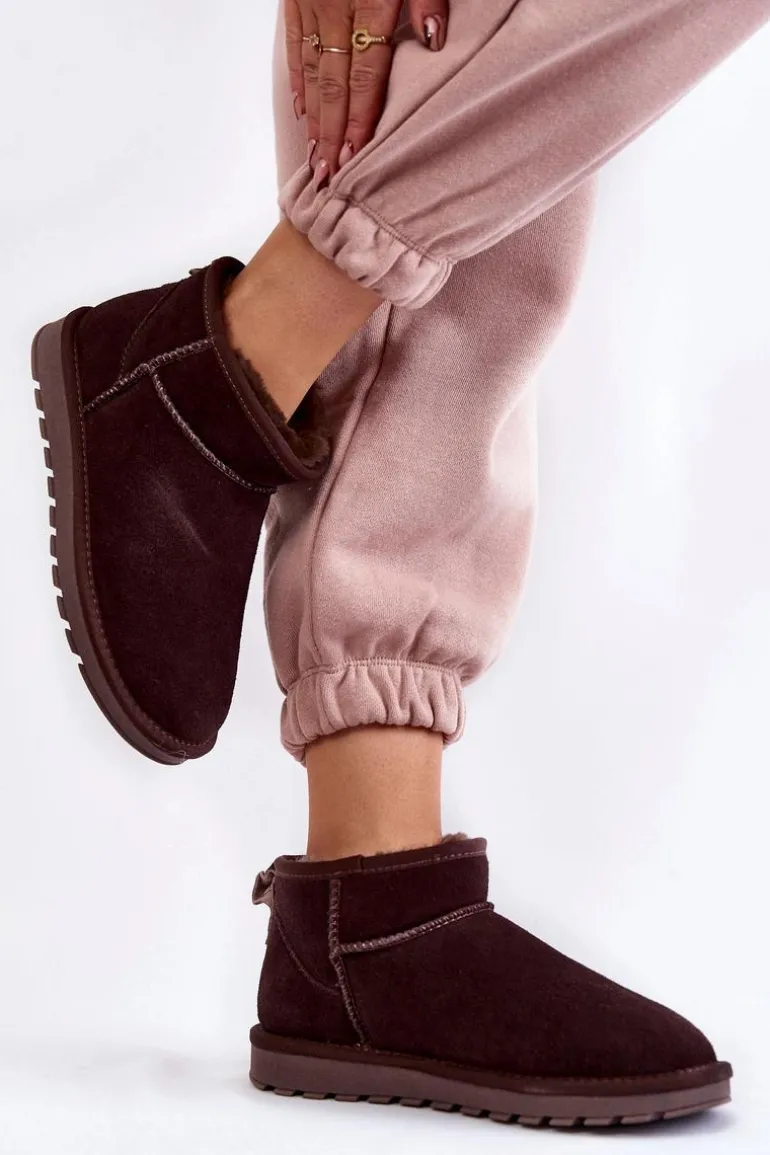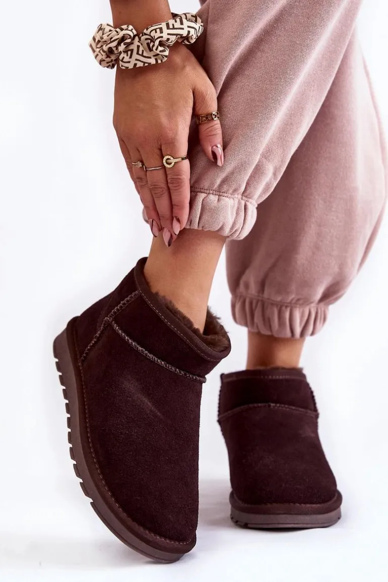 Klasyczne śniegowce idealnie sprawdzą się podczas chłodnych dni. Wykonane z wysokiej jakości naturalnych skór. Wnętrze butów zostało ocieplone grubym futerkiem ekologicznym. Ten klasyczny model dopasujesz do wielu stylizacji. Botki posiadają gumową platformę, która świetnie odizoluje od podłoża i jest dodatkowo antypoślizgowa. Powinnaś mieć ten model w swojej szafie! Przy wyborze rozmiaru prosimy sugerować się tabelą rozmiarów.