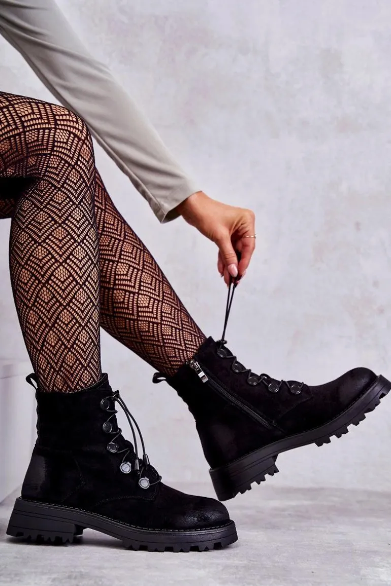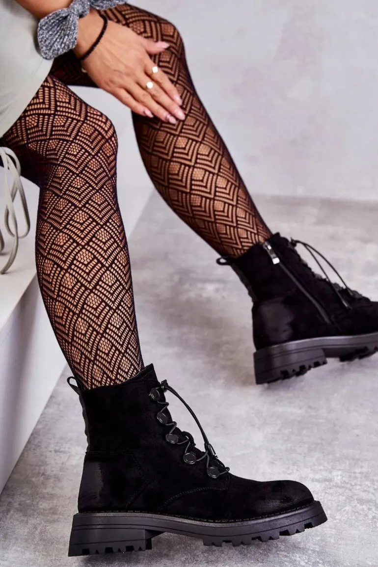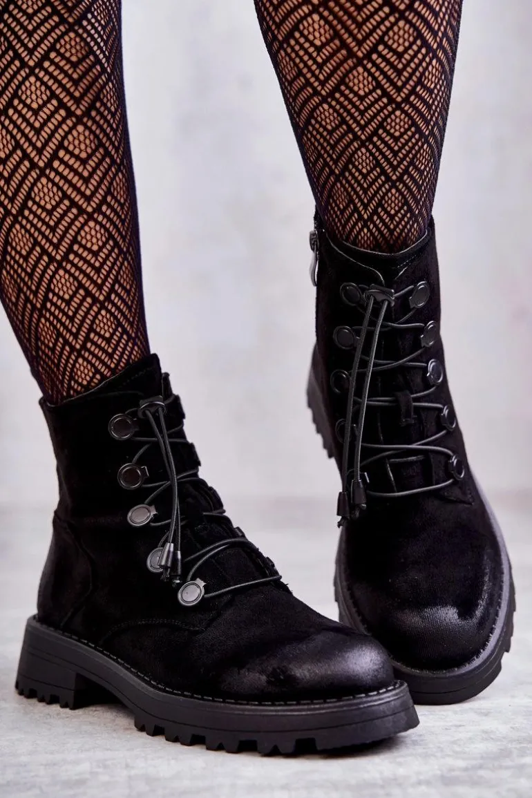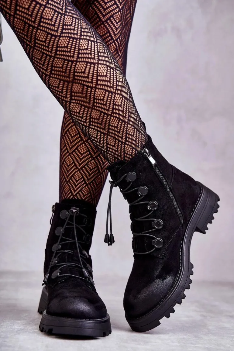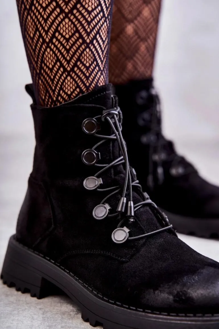 Damskie Zamszowe Ocieplane Botki Ze Ściągaczem Czarne Helia