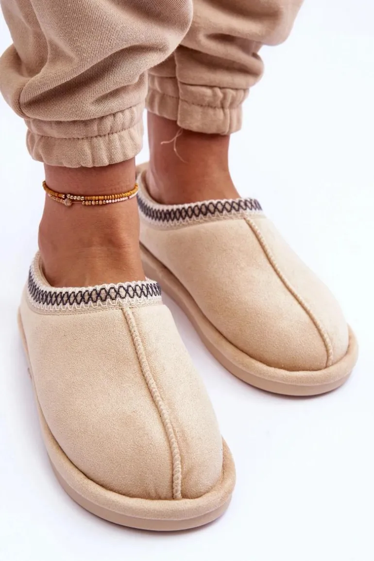 Damskie Zamszowe Papcie Z Futerkiem Jasnobeżowe Polinna